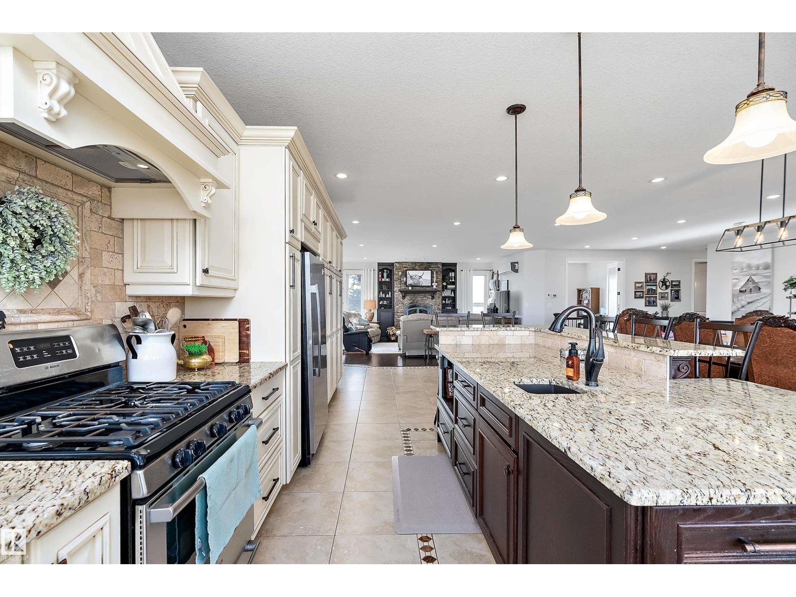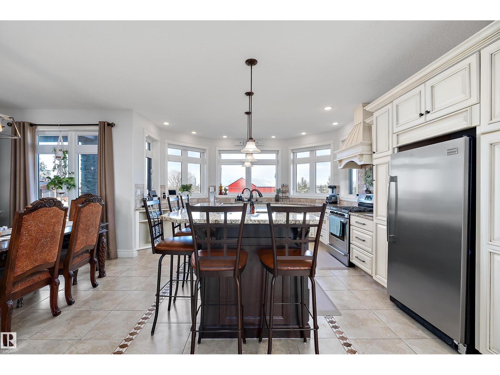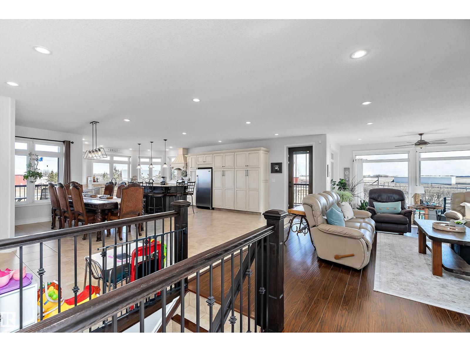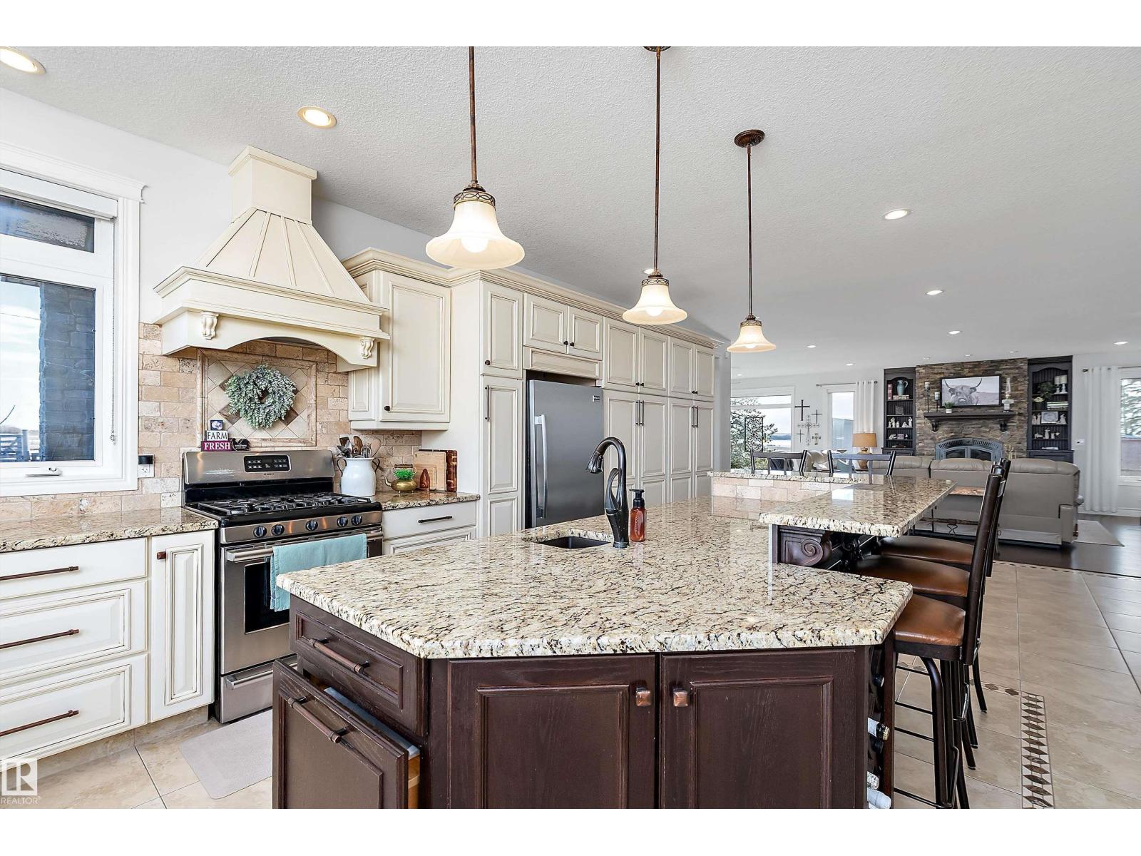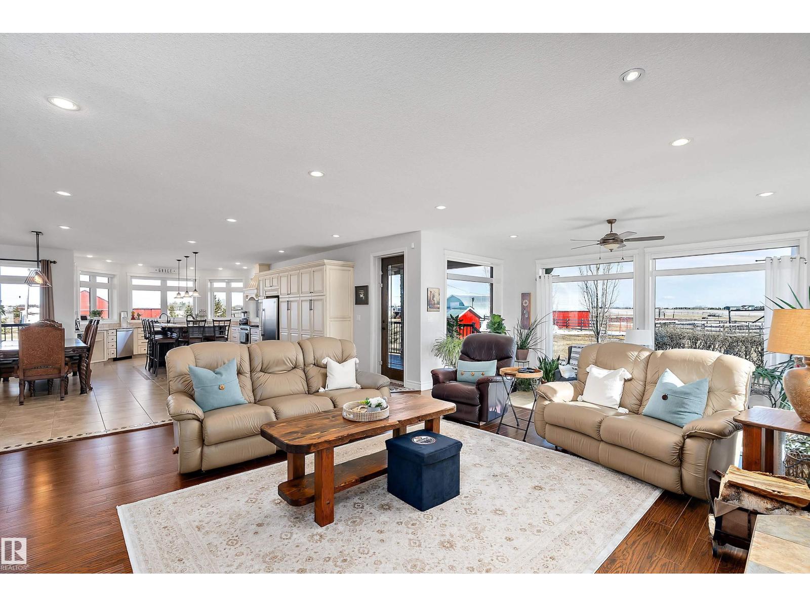 15 minute drive north of St Albert and fronting on Highway 37 you will discover this Executive Style Acreage / Hobby Farm living at its best. 2240 Sq Ft Bungalow custom built in 2011 open concept 4 bedrooms 3.5 bathrooms with a fully finished basement with in-floor heating. A 26ft by 38ft attached garage with in-floor heating. View this 14.21 acres of beautiful professionally landscaped yard with enclosed gazebo and very large wood burning fire pit. Formal farm site with 40ft by 46 ft heated shop, 26ft by 80 ft Barn and 24ft by 44ft storage building. All out buildings have metal roofs plus home is energy efficient with 10 inch wall construction. Fully set up for Livestock or also can be utilized for a small business operation with highway access to 37 and only 5 minutes to highway 44. (id:51989)