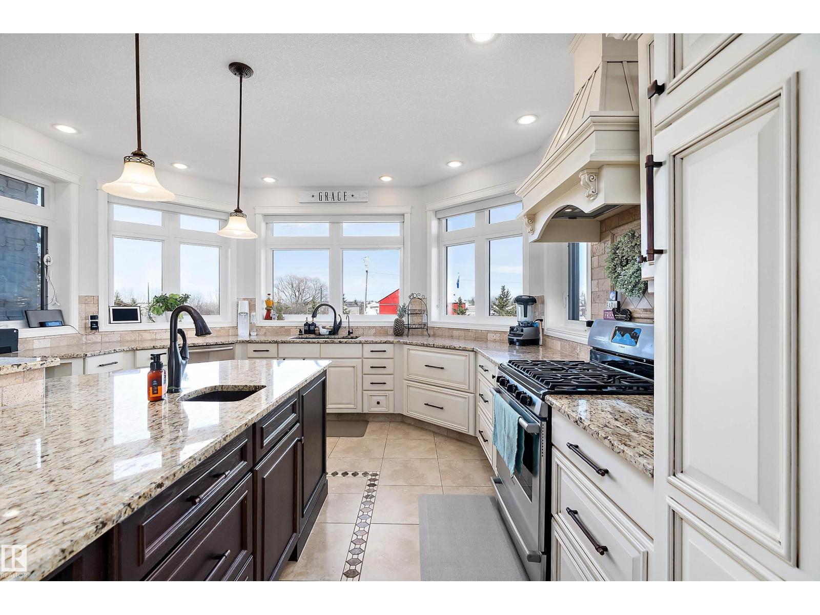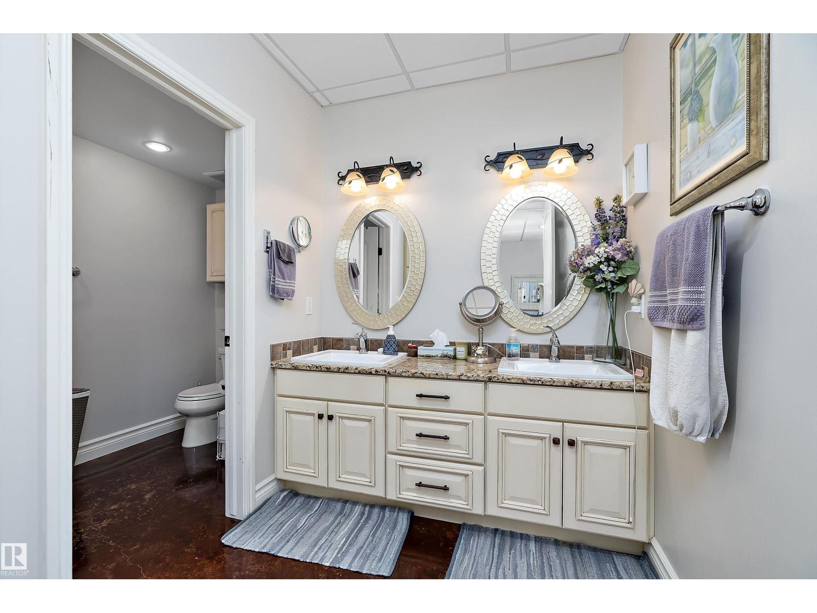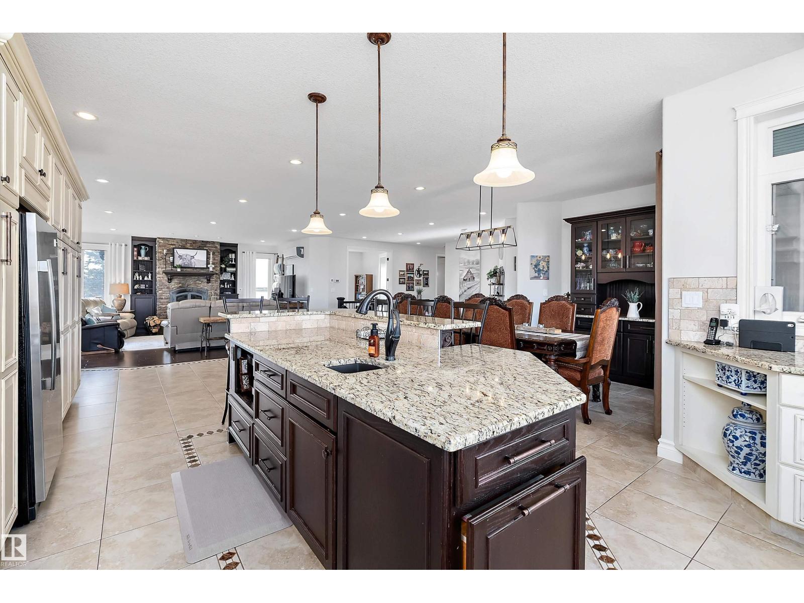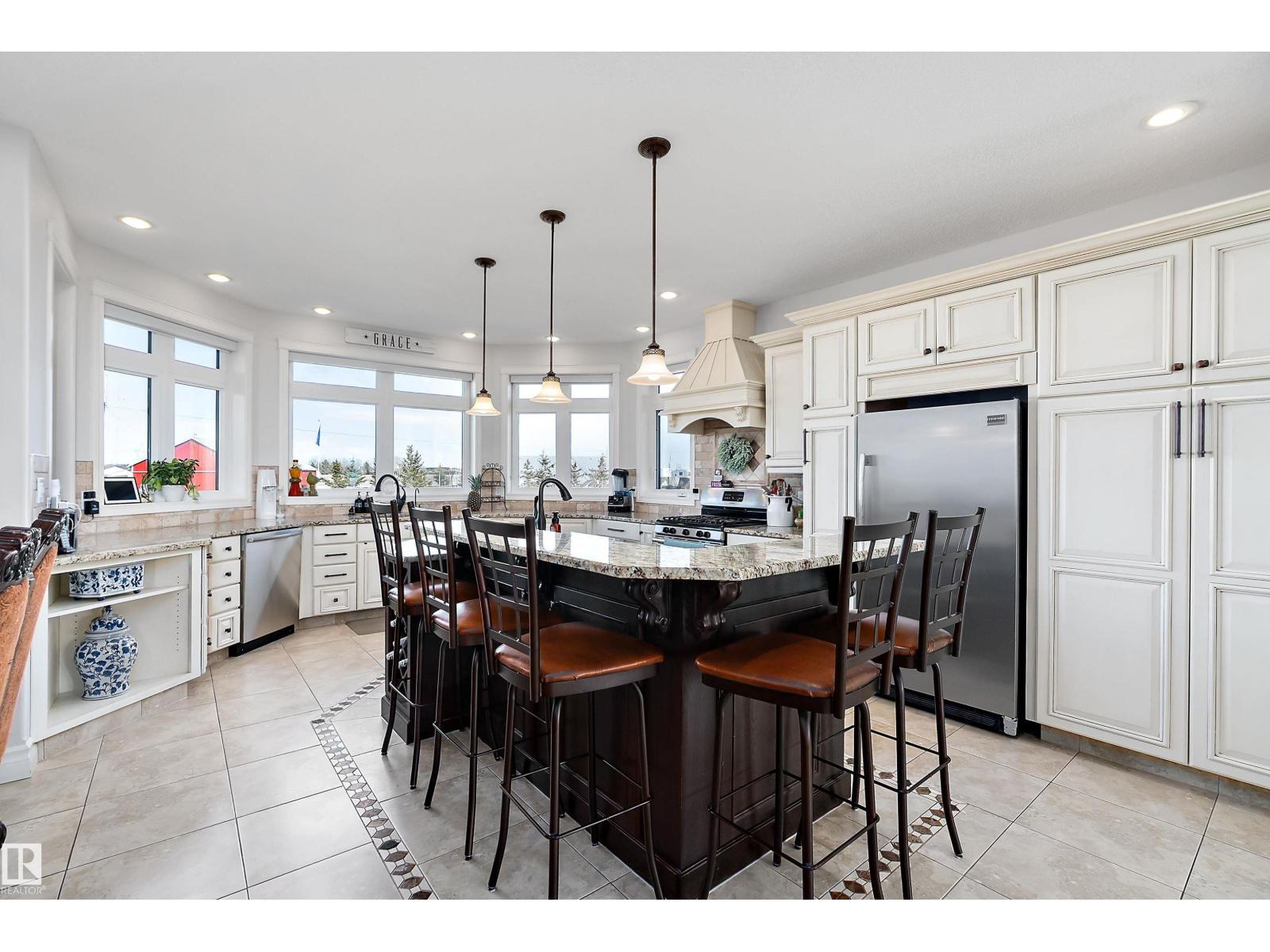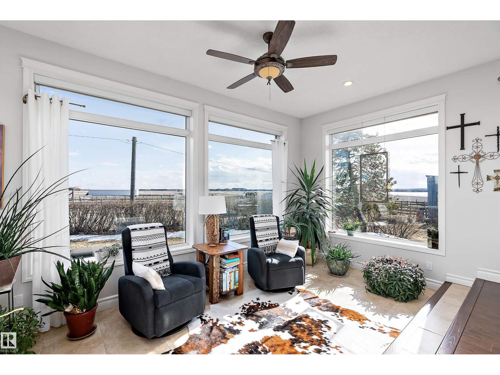 15 minute drive north of St Albert and fronting on Highway 37 you will discover this Executive Style Acreage / Hobby Farm living at its best. 2240 Sq Ft Bungalow custom built in 2011 open concept 4 bedrooms 3.5 bathrooms with a fully finished basement with in-floor heating. A 26ft by 38ft attached garage with in-floor heating. View this 14.21 acres of beautiful professionally landscaped yard with enclosed gazebo and very large wood burning fire pit. Formal farm site with 40ft by 46 ft heated shop, 26ft by 80 ft Barn and 24ft by 44ft storage building. All out buildings have metal roofs plus home is energy efficient with 10 inch wall construction. Fully set up for Livestock or also can be utilized for a small business operation with highway access to 37 and only 5 minutes to highway 44. (id:51989)