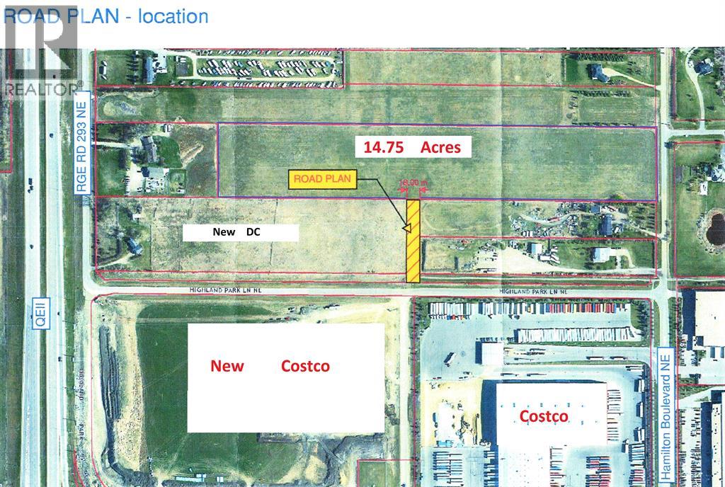 14.75 Acres in City of Airdrie on Pavement and Adjacent to Costco Warehouse. Alberta is Back and Opportunity knocks! This 14.75 acre property is located on paved Hamilton Boulevard in a prime location for future development. Ideally this property would be of interest to someone wanting to build a home for large or extended family, with possibility for home based business (by permit), and hold until the City continues development in the area. A recent Industrial Business and Direct Control development has been approved on the adjacent property to the south with future road allowance from Highland Park Lane directly to the middle of the 14.75 acre Property. This property is on pavement adjacent to Executive Custom Home Acreages and north of Highland Park (home to the Costco Wholesale Distribution Centre, Cam Clark Ford, UFA, TransCanada Turbines), with quick easy access via Hamilton Boulevard to Highway 567, QE II Highway and the North Service Road to flow freely between Calgary, Airdrie and northern Alberta. Only 15 minutes from Calgary International Airport, and 10 minutes from Cross Iron Mills in Balzac. The City of Airdrie offers a diverse young skilled labour force, excellent restaurant and lifestyle amenities. Currently zoned Rural Residential-4 with fenced perimeter, and Phase I Environmental Site Assessment is completed. Dimensions are more or less 330 feet wide X 1,952 feet deep. The local area includes existing executive acreage homes and some commercial development including RV storage, RV repair, Direct Control businesses, and the new Airdrie Regional Park is nearby. Come and check out the possibilities for you. GST applicable. (id:51989)