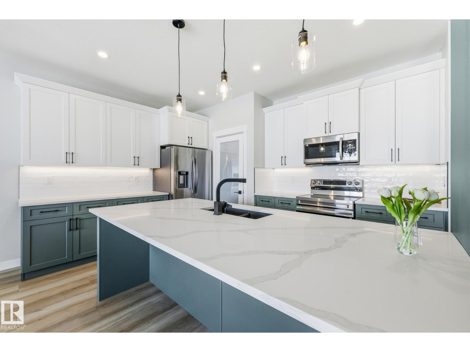 BRAND NEW! High-Quality Craftsman-Style WALKOUT Home by local builder LCM Construction, located in the Hilldowns neighborhood of Spruce Grove! This stunning walkout 2-storey home offers views of the community pond.This home features exceptional curb appeal w/Cypress & Tan vinyl exterior, white window & door trim, tan triple garage doors, & accent stone on the front.The main floor offers a modern floor plan w/9 ft ceilings, luxury vinyl plank flooring, flex/office room, mudroom w/ built-in bench, 20 ft open-to-below living room w/ feature wall & fireplace, & kitchen w/ 4 ft wide quartz island, walkthrough pantry, SS appliances, & modern black fixtures & hardware. Upstairs offers an open bonus room, carpet flooring, laundry room w/ quartz countertop, two large bedrooms, & spacious primary bedroom w/ 5-piece ensuite, modern soaker tub, tiled shower, enclosed toilet, & walk-in closet. Enjoy the oversized covered deck w/ stairs leading down to the backyard. The walkout basement offers additional living space. (id:51989)