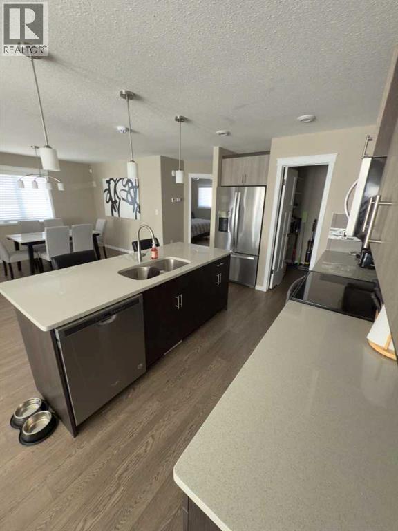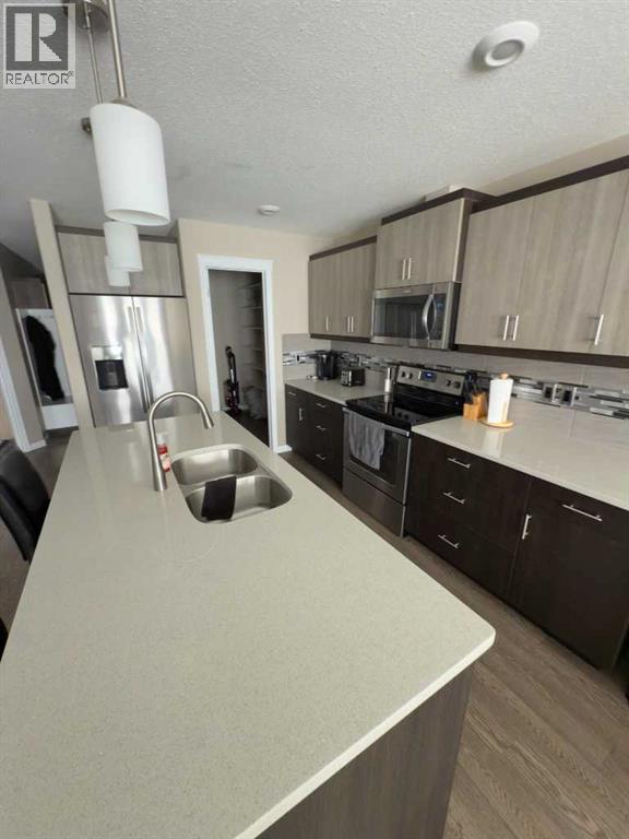 28 Somerset Road SE | Fully Developed Half-DuplexThe Opportunity Experience the perfect blend of style and functional design in this brand-new, fully developed half-duplex with garage. Located in the heart of Southlands, this home offers maintenance-easy living without sacrificing premium finishes.Main Floor Brilliance The open-concept layout is an entertainer's dream, featuring:• Gourmet Kitchen: Modern cabinetry with under-mount lighting, sleek quartz countertops, a central island with an under-mount sink, and high-end stainless steel appliances.• Walk-in Pantry: Equipped with auto-sensor lighting for ultimate convenience.• Primary Suite: A spacious retreat featuring double closets and a private 4-piece bathroom.Fully Finished Basement Enjoy the airy feel of 8.5' ceilings in a lower level that doesn't feel like a basement:• Large family room perfect for movie nights.• Two additional bright bedrooms and a second 4-piece bathroom.• Dedicated laundry room with a built-in sink and extra storage.Exterior & Mechanical Highlights * Garage: 14' x 26' heated attached garage with direct backyard access.• Quiet Living: Built with a Concrete ICF center dividing wall to ensure maximum soundproofing and privacy from your neighbor.• Outdoor Ready: 9.5' x 9.5' rear deck, front sod, and underground sprinklers already included. (id:51989)