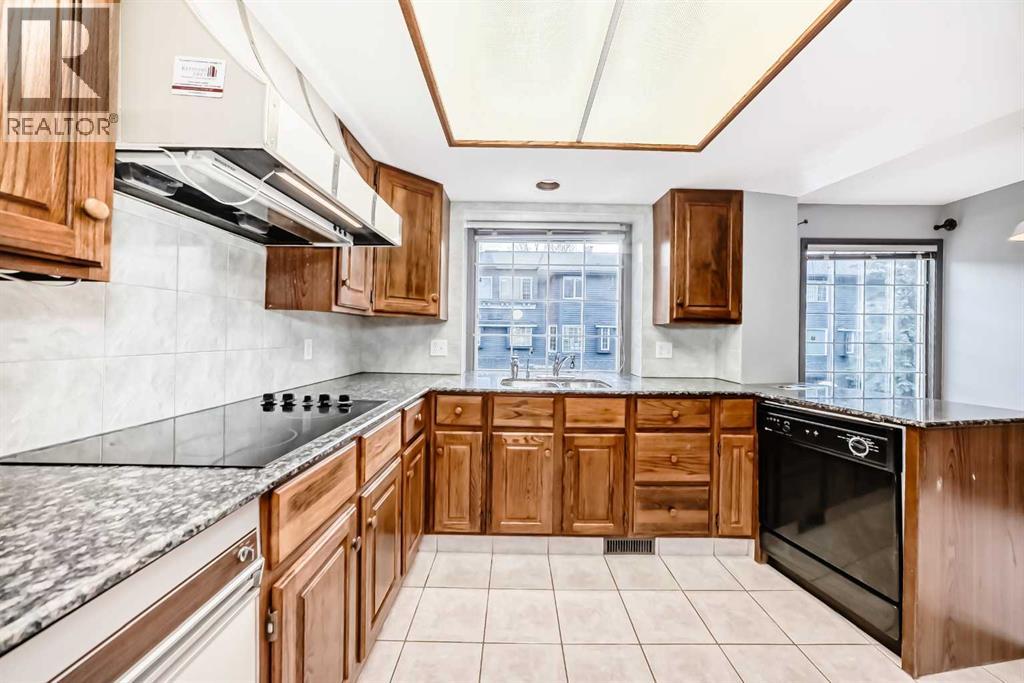 Nestled in the highly sought-after community of Varsity, this well maintained townhome is surrounded with mature trees and back onto a rare pond with tranquil green space views. Boasting a dramatic 10-foot ceiling in the living room, expansive windows, and stylish laminate flooring, the home is bright, airy, and inviting throughout. The spacious living room features a cozy wood-burning fireplace and provides direct access to the backyard with decks and red Adirondack chairs overlooking the pond. A formal dining area with a built-in wet bar enhances the home’s entertaining appeal.The upgraded kitchen is well-appointed with granite countertops, stainless steel appliances, and a sun-filled breakfast nook. Upstairs, a flexible den/bonus space opens to a private balcony, ideal for a home office or reading area. Two generously sized bedrooms complete the upper level, including a primary suite with a walk-in/through closet and a private ensuite.Additional highlights include an attached tandem garage and an unbeatable location just minutes from Market Mall, the University of Calgary, and major hospitals. This exceptional property offers a perfect combination of comfort, style, and convenience. (id:51989)