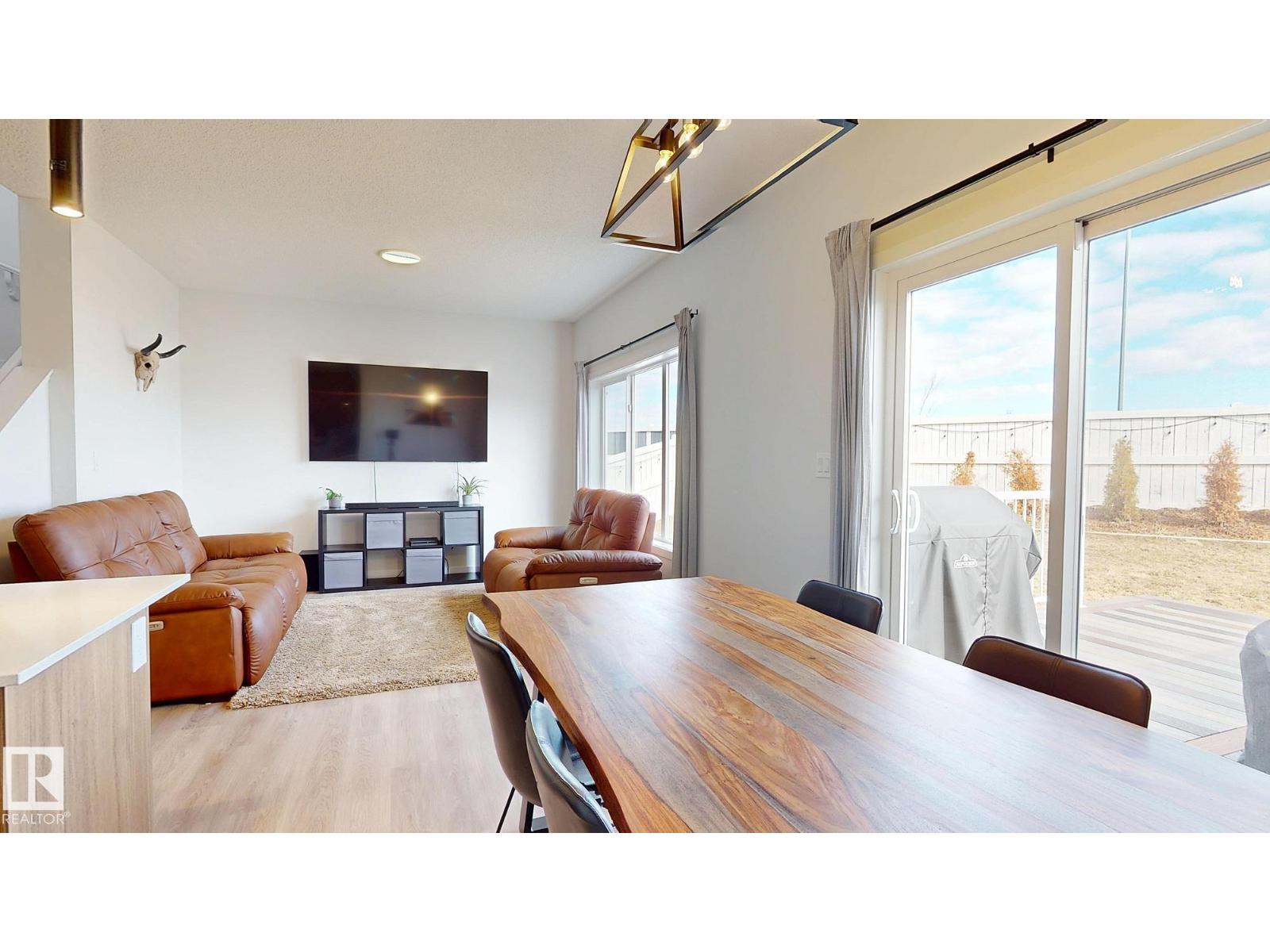 Beautifully upgraded LIKE NEW 1,600sf 2 storey home offering style, comfort, and efficiency. Featuring 3 spacious bedrooms, 2.5 bathrooms, and 9-ft ceilings, this bright modern home is perfect for families or professionals. The chef-inspired kitchen includes an extended island, double-door pantry, white quartz countertops, SS appliances and upgraded black light fixtures. Durable vinyl plank flooring runs throughout the main level. Upstairs offers convenient 2nd-floor laundry, Bonus room, and a spacious primary suite with oversized windows and a large walk-in closet. Stay comfortable year-round with AIR CONDITIONING plus SMART HOME features including a network hub, Alexa-powered Ecobee thermostat, and Wi-Fi video doorbell. Built Green Canada certified with high-efficiency furnace, hot water tank, HEPA filtration, Energy Star appliances, upgraded insulation, low VOC paint, and solar panel rough-in. ENERGY EFFICIENT! Large pie-shaped FENCED & LANDSCAPED yard. EASY access to Henday and Victoria Trail. (id:51989)