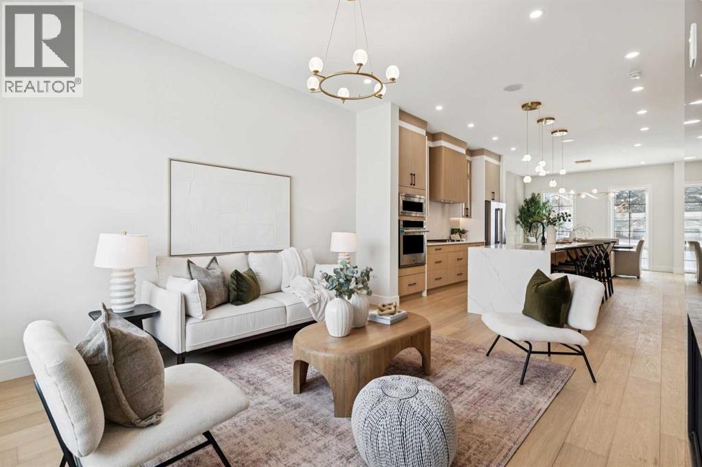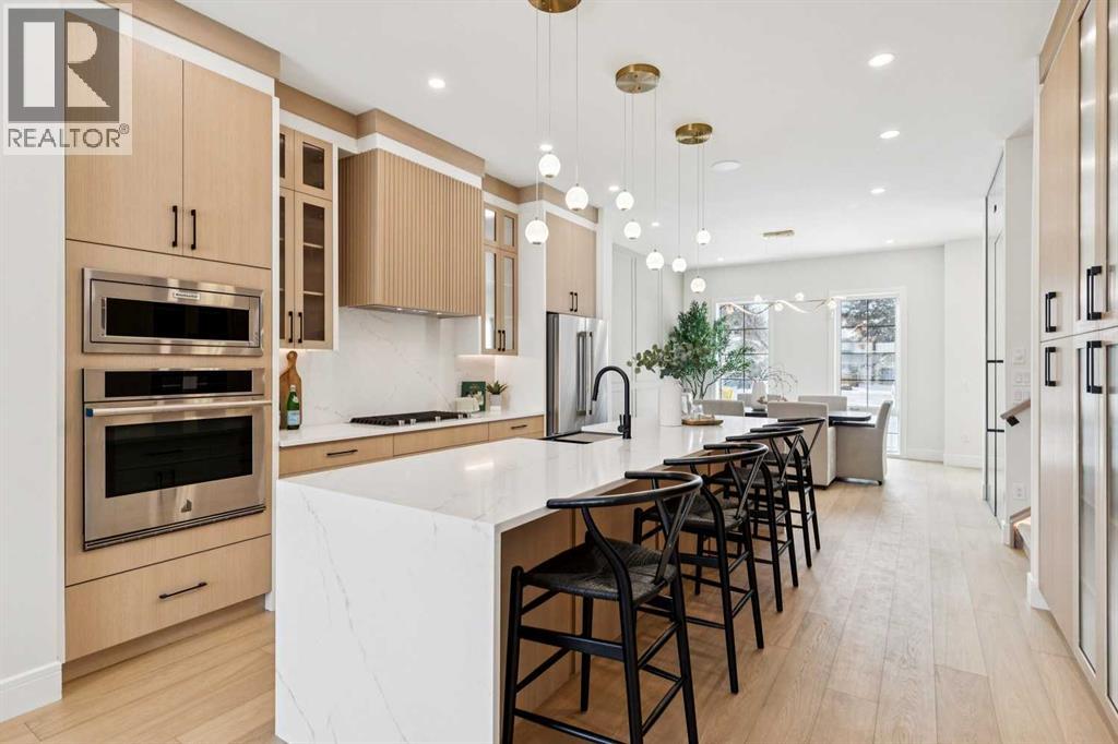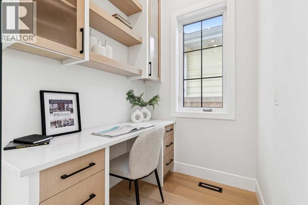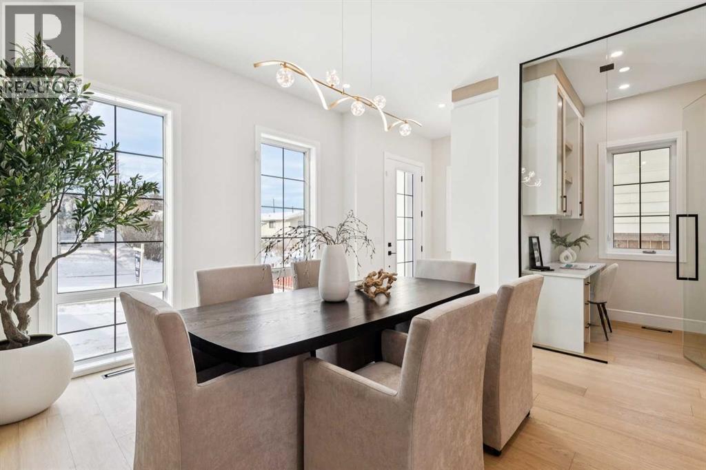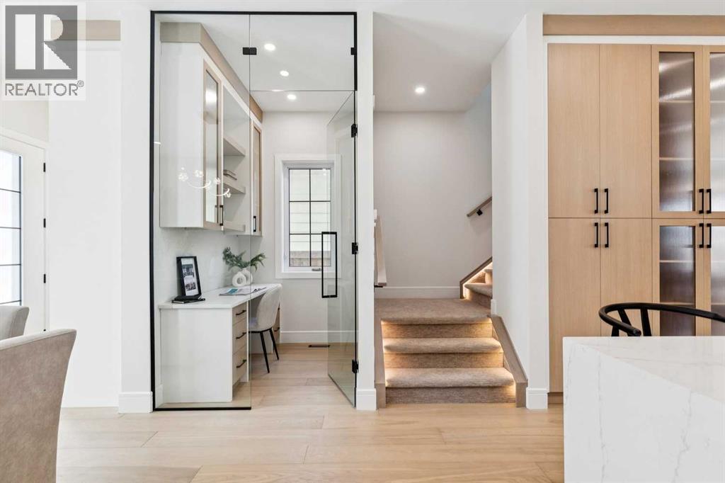 Welcome to this beautifully designed semi-attached home offering over 2,800 sq ft of professionally finished living space, thoughtfully crafted with elevated finishes and functional design throughout. Featuring 5 bedrooms and 3.5 bathrooms, including a fully legal 2-bedroom basement suite with separate entrance, this property offers exceptional flexibility for extended family or income potential. The main level showcases wide plank engineered oak flooring, extensive custom cabinetry, elegant wall paneling, and custom LED accent lighting that creates a refined yet inviting atmosphere. Large west-facing windows flood the home with natural light, enhancing the open and airy layout. The family room, seamlessly connected to the kitchen, is anchored by a stunning tile-covered gas fireplace. A dedicated main floor office with custom built-ins provides an ideal work-from-home space. At the rear entry, you’ll find a spacious mudroom complete with additional custom cabinetry and built-ins for practical organization.Upstairs features three generously sized bedrooms, including a luxurious primary retreat. The spa-inspired ensuite offers heated floors and an oversized steam shower for ultimate comfort. A versatile loft area adds valuable additional living space and perfect as a media room, study area, or lounge. Convenient upper-floor laundry and a full-bathroom completes the level. Built with comfort and efficiency in mind, the home includes triple pane windows for enhanced energy performance and year-round comfort. The basement level contains a fully contained legal 2-bedroom suite with a full bathroom, kitchen and own laundry room. This is a rare opportunity to own a meticulously finished property that blends sophisticated design, functionality, and income potential in one exceptional package.** The property next door, 2812 is also available.** (id:51989)