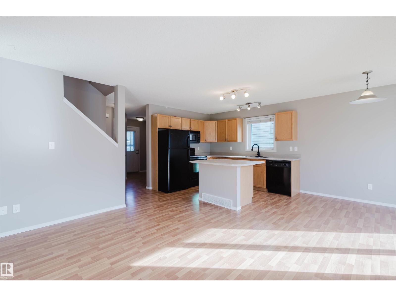 Welcome to this warm and cozy half duplex in Lakeland Ridge! This well-designed 2-storey home features a modern open floor plan with laminate flooring throughout the main floor and a bright south-facing great room filled with natural light. The open kitchen offers plenty of maple cabinetry, a centre island, and a dining nook that leads to a newly built rear deck and a private south-facing backyard—perfect for relaxing or entertaining. Upstairs you’ll find three spacious bedrooms, including a primary suite with its own 3-piece ensuite and dual closets. Recent updates include a newer hot water tank and washer. Conveniently located close to shopping, public transportation, excellent schools, and recreation facilities. Move-in ready—welcome home! (id:51989)