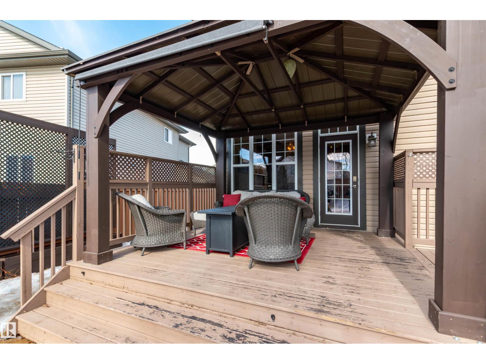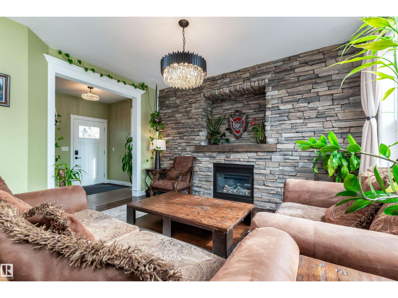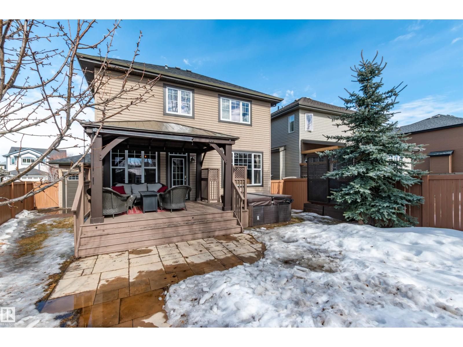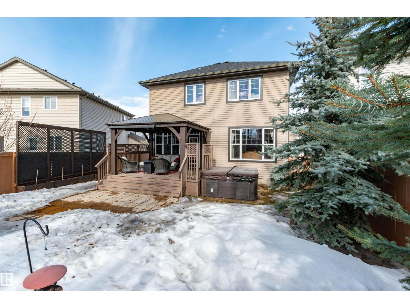 Did you say Oversized Triple Garage?? This immaculately appointed 4 bed, 3 1/2 bath 2 storey beauty, in the family friendly Fort Sask. comm. of Westpark, checks all the boxes. Once you get past the impressive and uber functional triple garage (heated and w/ 2 fl. drains and h/c water bibs), you are presented with a luxurious open concept main floor living, kitch. and eating space. The FULL WALL, floor to ceiling stone fireplace offers a unique living and entertainment area normally reserved for exclusive estate properties. So much natural light!! A well appointed kitchen with gas range, ceiling high cabinets, bar seating, and granite counters, looks directly out to an amazing outdoor gazebo covered deck w/ step in tub. The large primary bed. w/ luxury 4 pce ensuite (sep. tub and shower) sets the romantic mood. Spacious bonus room area for family entertainment. Fully finished basement w/ wet bar, and an additional bedr., full bath, and family room. Close to parks and walking trails!! Raise a family here!! (id:51989)
