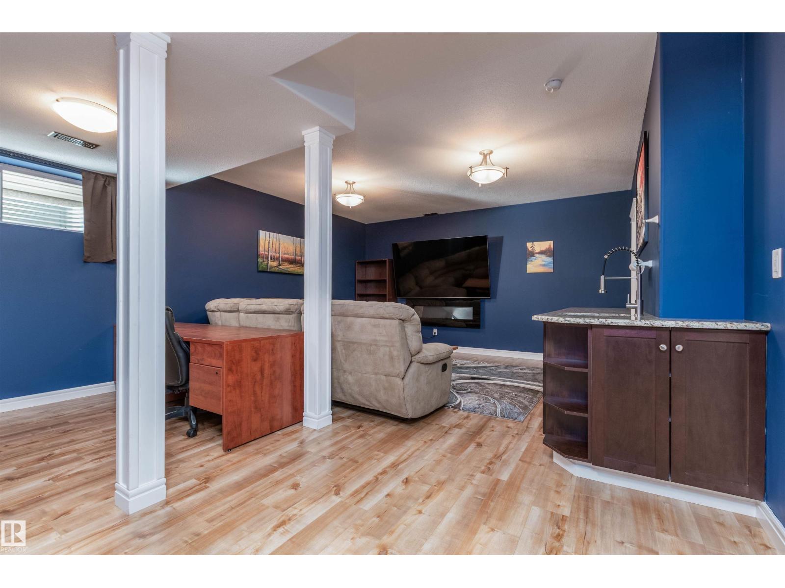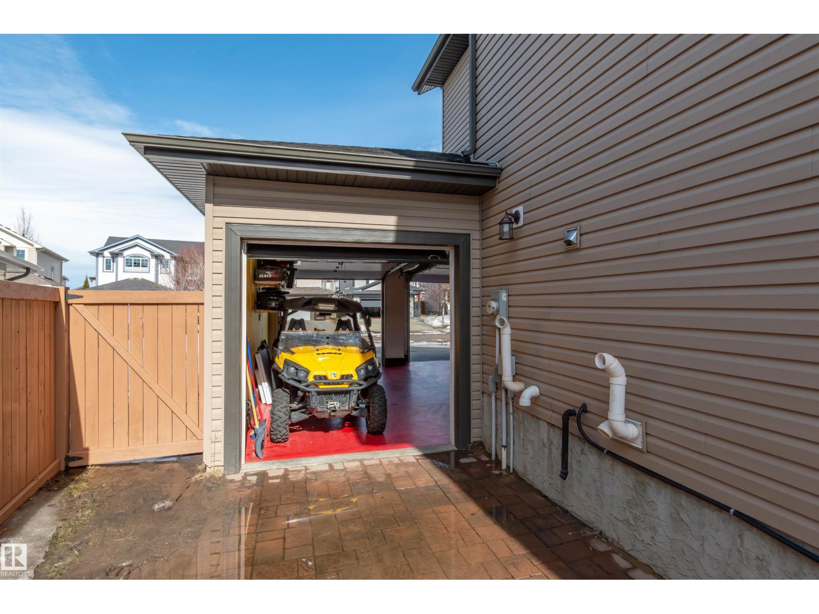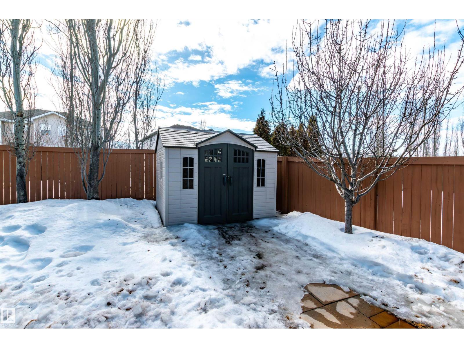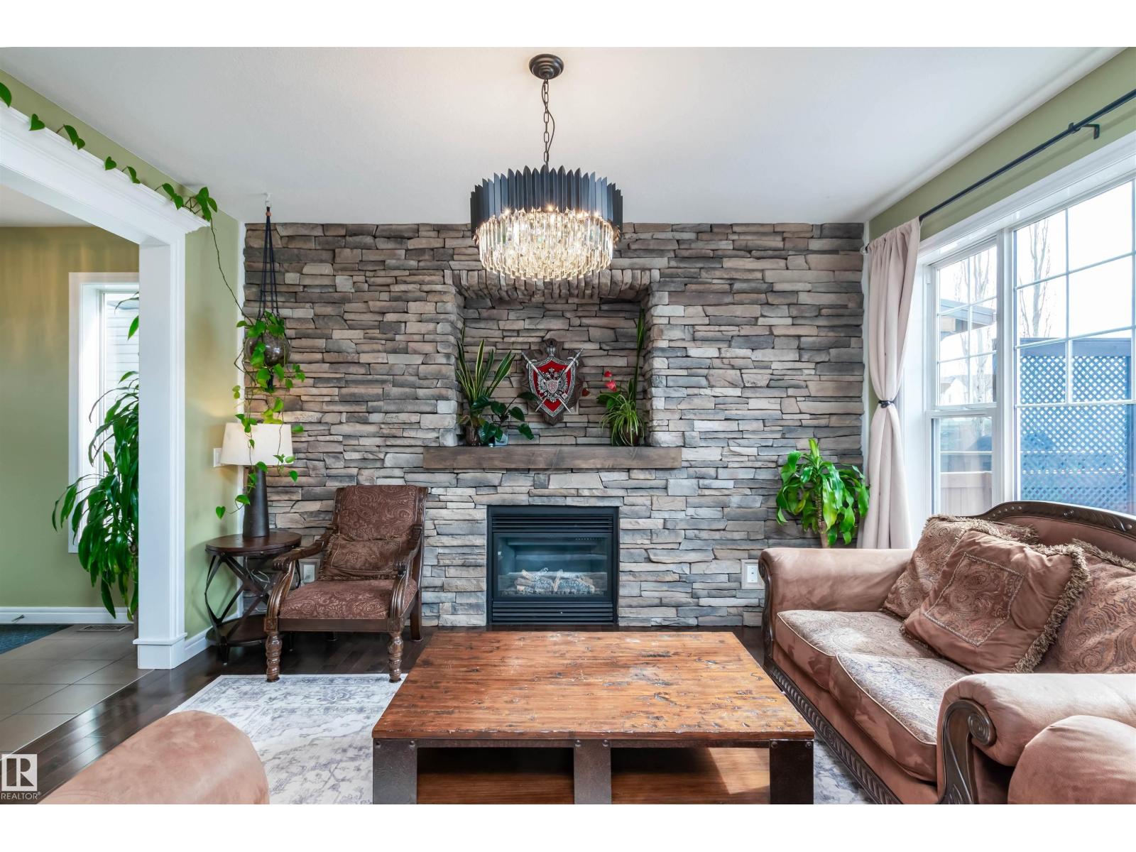 Did you say Oversized Triple Garage?? This immaculately appointed 4 bed, 3 1/2 bath 2 storey beauty, in the family friendly Fort Sask. comm. of Westpark, checks all the boxes. Once you get past the impressive and uber functional triple garage (heated and w/ 2 fl. drains and h/c water bibs), you are presented with a luxurious open concept main floor living, kitch. and eating space. The FULL WALL, floor to ceiling stone fireplace offers a unique living and entertainment area normally reserved for exclusive estate properties. So much natural light!! A well appointed kitchen with gas range, ceiling high cabinets, bar seating, and granite counters, looks directly out to an amazing outdoor gazebo covered deck w/ step in tub. The large primary bed. w/ luxury 4 pce ensuite (sep. tub and shower) sets the romantic mood. Spacious bonus room area for family entertainment. Fully finished basement w/ wet bar, and an additional bedr., full bath, and family room. Close to parks and walking trails!! Raise a family here!! (id:51989)
