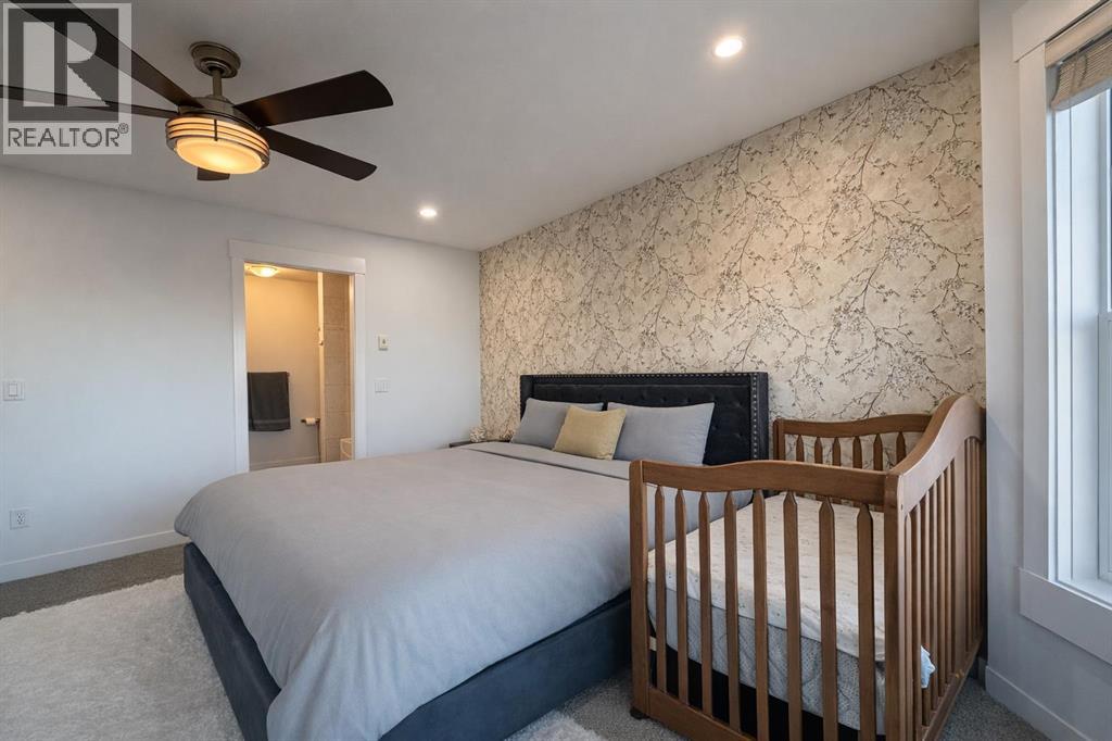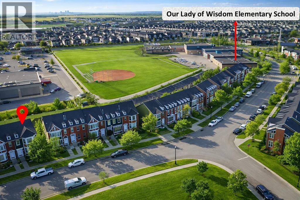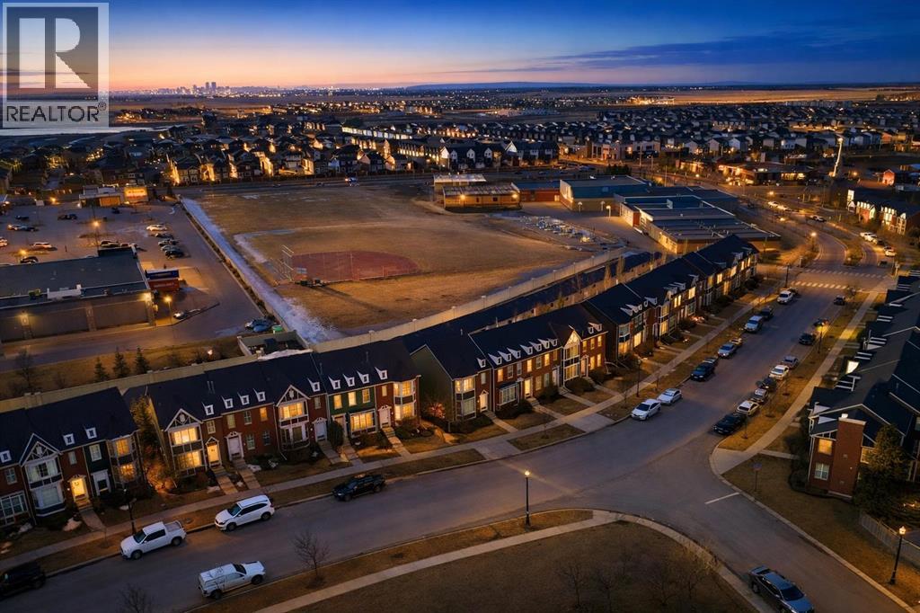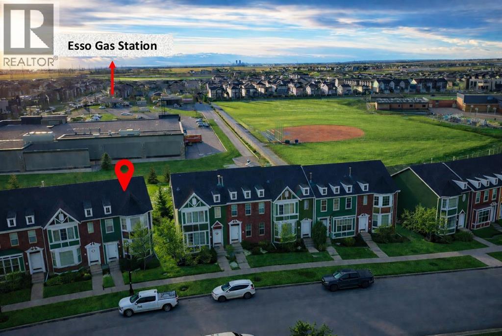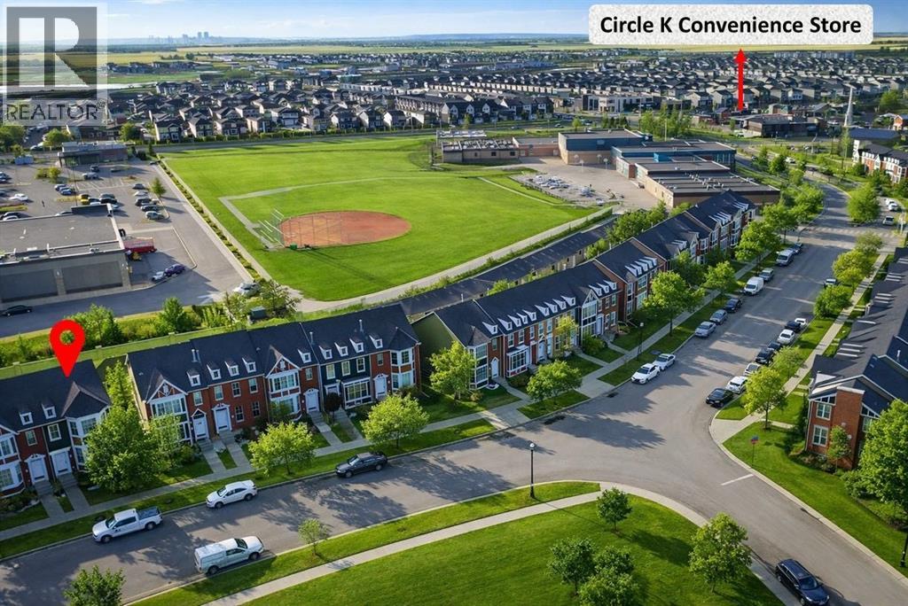 Welcome to this beautifully maintained END-UNIT townhouse offering over 1,800 sq ft of developed living space, including a fully finished walk-out basement. With 1,300+ sq ft above grade plus approximately 600 sq ft in the basement, this home is perfect for families, first-time buyers, or investors, combining comfort, functionality, and an excellent location.The bright open-concept main floor with 9-foot ceilings features a spacious living and dining area filled with natural light. The living room faces the park and fountain and boasts floor-to-ceiling windows, creating a beautiful and relaxing view. The well-appointed kitchen showcases dark cabinetry, a large pantry, an oversized island, and heated floors. A built-in central speaker system with amplifier adds the perfect touch for entertaining and everyday living.Upstairs you’ll find a primary bedroom with large sun-filled windows facing the front park, a walk-in closet with its own window, and a luxurious 5-piece ensuite with heated floors. A spacious second bedroom with large windows facing the backyard, along with a 4-piece bathroom, completes the upper level.The fully developed walk-out basement features a private entrance, full kitchen, and separate laundry (washer & dryer), offering excellent flexibility for extended family or additional living space.Additional highlights include a double attached garage with built-in organizing shelves, a clean and wide back alley, and the added privacy of an end-unit location.Ideally situated directly across from a park and water fountain, and within walking distance to grocery stores, banks, shops, pharmacy, gas station, restaurants, walking paths, and a family bike park. Schools are nearby, including one less than 250 metres away.Located just 3 minutes from Chestermere Boulevard, providing quick and convenient access to Calgary.Maintenance fees include condominium amenities, common area maintenance, and ground maintenance.A fantastic opportunity in a vibrant, fami ly-friendly community. (id:51989)