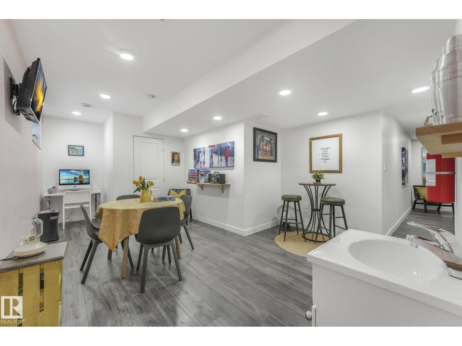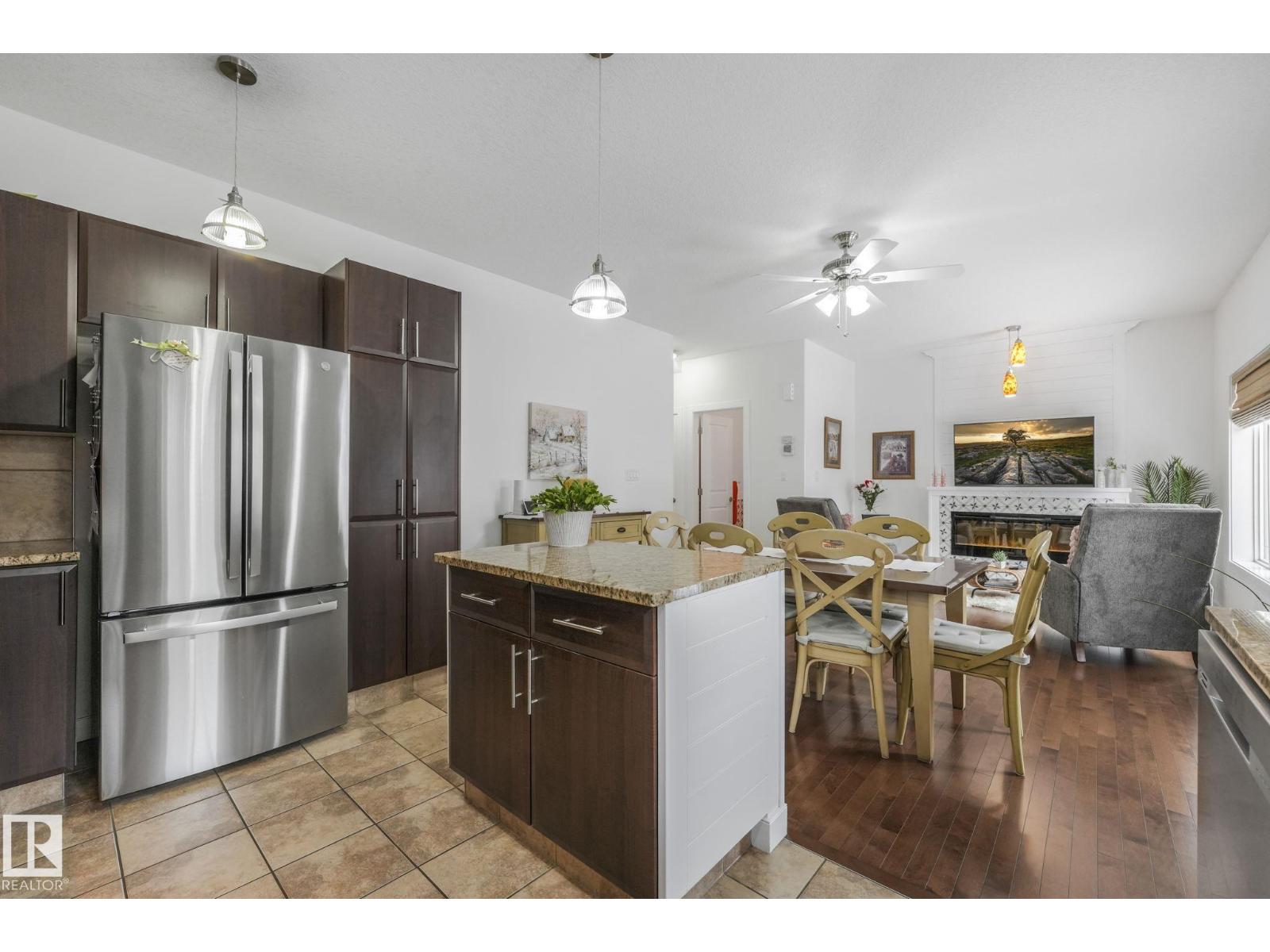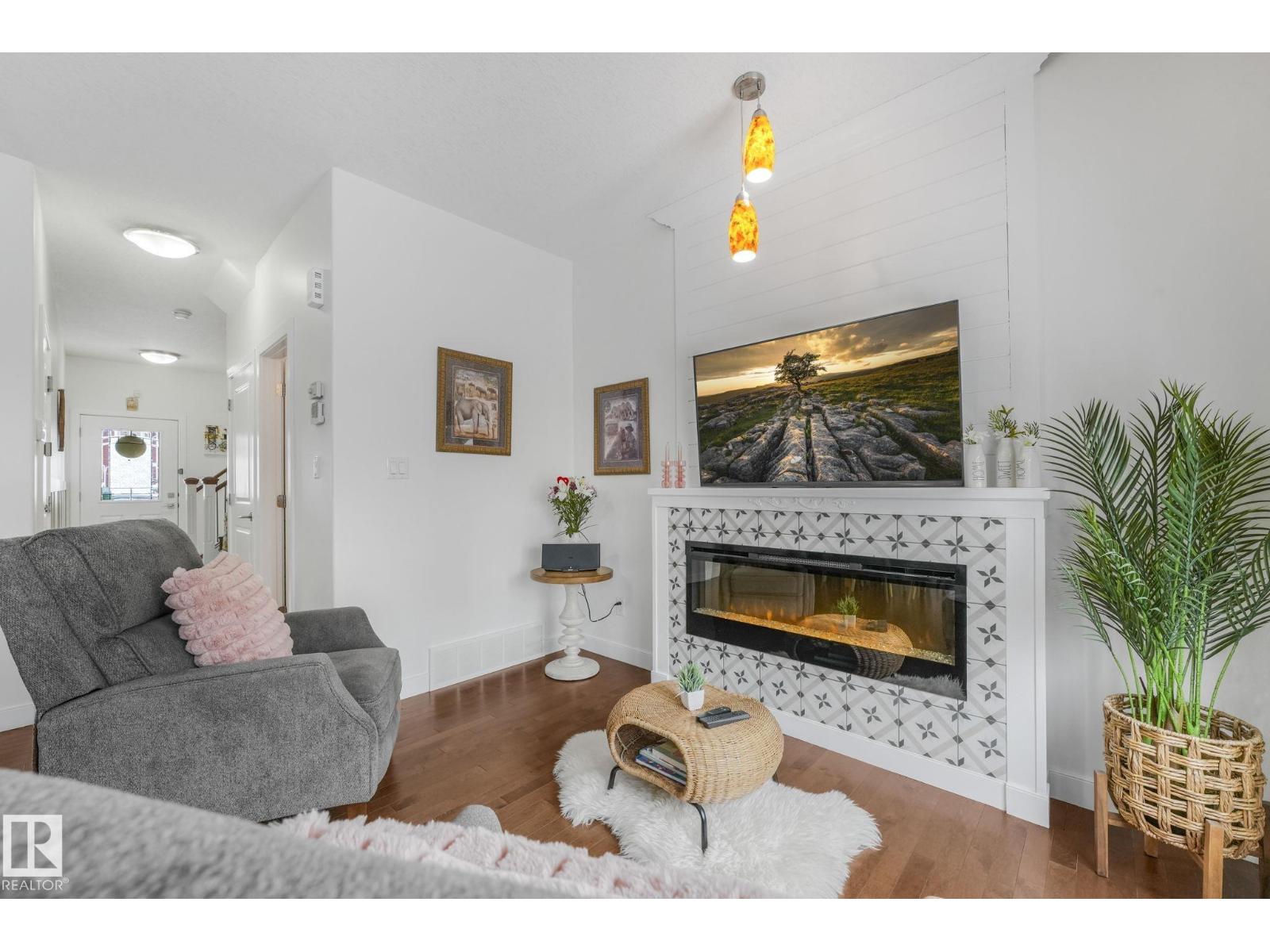 Immaculate Original Owner Townhome in McConachie with LOW CONDO FEES. Offering 2043 sf of Developed Space, Finished Basement, 3 Bedrooms, 4 Bathrooms & Double Attached Garage! Tasteful Accents & Upgrades Throughout Incl. Rich Hardwood Flooring on the Main Floor, Stairs & Bonus Rm, Wainscoting in the Foyer & Hall, Living Room w/ Feature Fireplace & Custom Mantle. Kitchen Outfitted w/Granite Countertops & High End SS Appliances. Even the Powder Room was renovated w/Italian Porcelain Tile & New Vanity! Upstairs Features a Cozy Bonus Rm, Upper Laundry Pair, 3 Good Sized Bedrooms incl. the Primary w/Shiplap Feature Wall, 3 pc. Ensuite & Walk-In Closet. The Basement is Prof. Developed w/Permits & includes a Large Family Rm, Wet Bar & Additional 2pc Bath. Upgrades incl; Hunter Douglas Roman Blinds, Lighting, Stair Spindles, New Fridge & Washer, Dishwasher 1yr, Phantom Screens Fr. & Back, Sec. System & BBQ Gas Line. Well Maintained Complex w/ Condo Fees of Just 212.03/mo! Quick Possession Available! Shows 10/10! (id:51989)