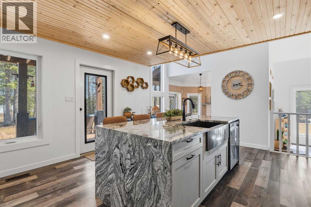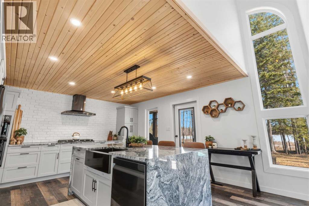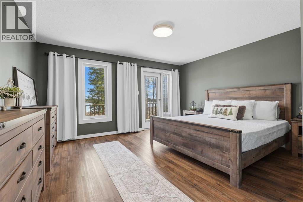 This stunning estate, spread across more than 40 acres, offers a rare sense of peace that begins the moment you pull up the drive. The property is a true sanctuary, even including a portion of the lake itself, ensuring your views and your privacy are preserved forever.Inside, the home feels both grand and incredibly grounded. The main living area greets you with soaring vaulted ceilings that draw the eye upward, while the front living room and separate dining area provide a warm, classic feel. The kitchen, renovated in 2021, was designed specifically to capture the morning light; it faces east toward the water, so you can enjoy the sunrise over the lake while you make your morning coffee. It’s as functional as it is beautiful, featuring crisp slow-close cabinetry, quartz countertops, a gas cooktop, and a unique fire-rated brick backsplash. All the appliances are high-end Samsung, and the fridge is even plumbed with a reverse osmosis water system.The layout is perfectly tailored for a family, offering a main-floor bedroom and three additional bedrooms upstairs. In a truly special touch, every bedroom on the second level in the house opens onto a balcony, allowing everyone space to step outside. The upper level is also home to the laundry room for maximum convenience, along with a double-sized cedar sauna and a freestanding soak tub in the main bath that turns the home into a personal spa.The infrastructure here is just as impressive as the aesthetics. With triple-paned windows on the top 2 levels, central air conditioning, and a 200-amp electrical service, the home is exceptionally comfortable and efficient. Outside, the land has been thoughtfully cared for, with new landscaping, fresh grass, and strategic tree clearing that opens up the view to the lake. A great feature of this property is the massive 40' x 60' shop, newly constructed in 2023. This fully finished, insulated, heated space is powered by a 100-amp service and features three large overhead doors for effortless equipment access and a 30-amp RV plug . Inside, a spacious mezzanine offers additional storage or potential for a private office overlooking the workspace. Complemented by an attached double-car garage and exterior fencing perfect for a dog run or small livestock. (id:51989)