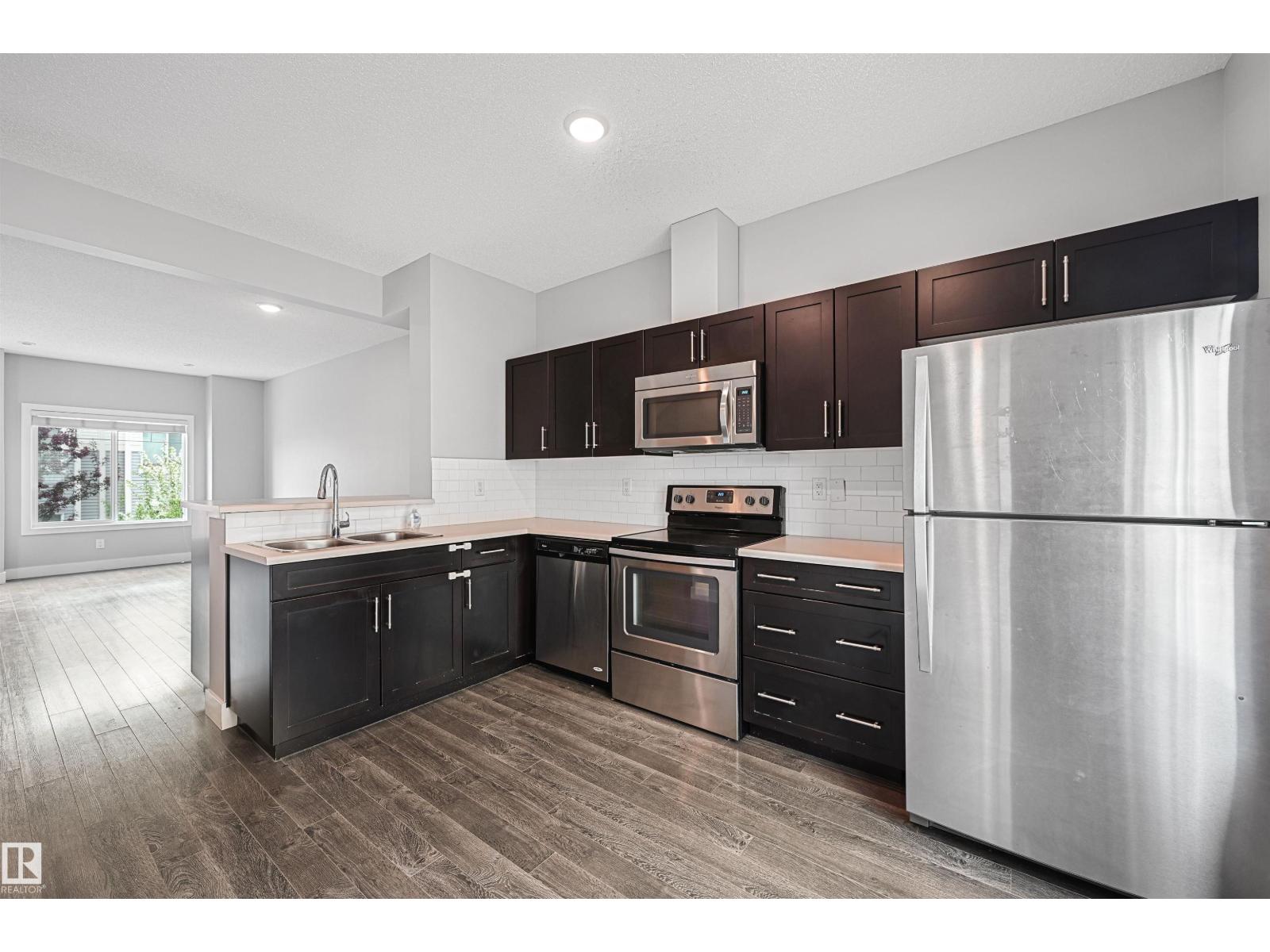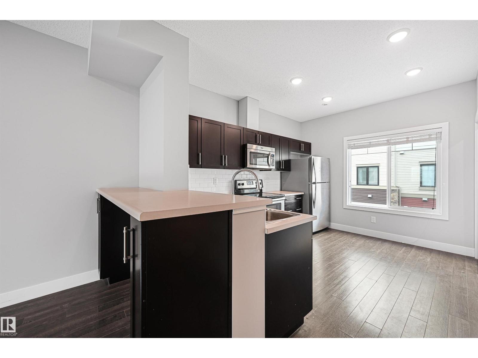 Well maintained and spacious 2 bedroom/2.5 bath townhome in desirable Walker. Main floor boasts 9' ceilings & quality finishings. The gorgeous kitchen has SS appliances, walk-in pantry & eating bar. Living room features an attached balcony to enjoy the fresh air & green space. The main level is equipped with a 2.5 bath & vinyl flooring. Upper level boasts 2 well-sized bedrooms. Primary bedroom has 3pc ensuite & walk in closet. Plus 2nd 4pc bathroom upstairs & laundry. Other features include a single attached garage, a flex room for office or play room, plenty of storage, energy-efficient mechanical including tankless hot water for a lower utility bill. This well maintained complex offers visitor parking & is conveniently located close to shopping, walking trails & lake. Quick proximity to Anthony Henday, South Common, schools & public transportation. A must see! (id:51989)