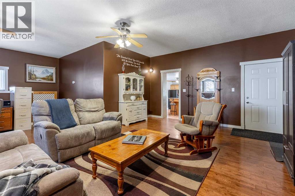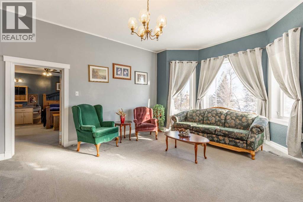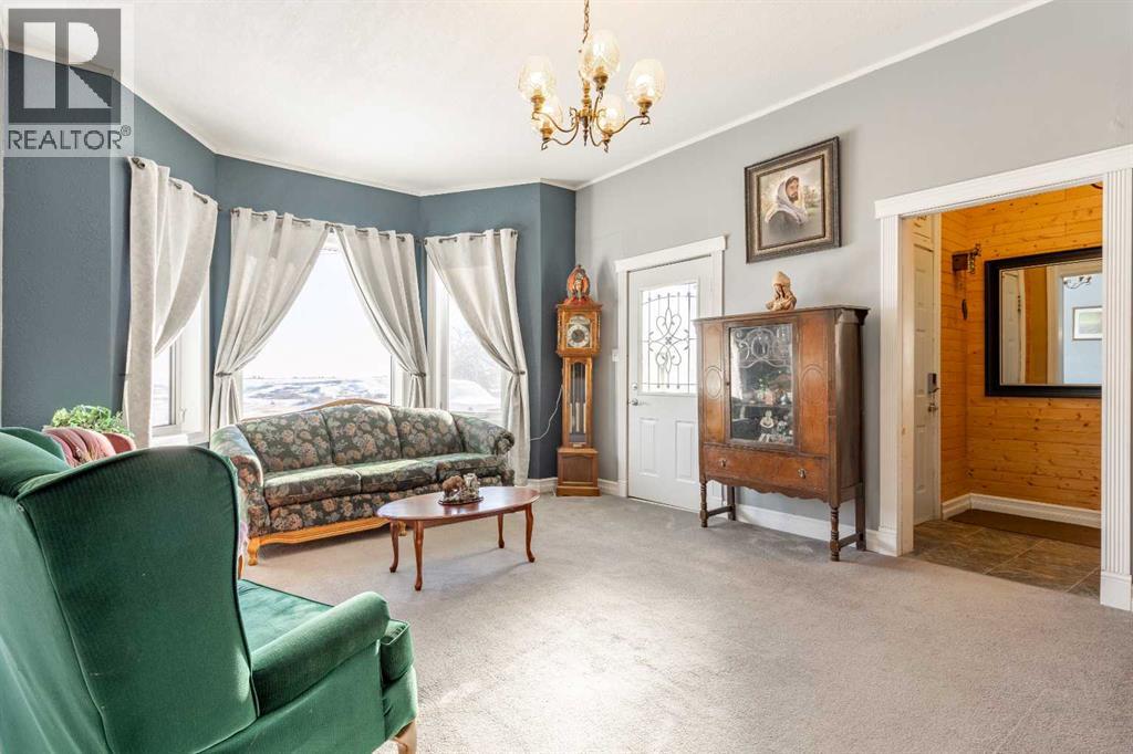 Welcome to acreage living just minutes from town. This charming century home blends character with thoughtful updates, including extensive renovations over the years and a large addition completed in 2008. The roof was also redone in 2012, giving peace of mind for years to come. Located just two minutes outside of Cardston and connected to municipal water, this approximately 2-acre property offers the space and privacy you’ve been looking for while still keeping everyday conveniences close by. Mature trees surround the yard, creating a peaceful setting complete with a single attached garage, plenty of parking, a dog run, storage shed, and room to truly enjoy the outdoors. Evenings are made better with permanent gemstone lights and a relaxing hot tub, perfect for unwinding year-round. Inside, you’ll immediately notice the warmth of the hardwood floors, the preserved character of the home, and the incredible amount of storage and living space throughout. With four bedrooms and four full bathrooms, this home was designed with family living in mind. There are three separate living areas, two on the main level and one downstairs, offering flexibility for gathering, entertaining, or simply spreading out. The home also features both an eat-in dining space and a formal dining room for larger occasions. The primary bedroom includes a spacious walk-in closet and a private ensuite complete with a jetted tub, creating a comfortable retreat at the end of the day. If you’ve been dreaming of more space, beautiful views, and a home that offers both character and functionality, this property delivers the best of country living just minutes from town. (id:51989)
