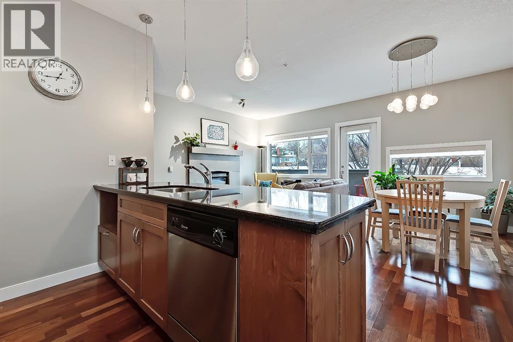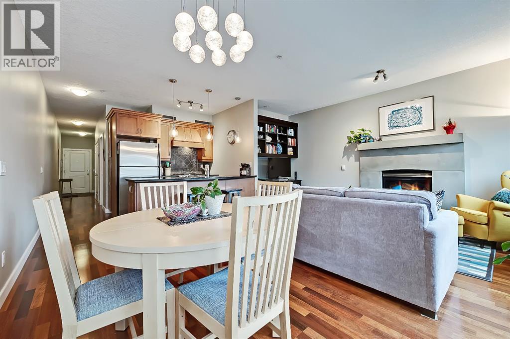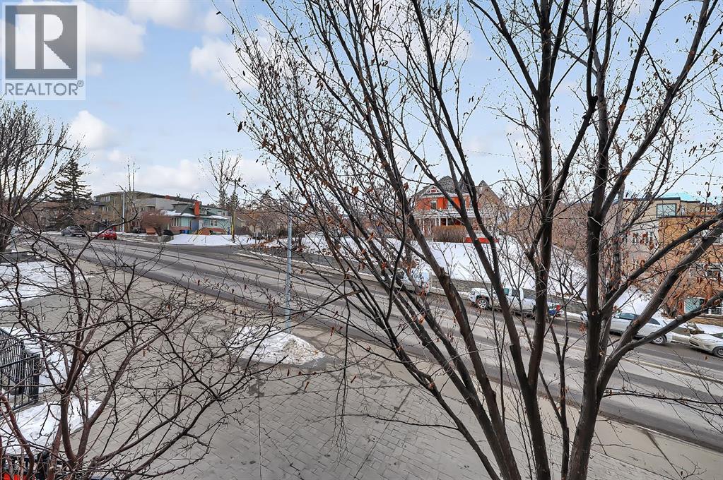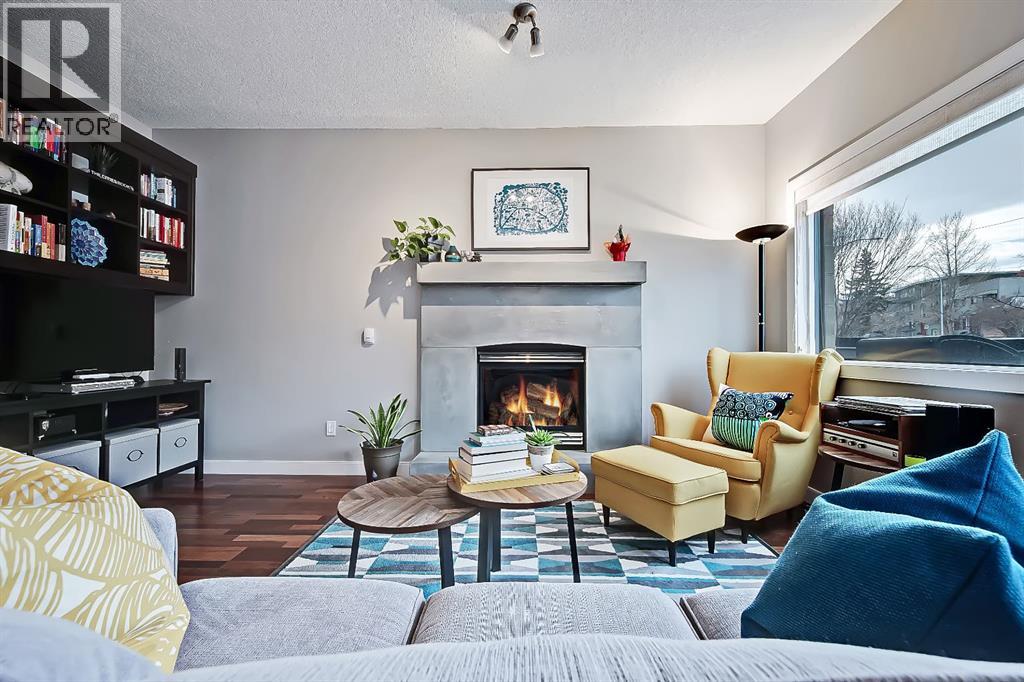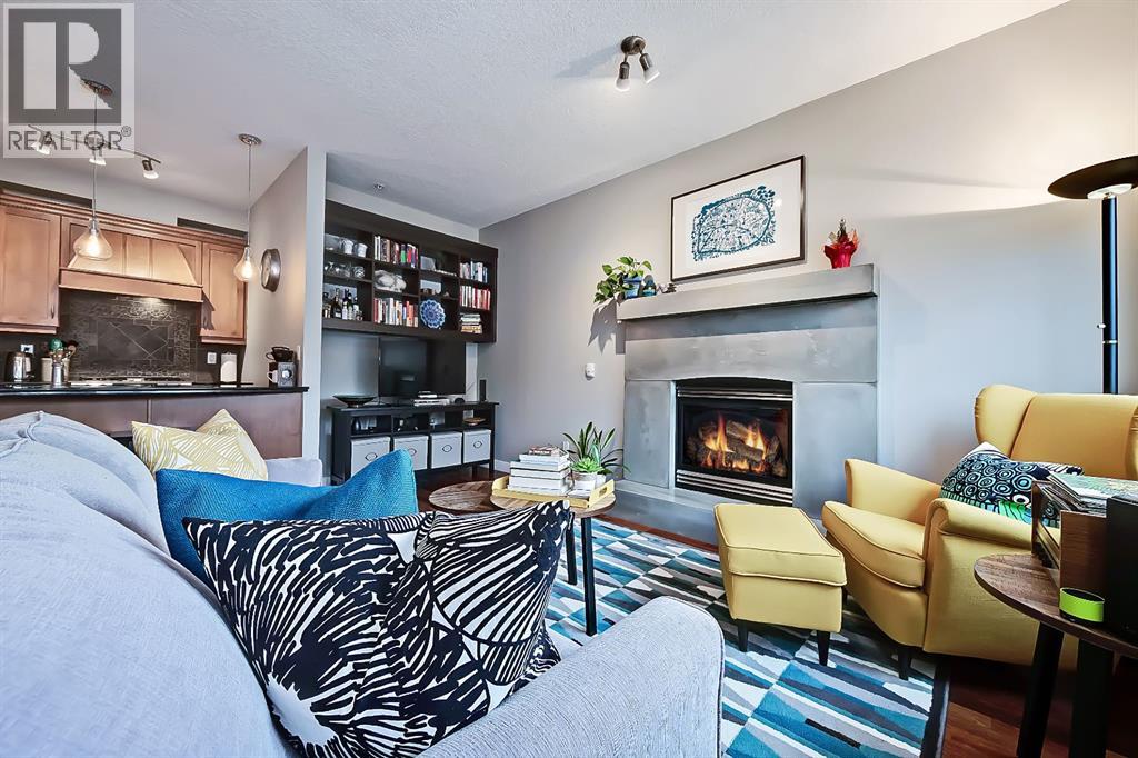 A rare opportunity to own in the exclusive GREYSTONES, perfectly positioned in the heart of Lower MOUNT ROYAL! Just steps from 17th Avenue, you’ll enjoy one of Calgary’s most vibrant & walkable lifestyles: cafés, restaurants, boutiques, live music - everything downtown offers - within easy reach...while still tucked into a quiet, well-managed building! This beautifully designed 2 bedroom, 2 bathroom condo is filled with warm WEST-facing light, creating an inviting & comfortable atmosphere throughout the main living space. Large windows and a CONCRETE MANTLE gas fireplace anchor the living area, offering the perfect place to unwind at the end of the day. Built in book case creates a corner perfect for reading or a desk would fit here easily! Open concept allows you to cook/dine/live, gaze outside at the beautiful trees in front of you (so much glass across the front of unit!) Interact with family or guests, watch TV - ALL in the same space. The deck offers extended living with MATURE trees....plus a GAS line for your BBQ! Kitchen is both functional & refined. NEW tap, NEW fridge, Granite countertops, stainless steel appliances, GAS stove & thoughtful storage. There is a bonus 2 piece bath for convenience. The primary bedroom is complete with 4 piece bath that includes a huge SOAKER TUB & separate shower, ideal for relaxing after a long day PLUS this is a feature you don't see in inner city condos at this price point!! Custom wood shelving in closet. A second bedroom provides flexibility - use it for guests, work from home or additional living space. IN SUITE laundry. Quality IN FLOOR heating means NO baseboard heaters! TITLED PARKING (first spot through the door - makes it super easy to unload groceries etc!) BONUS - there is opportunity to "rent" a second underground spot! Rather walk or ride your bike - this is your perfect place to live! Dedicated, secure, SAFE storage space that is TRIPLE the size of normal buildings!!! With condo fees covering heat & water, th is is a low-maintenance, lock-and-leave lifestyle in one of Calgary’s most sought-after inner-city locations! PET friendly & mins from the vibrant amenities of the Beltline, Mission & Marda Loop neighborhoods! CENTRALLY located. Be at airport in 25 mins, exploring the Calgary Stampede grounds in under 10 mins or hiking in Canmore within an hour! This one won't last - call today to view! (id:51989)