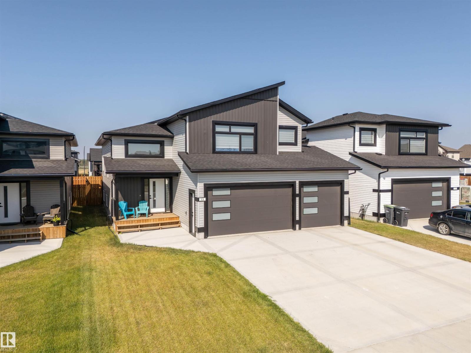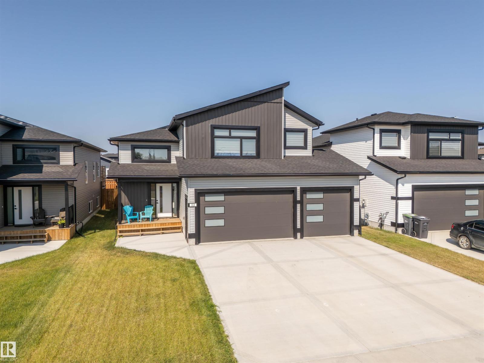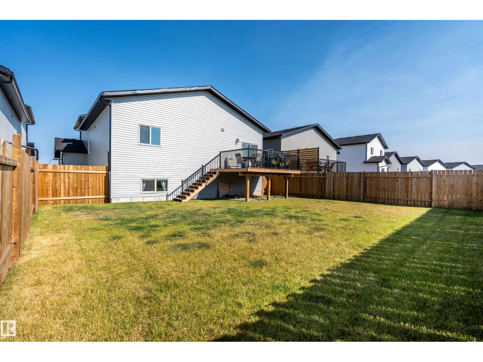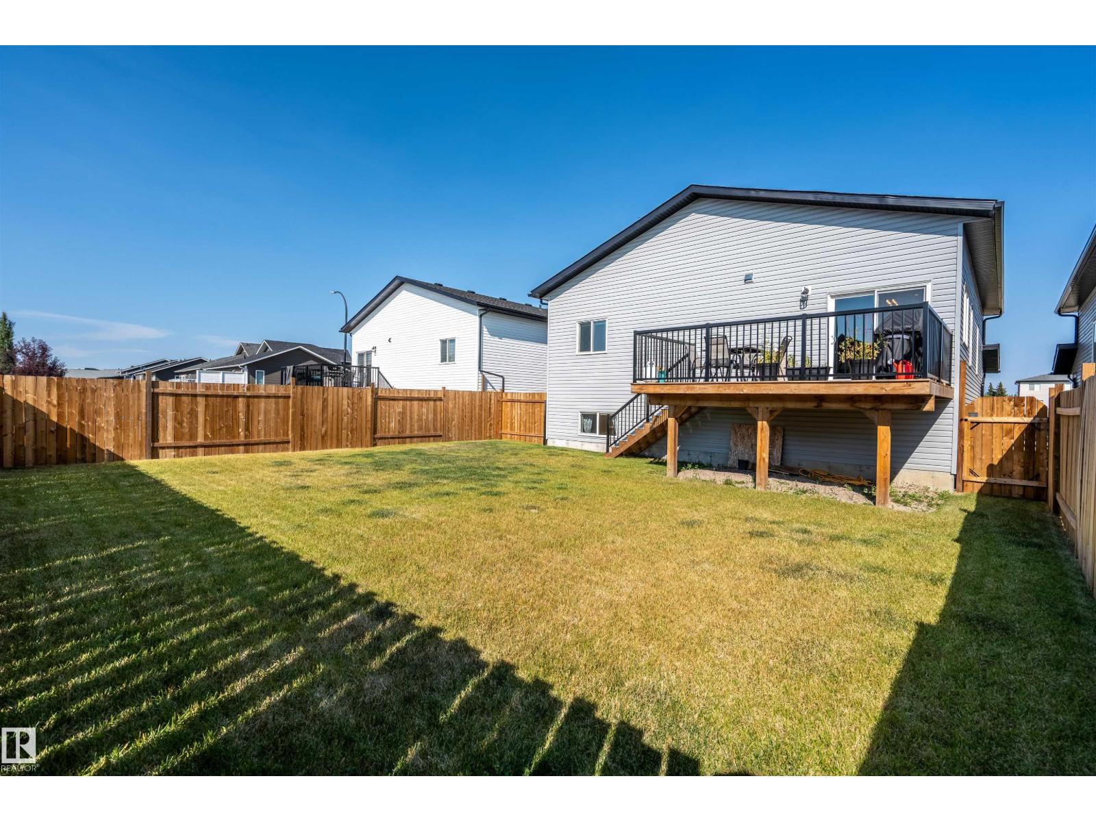 Beautifully finished Hailey-style home with triple heated garage, located in Cold Lake North near Kinosoo Beach, the hospital, and a future playground. Fully landscaped and fenced, the property includes a concrete driveway, sidewalk, and a spacious back deck. A big entry leads up to the open concept main living area, where 10 ft ceilings enhance the bright living room, dining area, and kitchen. The kitchen features modern custom cabinetry, quartz countertops, a large island, and stainless steel appliances. This level also includes 2 bedrooms, the main bathroom, and laundry. A few steps above, the private primary suite offers 2 walk-in closets and a full ensuite with tiled shower and separate tub. The fully finished basement with in-slab heat includes a large family room with wet bar, 2 additional bedrooms, and a full bathroom. Complete with central air and custom window coverings, this home offers quality finishes and functional space in a desirable location. (id:51989)