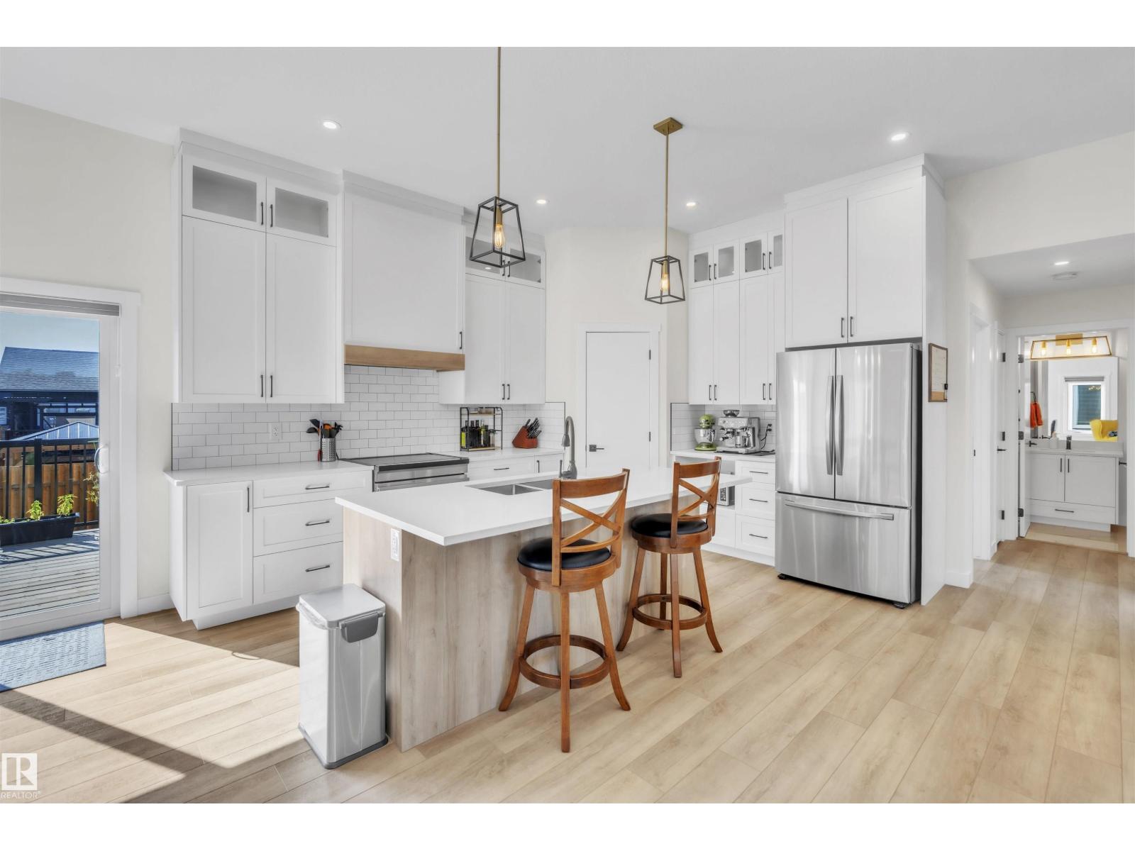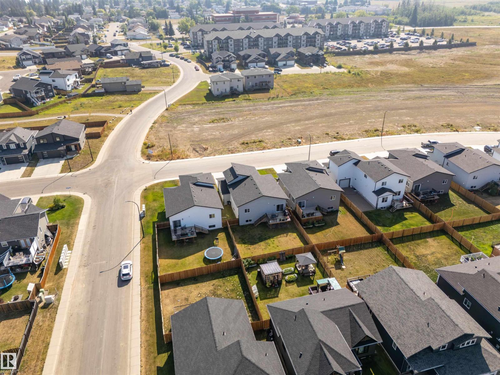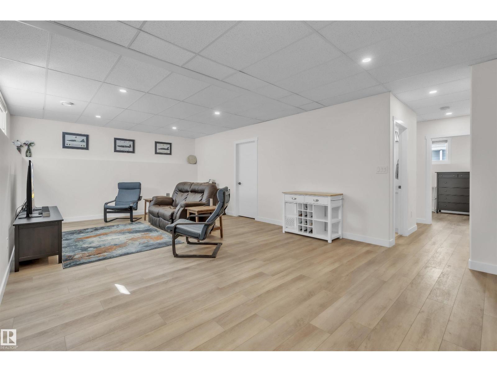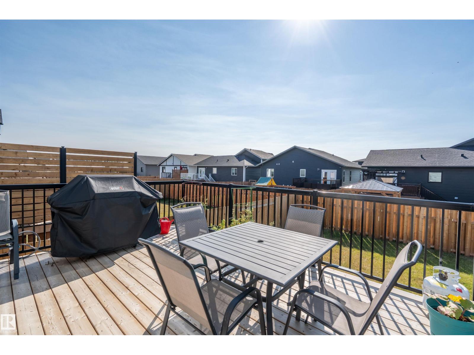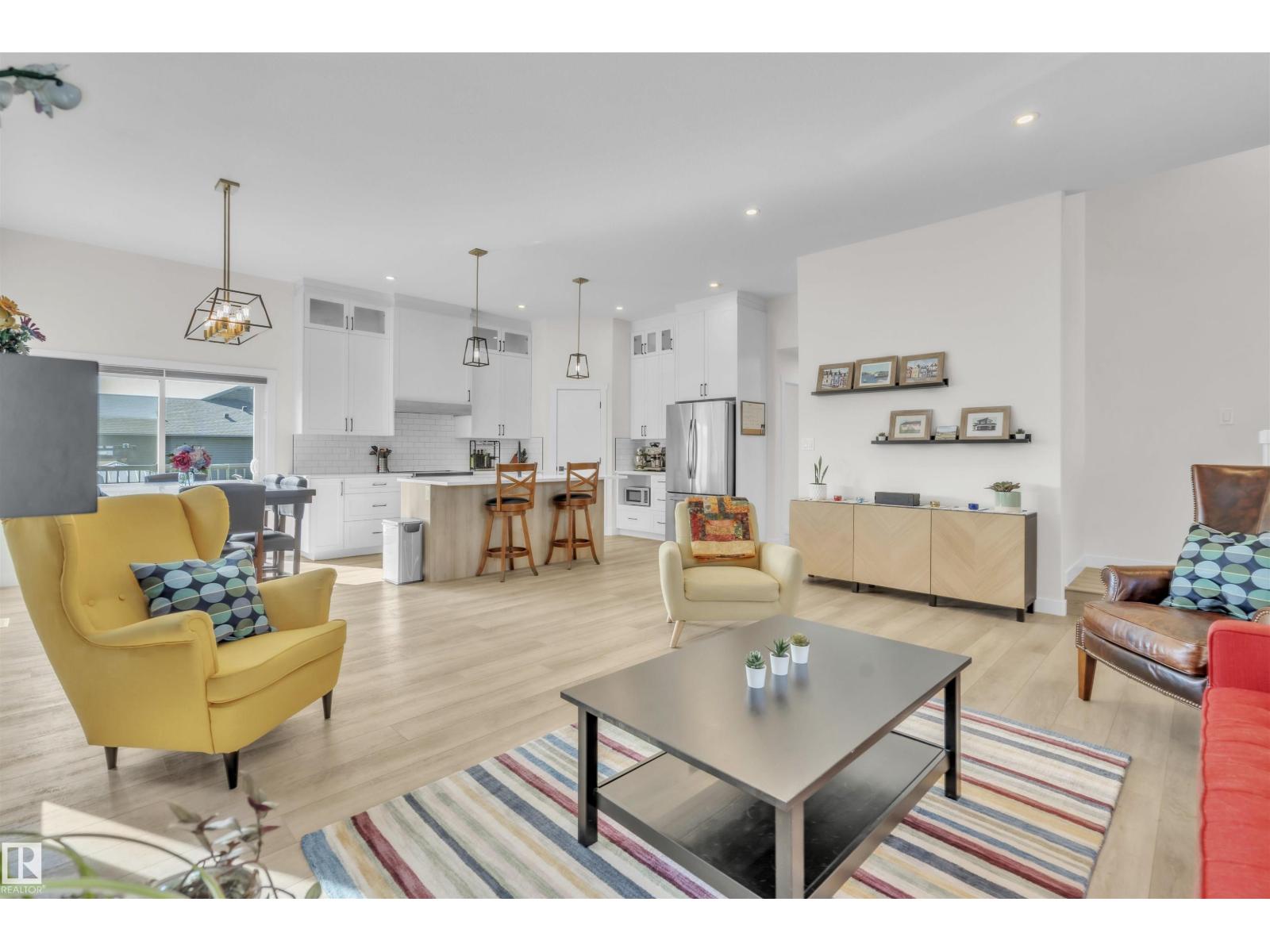Beautifully finished Hailey-style home with triple heated garage, located in Cold Lake North near Kinosoo Beach, the hospital, and a future playground. Fully landscaped and fenced, the property includes a concrete driveway, sidewalk, and a spacious back deck. A big entry leads up to the open concept main living area, where 10 ft ceilings enhance the bright living room, dining area, and kitchen. The kitchen features modern custom cabinetry, quartz countertops, a large island, and stainless steel appliances. This level also includes 2 bedrooms, the main bathroom, and laundry. A few steps above, the private primary suite offers 2 walk-in closets and a full ensuite with tiled shower and separate tub. The fully finished basement with in-slab heat includes a large family room with wet bar, 2 additional bedrooms, and a full bathroom. Complete with central air and custom window coverings, this home offers quality finishes and functional space in a desirable location. (id:51989)