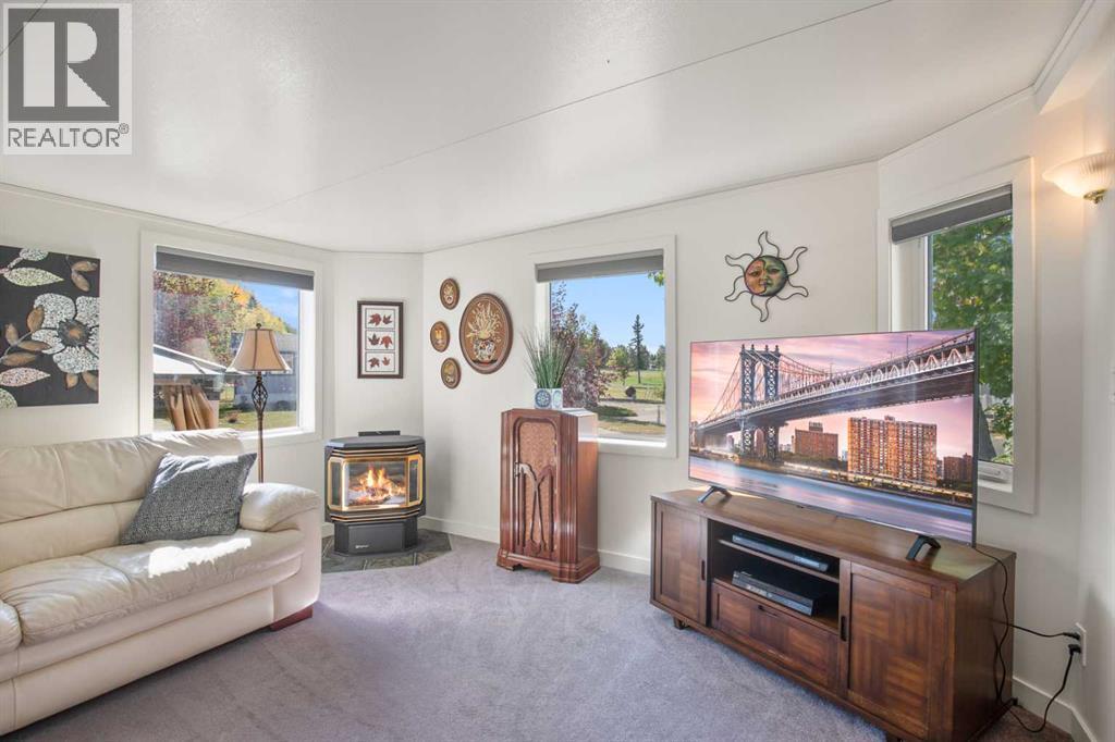 Welcome to Lot 3044 at Gleniffer Lake Resort, set on a spacious corner lot in a central location just a short walk to the resort’s main amenities. This custom Dickson Creek modular home offers a bright, open-concept layout designed for relaxed lake living and easy entertaining. The main living space is filled with natural light and anchored by a propane fireplace, creating a warm and functional gathering area. A generous dining space makes it easy to host family and friends. The home features two large bedrooms along with both a four-piece and two-piece bathroom, offering a practical setup for guests or extended stays. Known for its solid construction, the home is equipped with reliable central heating for comfortable four-season use. Outdoor living is where this property really shines. The oversized lot provides excellent space to spread out, with a concrete drive pad, patio area with gazebo, and a wood-burning firepit, perfect for enjoying time outdoors at the lake. The corner location adds to the sense of openness while still keeping you within easy reach of the rest of the resort. Additional features include six appliances, window coverings, multiple storage options including a big shed and wood shed, and a Club Car golf cart. Gleniffer Lake Resort is known for its well-maintained grounds, welcoming community, and wide range of amenities including golf, pools, hot tubs, fitness facilities, marina access, beaches, walking paths, and year-round activities, all within an easy drive from the city. (id:51989)
