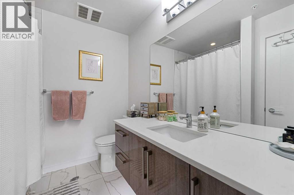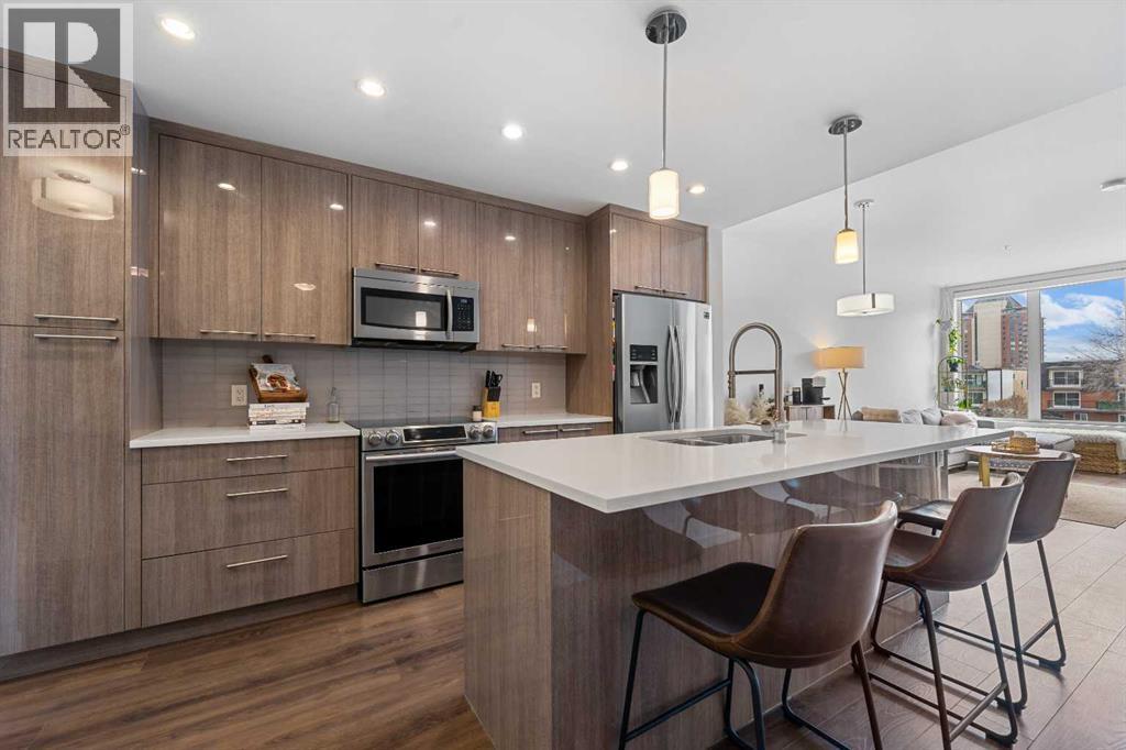 Welcome to the Tela in the heart of Mission—located on the most desirable streets, 22nd Avenue SW. This quiet, tree-lined location offers the best of inner-city living just steps from the energy of 4th Street. Kitty corner to Bodega, OEB Breakfast, and Blowers and Grafton, you can't find a better location!This gorgeous 1-bed + 1.5 bath unit offers the ideal blend of function and comfort with captivating high-end finishes throughout the home and a VIEW! With an Open-Concept layout, 9-foot ceilings, and CENTRAL A/C to keep you cool over the summer months. The large SOUTH FACING Windows bring in an abundance of natural light, creating an airy ambiance and breathing life into the home. The Chef's Kitchen is an entertainer's dream! Featuring high gloss Cabinetry, upgraded Stainless Steel Appliances, a MASSIVE KITCHEN ISLAND, and beautiful Quartz Countertops. This unit is a RARE find, with both a powder room (2pc Bath) for your guests, and an ensuite 4pc Bath attached to the Primary Bedroom. The spacious Primary Bedroom offers a peaceful retreat with Double Walk-through Closets and a well-appointed ensuite. Step out onto your private balcony—complete with a gas line for BBQ—and enjoy VIEWS and people watching in this unbeatable location! Walk to Mission’s best restaurants, cafes, shops, groceries, and transit, or enjoy quick access to the Elbow River pathways just minutes away. An ideal opportunity for professionals, first-time buyers, or investors looking for premium inner-city living in one of Calgary’s most sought-after communities. (id:51989)