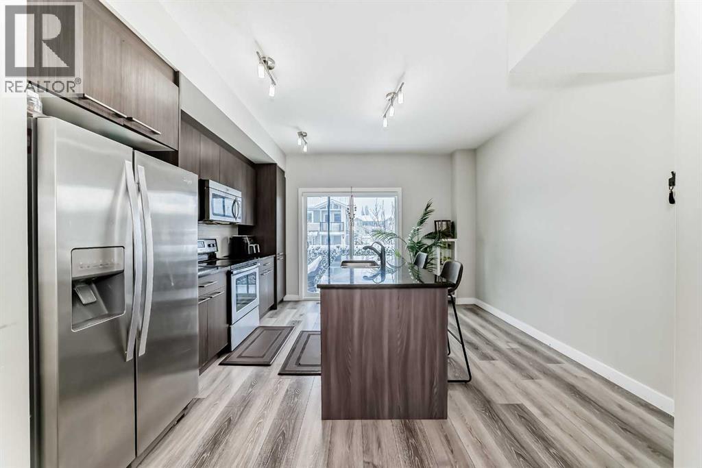 Fantastic opportunity Live less than 5 minutes from the lake in this well-located home on Marina Drive, directly across from a large plaza with all amenities.The bright main floor features a spacious entryway, sunny den/office, 2-piece bath, and access to the attached garage with epoxy flooring. The modern kitchen offers stainless steel appliances, granite countertops, a large eat-up island, and access to the first balcony with gas line for BBQ. The open-concept dining and living area leads to a second sunny balcony, perfect for relaxing or entertaining.Upstairs you’ll find two spacious bedrooms, a 4-piece bathroom, and the convenience of a 2-in-1 washer/dryer combo. Additional highlights include air conditioning and a fenced southeast-facing front yard.Enjoy being steps from groceries, schools, library, community centre, daycare, playgrounds, the lake, walking paths, boating, swimming, and more. (id:51989)