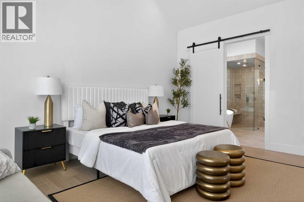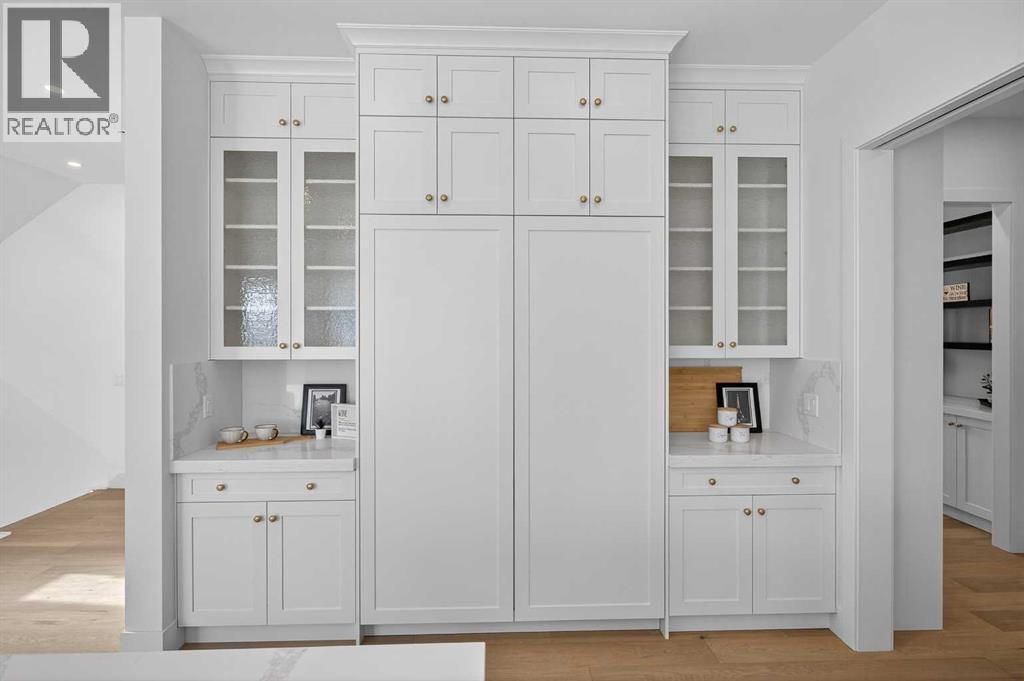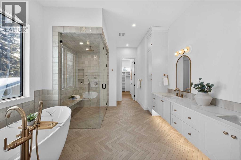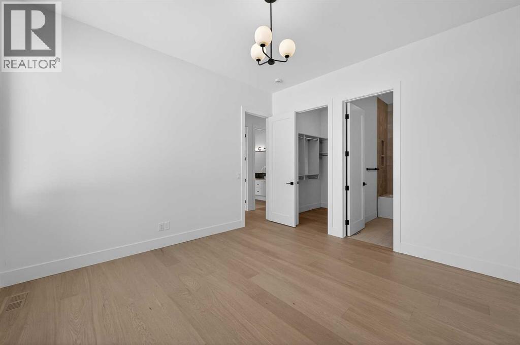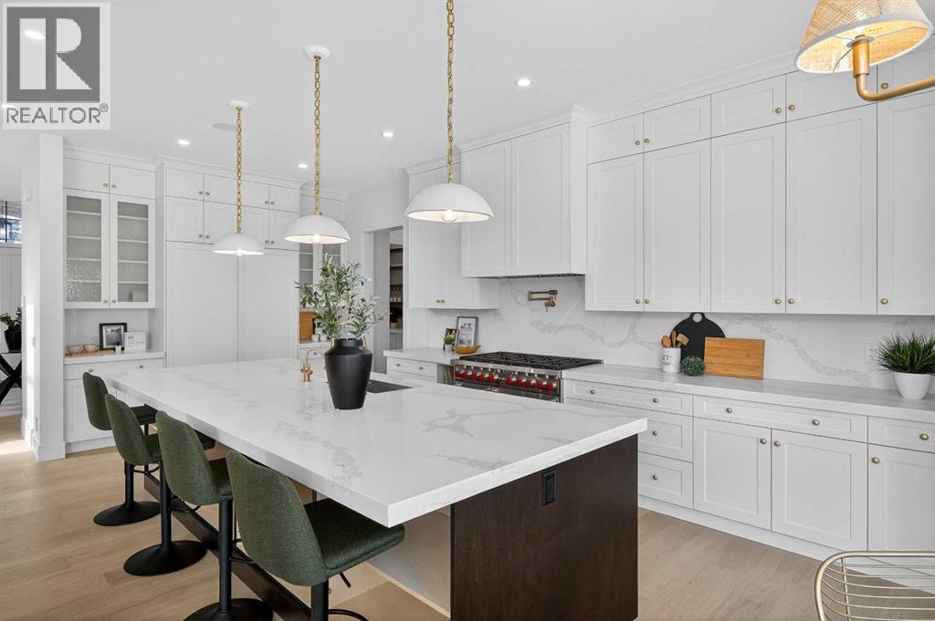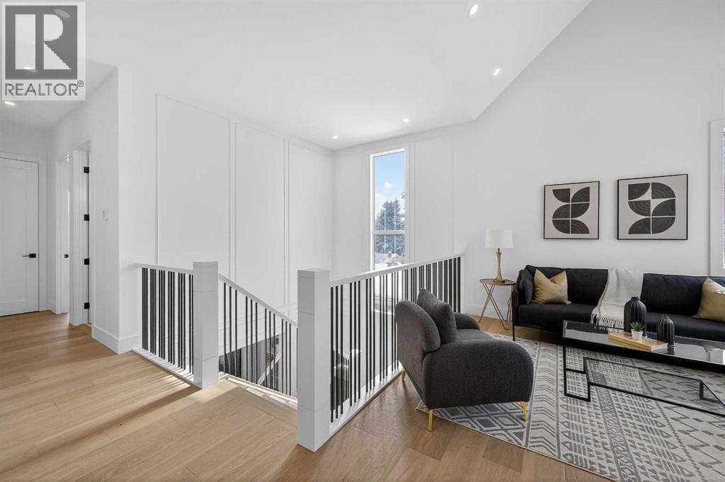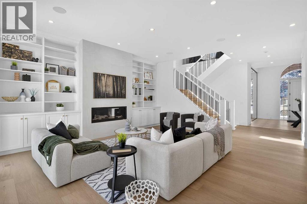 Introducing a stunning new-construction Modern Farmhouse estate that represents a sophisticated blend of transitional luxury and contemporary design. Captivating curb appeal is achieved through a striking neutral palette, a grand arched entryway, and an abundance of oversized, black-framed windows that create a dramatic, light-filled welcome. This residence boasts over 4,900 sq ft of total living space, including more than 3,300 sq ft on the upper levels, featuring 6 spacious bedrooms and 4.5 luxurious bathrooms. Experience true volume with 10-foot ceilings on the main and second levels, complemented by premium engineered hardwood flooring throughout the upper floors. The kitchen is a culinary masterpiece equipped with top-tier appliances, including a built-in Sub-Zero refrigerator and freezer, an 8-burner Wolf gas range, and a matching Wolf hood fan, while a dedicated butler’s pantry with a sink adds further convenience for entertaining.The upstairs Primary Suite serves as a private sanctuary featuring a vaulted ceiling and a bespoke walk-in closet with a central island. The spa-like ensuite offers the ultimate in comfort with heated floors finished in a stunning herringbone pattern tile. For ultimate family convenience, every secondary bedroom on the second floor also includes its own private washroom and walk-in closet. The expansive lower level significantly extends the living space and features heated floors throughout for year-round comfort. This basement includes three additional spacious bedrooms, a luxurious 5-piece bathroom, and an incredible recreation area complete with a sprawling family room and a full bar, perfectly appointed for movie nights or hosting guests.Engineered for peak efficiency and performance, this home features the newest technology NTI boiler furnace integrated with flexible duct vent technology. The highly functional features continue with a cozy gas fireplace in the living room and a second gas fireplace located outside on the co ncrete patio for elegant outdoor entertaining. The main floor also includes a functional mudroom and a dedicated dog wash area, proving that this house truly has it all. Situated in prestigious Lakeview SW, this estate is surrounded by mature trees and offers phenomenal connectivity, located less than a 15-minute drive from Downtown Calgary. It is minutes away from Mount Royal University and Rockyview General Hospital, with immediate access to North Glenmore Park and elite Golf Clubs. This home sets a new standard for move-in-ready, transitional luxury living. An opportunity not to be missed—call your favorite realtor today to book a private showing. The lockbox is hanging on the pole directly in front of the house for easy access. (id:51989)