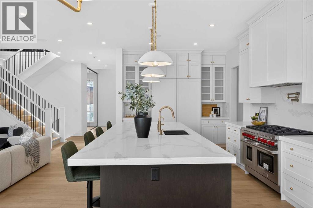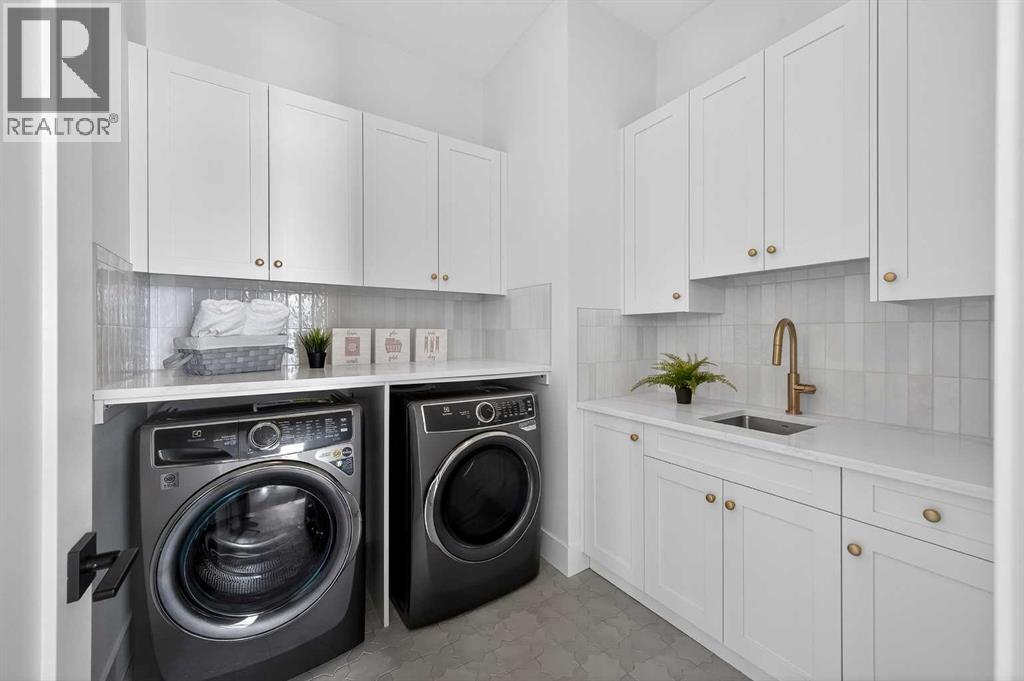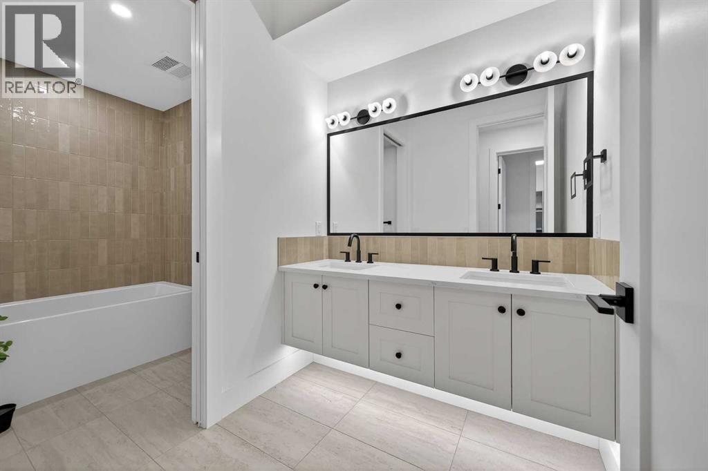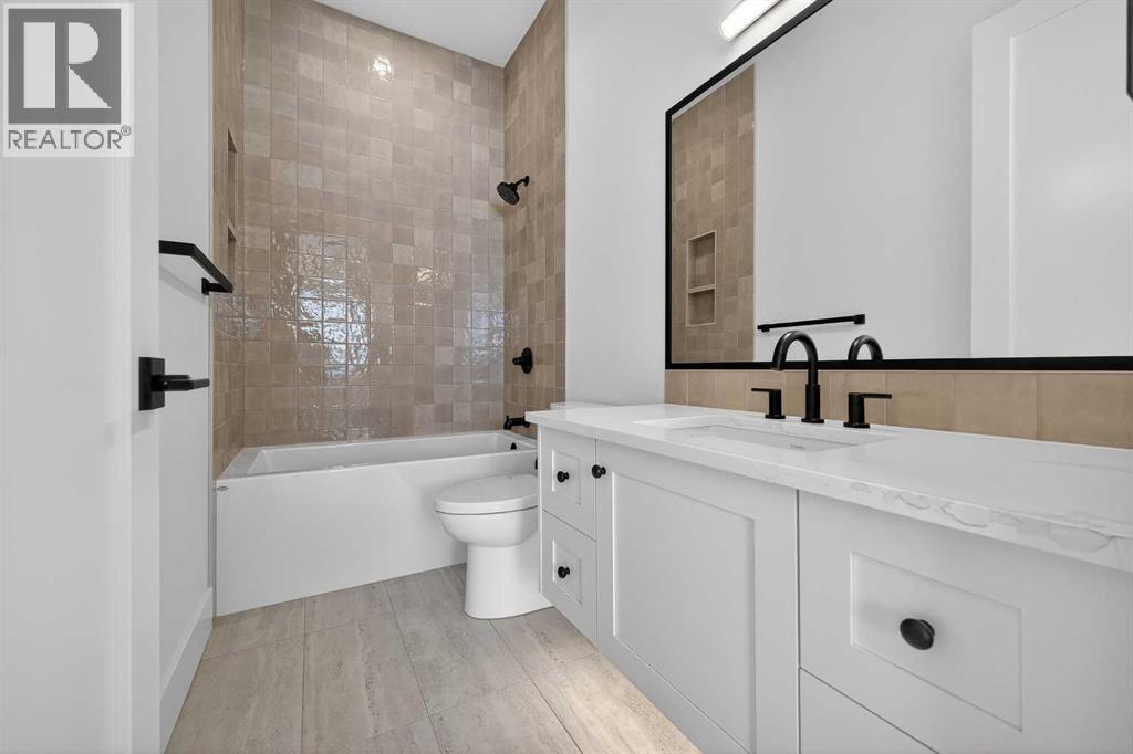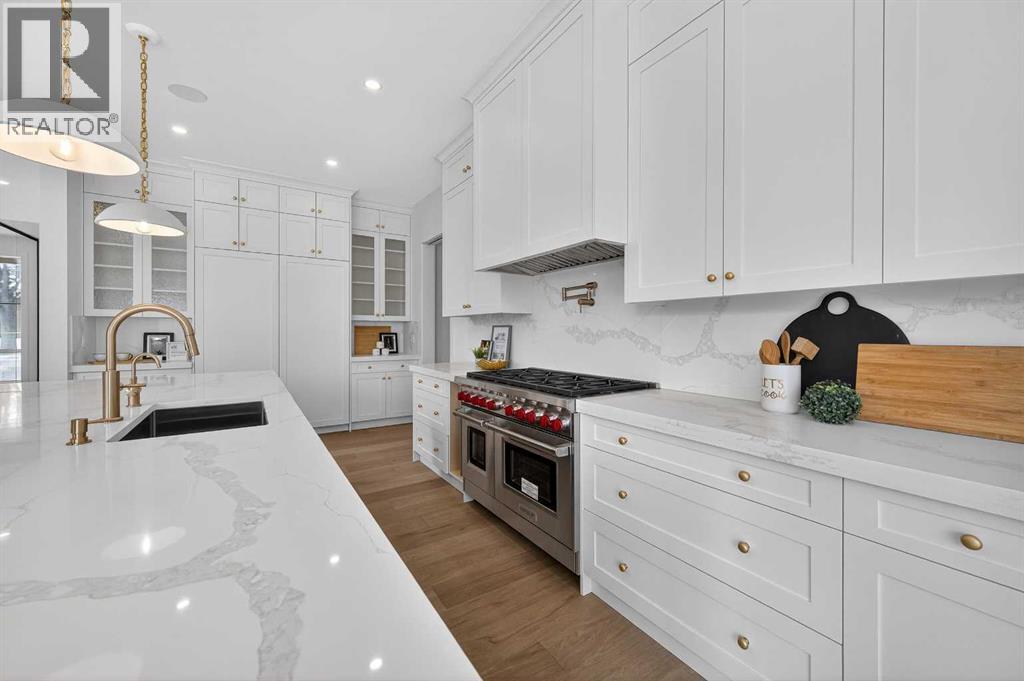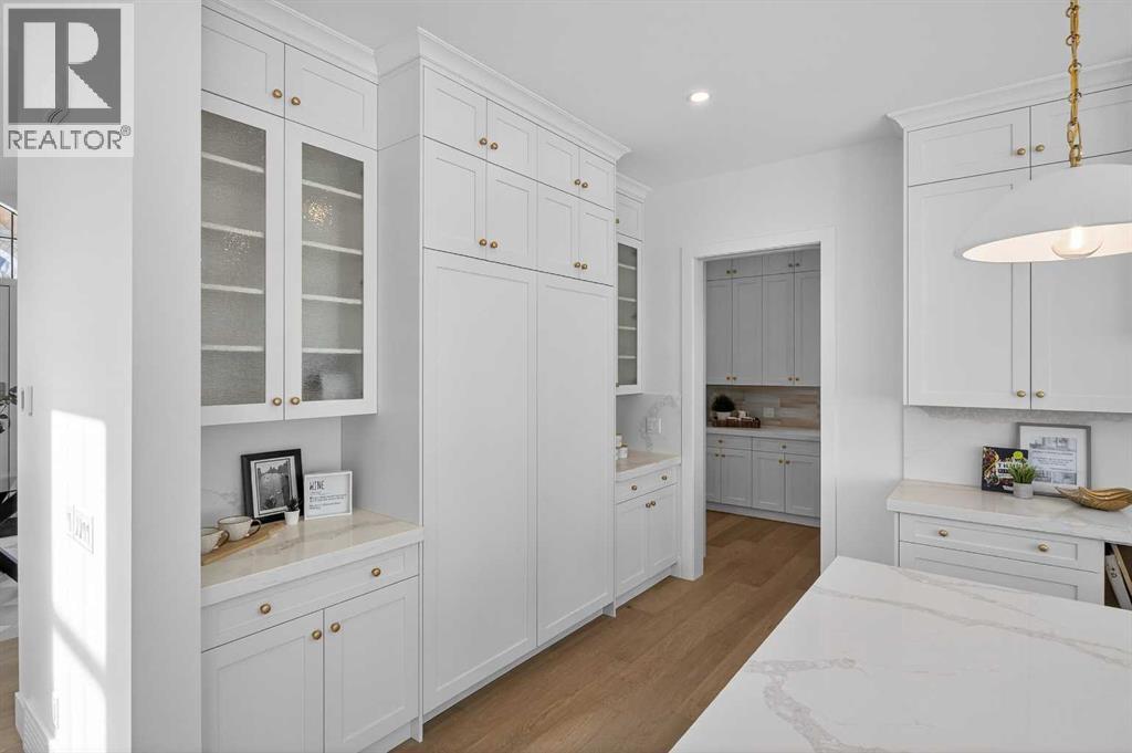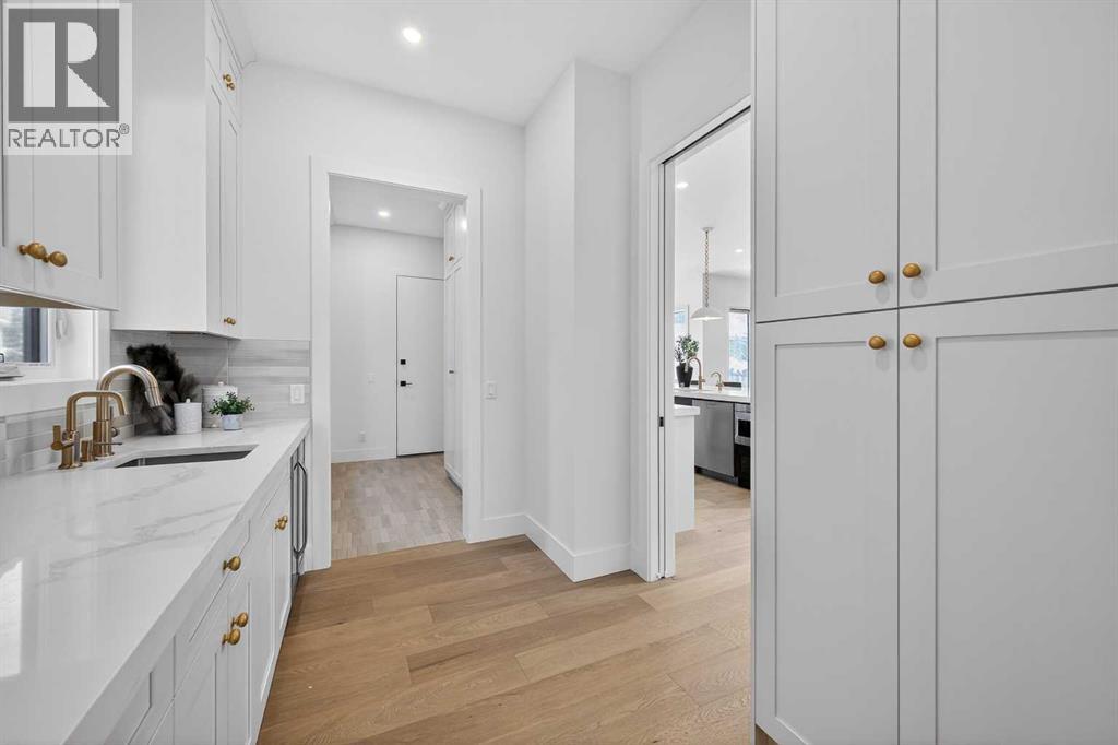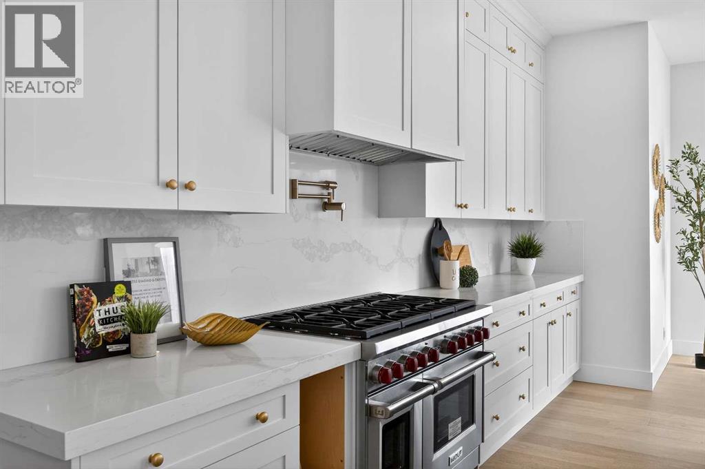 Introducing a stunning new-construction Modern Farmhouse estate that represents a sophisticated blend of transitional luxury and contemporary design. Captivating curb appeal is achieved through a striking neutral palette, a grand arched entryway, and an abundance of oversized, black-framed windows that create a dramatic, light-filled welcome. This residence boasts over 4,900 sq ft of total living space, including more than 3,300 sq ft on the upper levels, featuring 6 spacious bedrooms and 4.5 luxurious bathrooms. Experience true volume with 10-foot ceilings on the main and second levels, complemented by premium engineered hardwood flooring throughout the upper floors. The kitchen is a culinary masterpiece equipped with top-tier appliances, including a built-in Sub-Zero refrigerator and freezer, an 8-burner Wolf gas range, and a matching Wolf hood fan, while a dedicated butler’s pantry with a sink adds further convenience for entertaining.The upstairs Primary Suite serves as a private sanctuary featuring a vaulted ceiling and a bespoke walk-in closet with a central island. The spa-like ensuite offers the ultimate in comfort with heated floors finished in a stunning herringbone pattern tile. For ultimate family convenience, every secondary bedroom on the second floor also includes its own private washroom and walk-in closet. The expansive lower level significantly extends the living space and features heated floors throughout for year-round comfort. This basement includes three additional spacious bedrooms, a luxurious 5-piece bathroom, and an incredible recreation area complete with a sprawling family room and a full bar, perfectly appointed for movie nights or hosting guests.Engineered for peak efficiency and performance, this home features the newest technology NTI boiler furnace integrated with flexible duct vent technology. The highly functional features continue with a cozy gas fireplace in the living room and a second gas fireplace located outside on the co ncrete patio for elegant outdoor entertaining. The main floor also includes a functional mudroom and a dedicated dog wash area, proving that this house truly has it all. Situated in prestigious Lakeview SW, this estate is surrounded by mature trees and offers phenomenal connectivity, located less than a 15-minute drive from Downtown Calgary. It is minutes away from Mount Royal University and Rockyview General Hospital, with immediate access to North Glenmore Park and elite Golf Clubs. This home sets a new standard for move-in-ready, transitional luxury living. An opportunity not to be missed—call your favorite realtor today to book a private showing. The lockbox is hanging on the pole directly in front of the house for easy access. (id:51989)