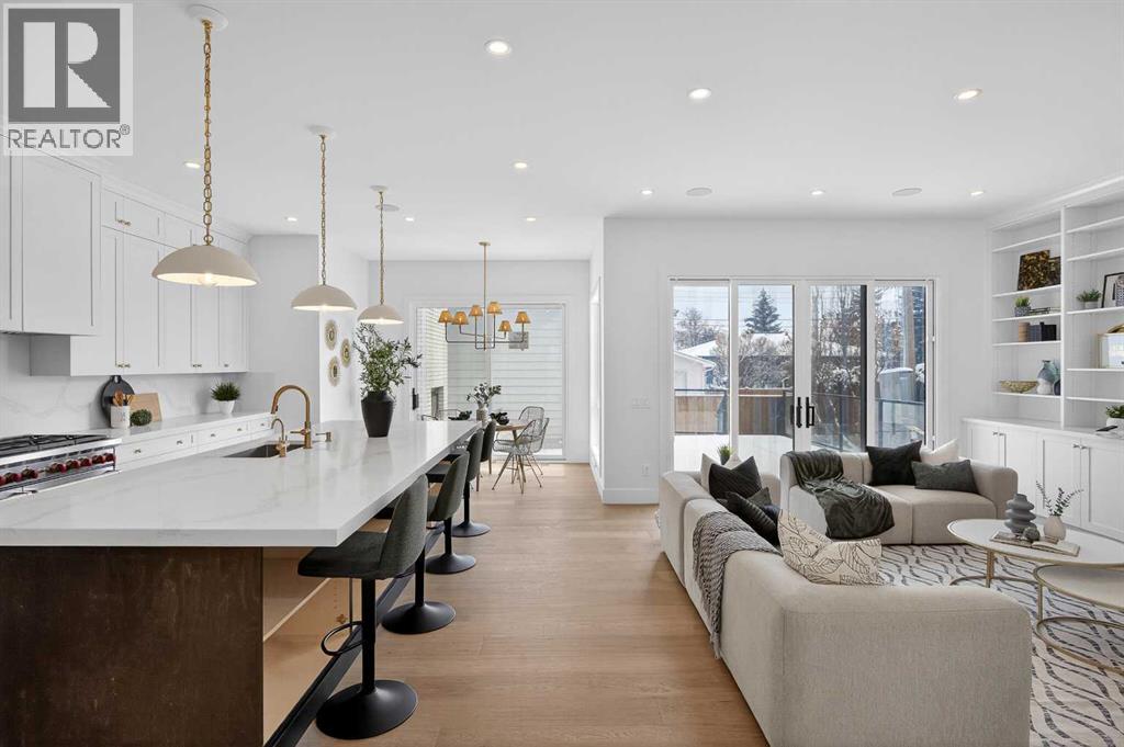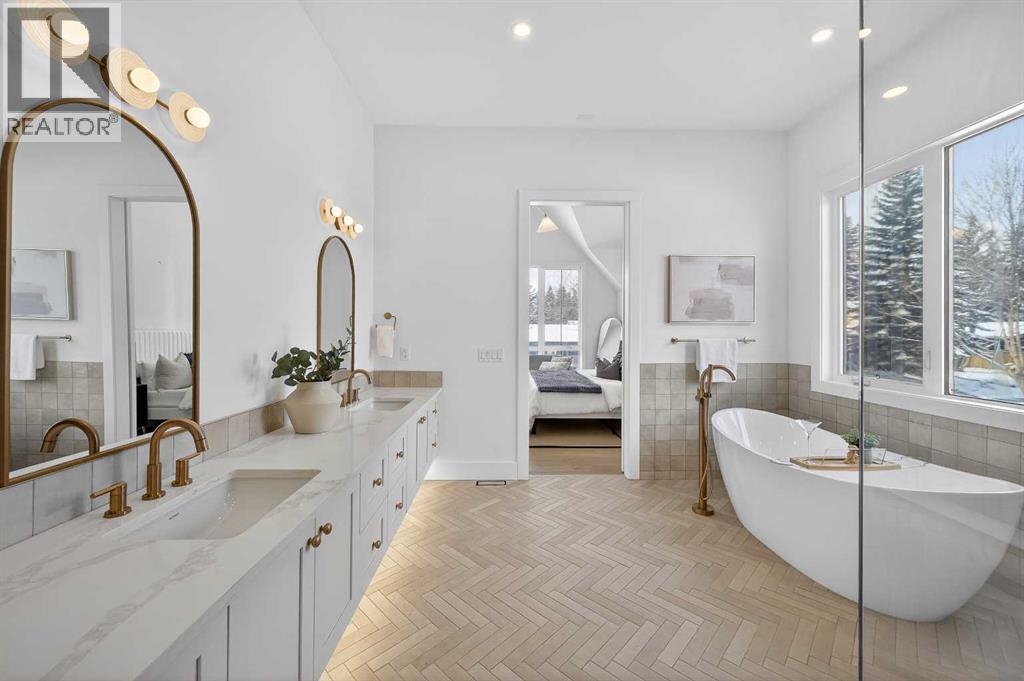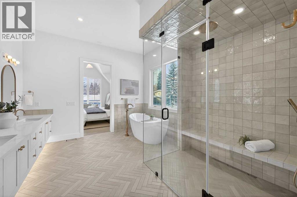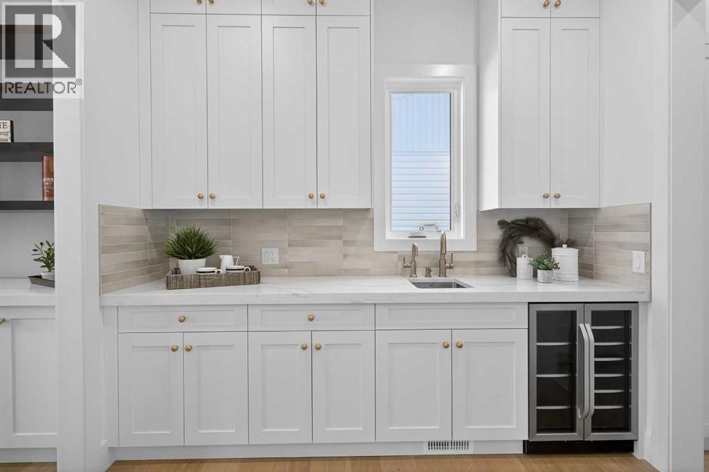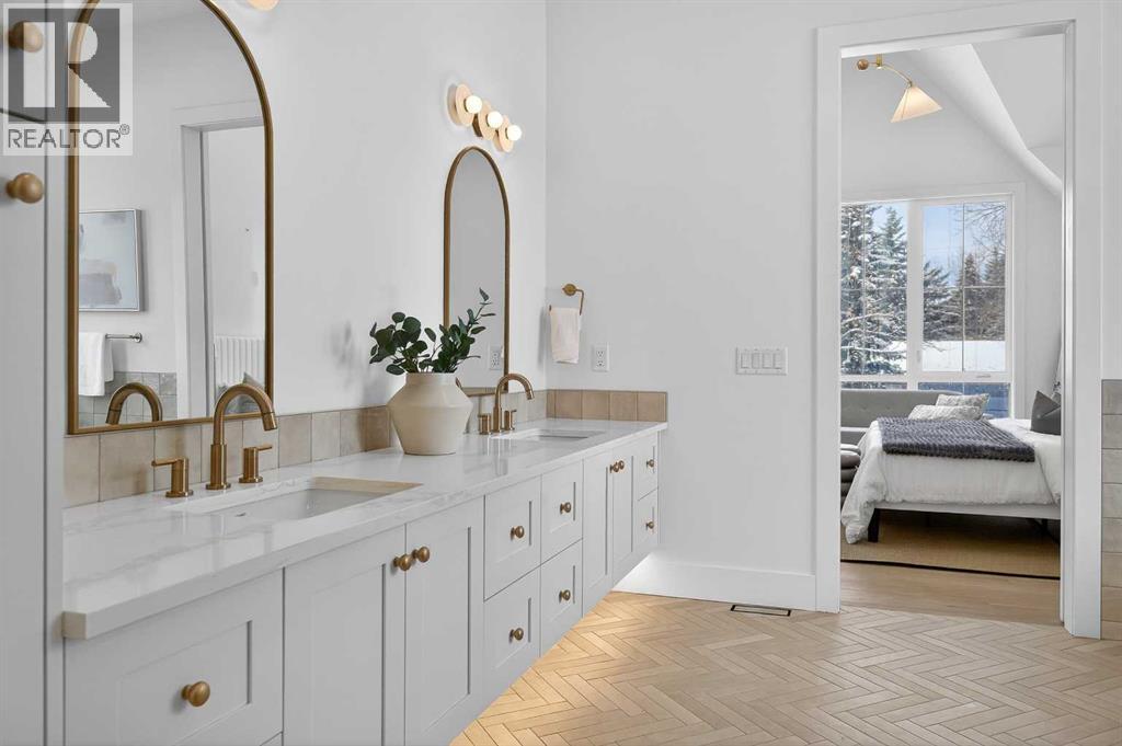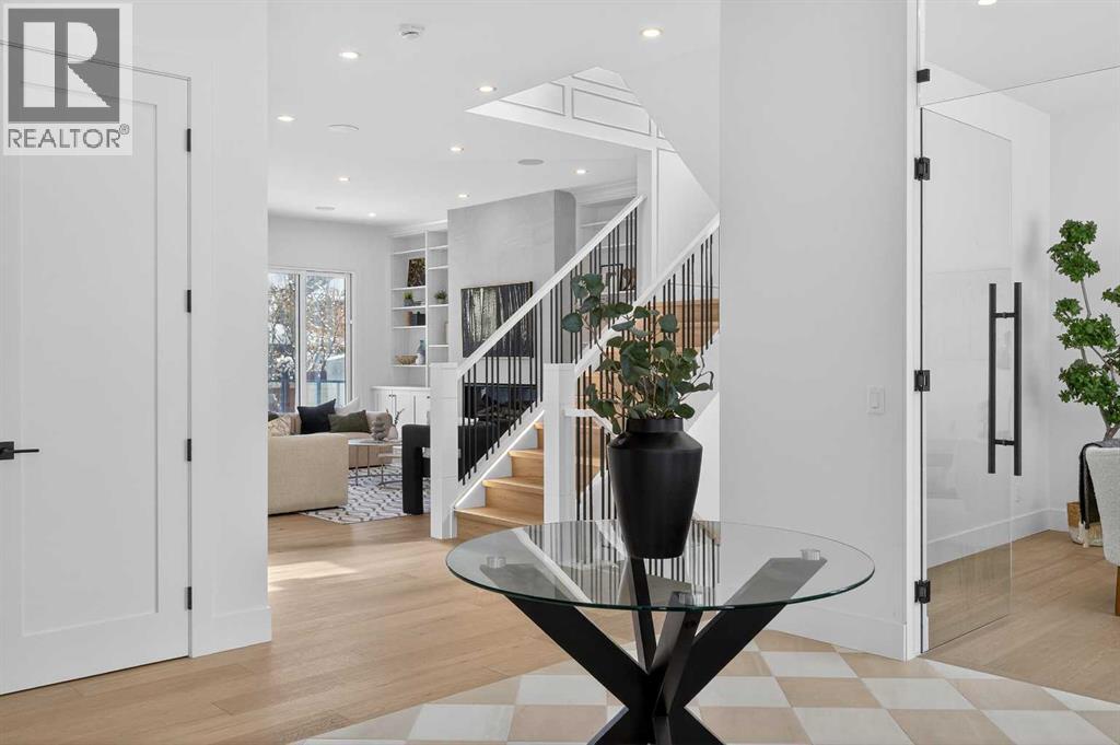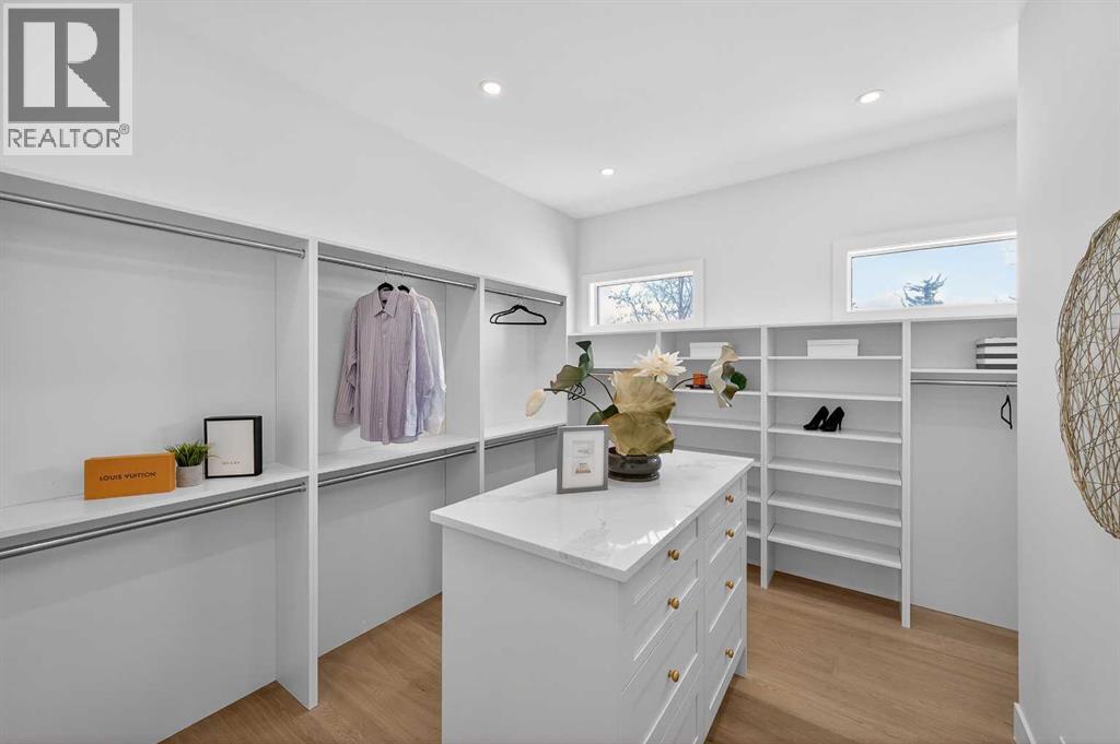 Introducing a stunning new-construction Modern Farmhouse estate that represents a sophisticated blend of transitional luxury and contemporary design. Captivating curb appeal is achieved through a striking neutral palette, a grand arched entryway, and an abundance of oversized, black-framed windows that create a dramatic, light-filled welcome. This residence boasts over 4,900 sq ft of total living space, including more than 3,300 sq ft on the upper levels, featuring 6 spacious bedrooms and 4.5 luxurious bathrooms. Experience true volume with 10-foot ceilings on the main and second levels, complemented by premium engineered hardwood flooring throughout the upper floors. The kitchen is a culinary masterpiece equipped with top-tier appliances, including a built-in Sub-Zero refrigerator and freezer, an 8-burner Wolf gas range, and a matching Wolf hood fan, while a dedicated butler’s pantry with a sink adds further convenience for entertaining.The upstairs Primary Suite serves as a private sanctuary featuring a vaulted ceiling and a bespoke walk-in closet with a central island. The spa-like ensuite offers the ultimate in comfort with heated floors finished in a stunning herringbone pattern tile. For ultimate family convenience, every secondary bedroom on the second floor also includes its own private washroom and walk-in closet. The expansive lower level significantly extends the living space and features heated floors throughout for year-round comfort. This basement includes three additional spacious bedrooms, a luxurious 5-piece bathroom, and an incredible recreation area complete with a sprawling family room and a full bar, perfectly appointed for movie nights or hosting guests.Engineered for peak efficiency and performance, this home features the newest technology NTI boiler furnace integrated with flexible duct vent technology. The highly functional features continue with a cozy gas fireplace in the living room and a second gas fireplace located outside on the co ncrete patio for elegant outdoor entertaining. The main floor also includes a functional mudroom and a dedicated dog wash area, proving that this house truly has it all. Situated in prestigious Lakeview SW, this estate is surrounded by mature trees and offers phenomenal connectivity, located less than a 15-minute drive from Downtown Calgary. It is minutes away from Mount Royal University and Rockyview General Hospital, with immediate access to North Glenmore Park and elite Golf Clubs. This home sets a new standard for move-in-ready, transitional luxury living. An opportunity not to be missed—call your favorite realtor today to book a private showing. The lockbox is hanging on the pole directly in front of the house for easy access. (id:51989)