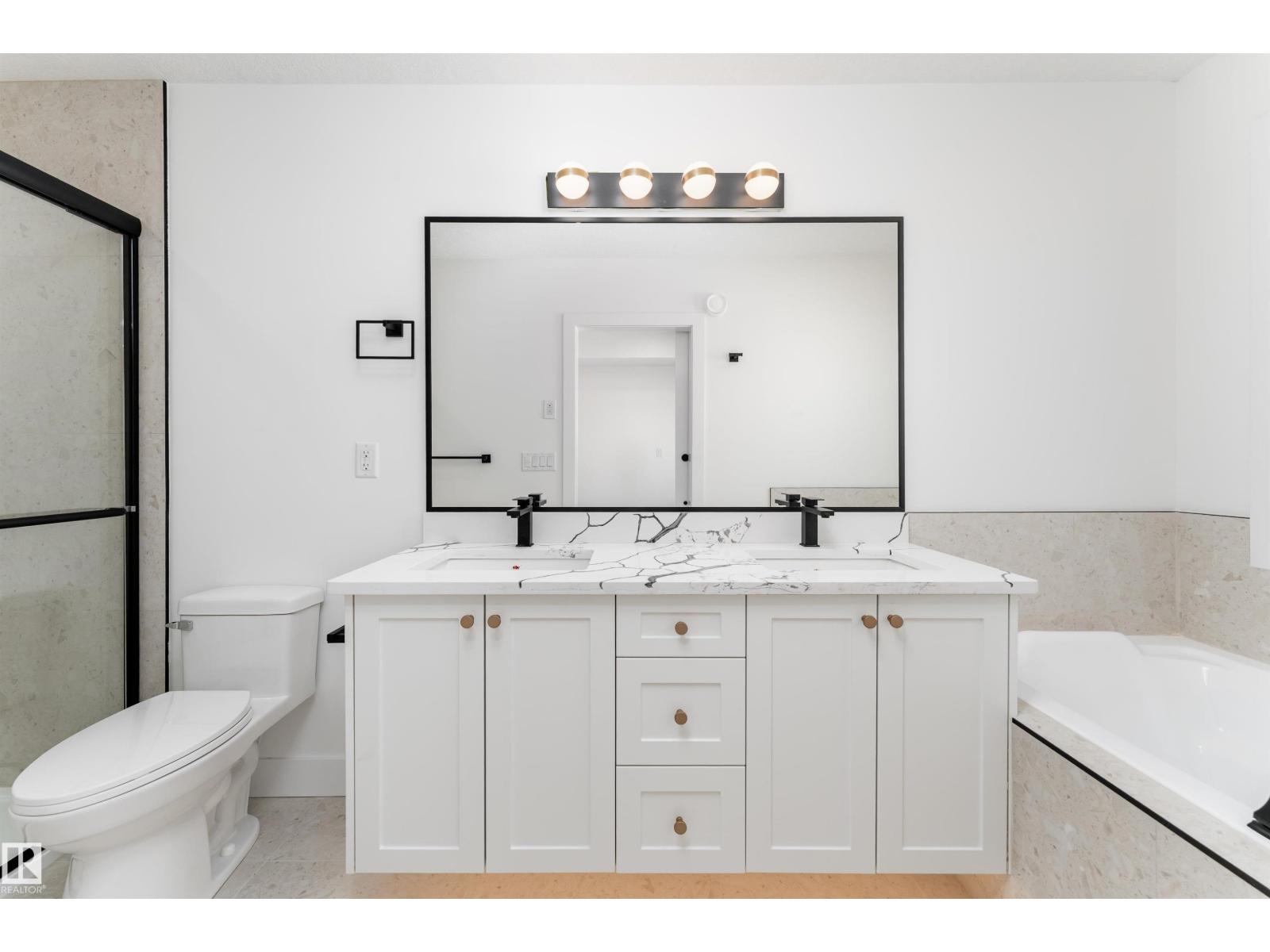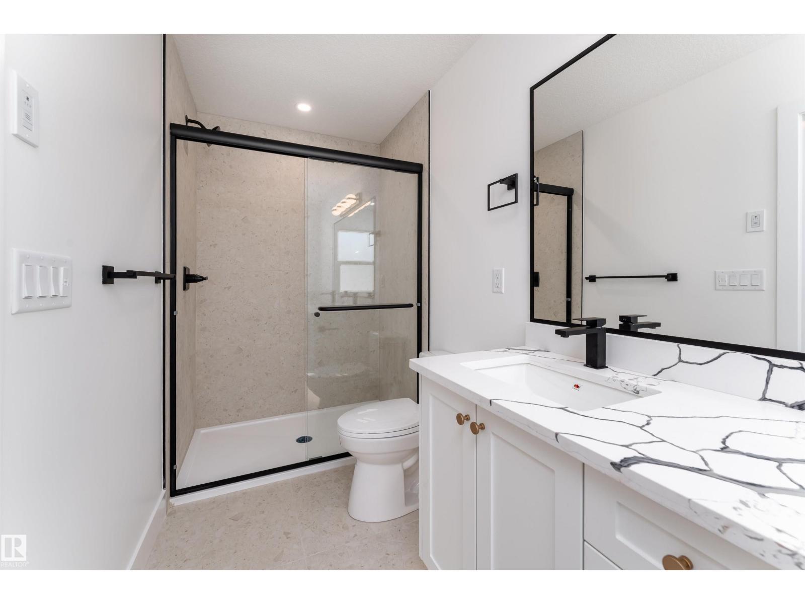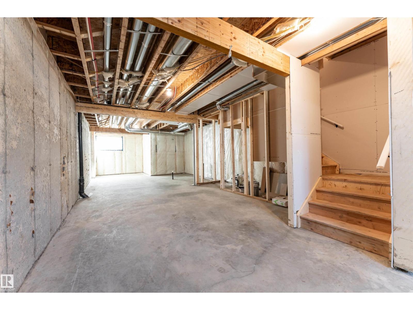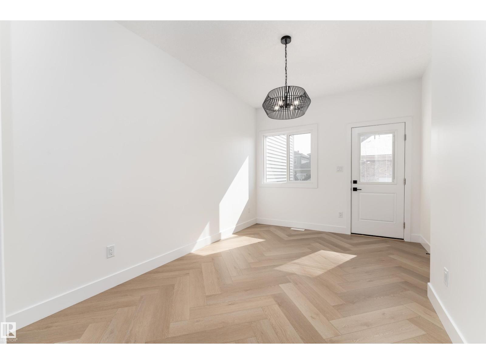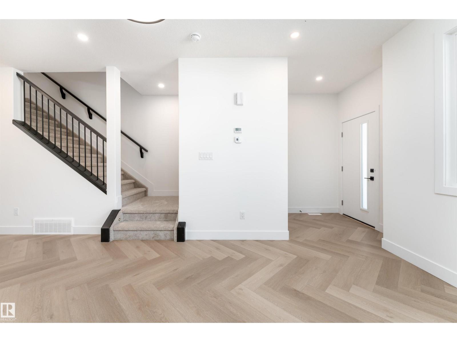 Thoughtfully designed and move in ready, this 1,750 sq ft 2025 built half duplex is located in the growing community of Starling. The main floor offers an airy open layout with 9 ft ceilings, durable vinyl flooring, and large windows that fill the space with natural light. A beautifully finished floor to ceiling tiled electric fireplace creates a warm focal point in the living area. The kitchen features modern white cabinetry, warm wood tone accents, and a generous island, making it both functional and inviting. Upstairs you will find three well sized bedrooms, including a comfortable primary suite with walk in closet and private ensuite, along with upper floor laundry. The unfinished basement with a separate side entrance allows for excellent future development potential. Complete with a double detached garage and conveniently located near parks, walking trails, ponds, schools, shopping, and quick access to Anthony Henday and Yellowhead. (id:51989)