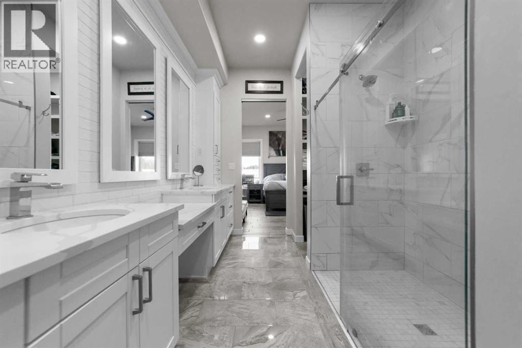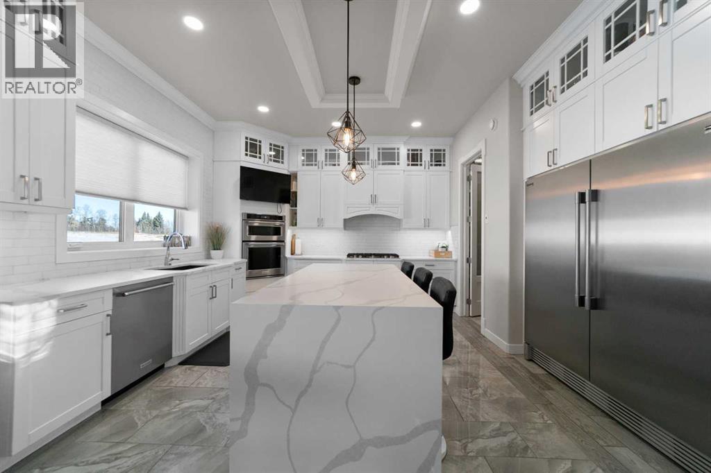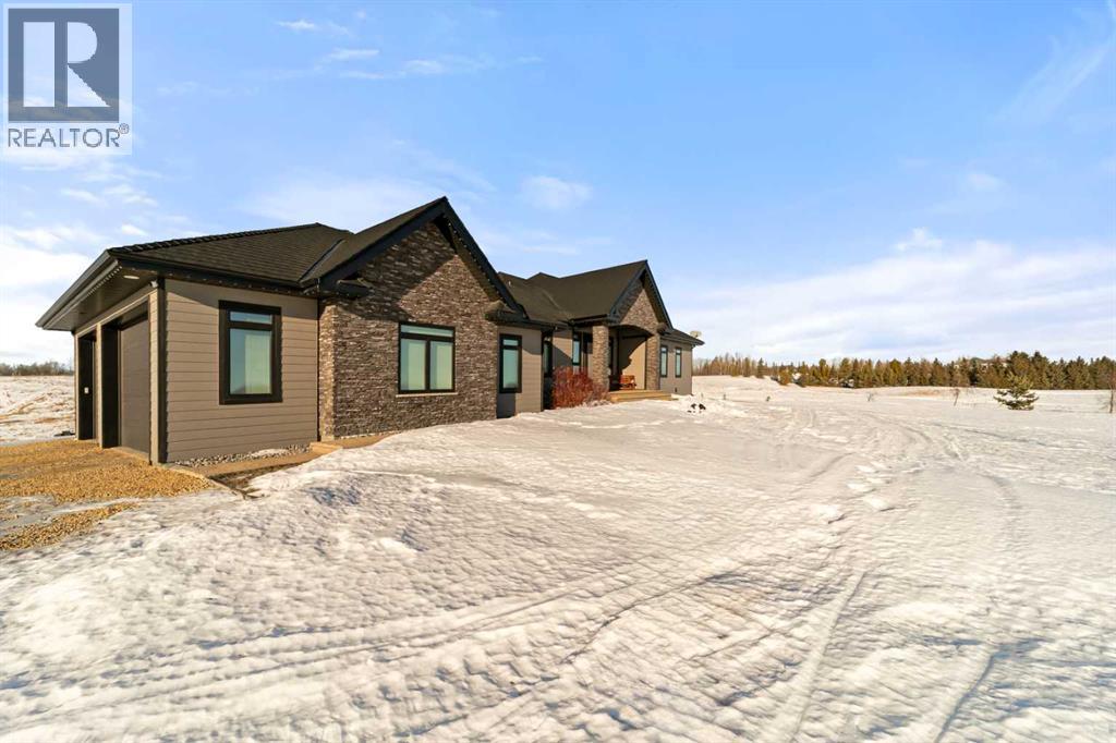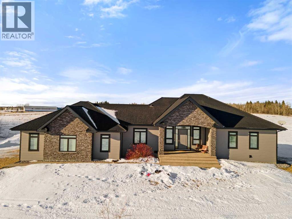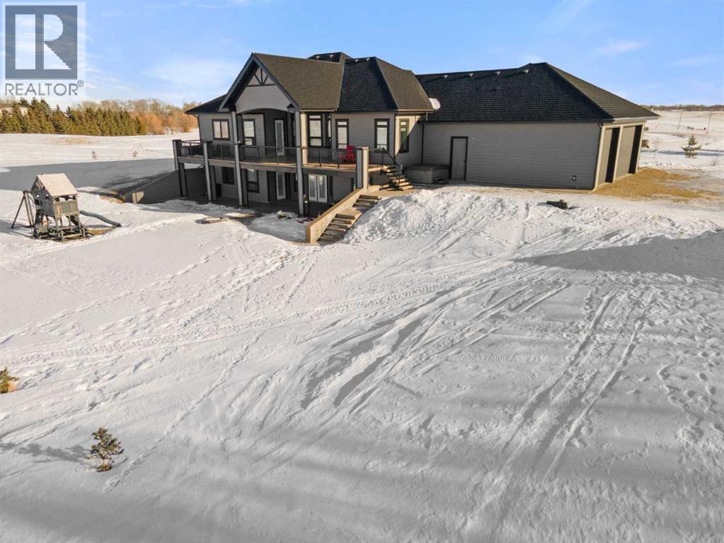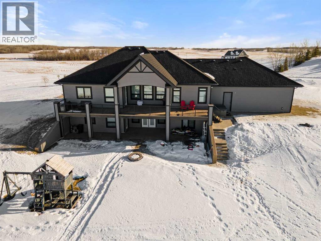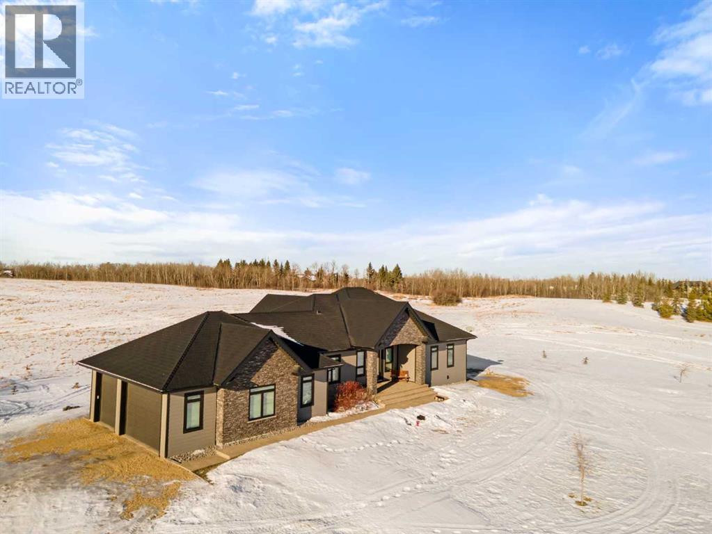 Tucked away in McNary Estates just 10 minutes from Camrose, this one-of-a-kind custom-built home offers the perfect blend of luxury, efficiency, and peaceful country living on 1.45 acres. Built with quality and longevity in mind, this property features an ICF foundation from basement to roof, durable Hardie board siding, and a 50-year Euroshield rubber roof. Inside, you’ll find an expansive open-concept layout with soaring 12’ ceilings, triple pane windows, and in-floor heating throughout the entire home and garage, powered by a new boiler (October 2025) and supported by an HRV system for year-round comfort. The chef-inspired kitchen is truly the heart of the home, complete with an industrial-sized fridge/freezer, gas cooktop, oven, and a massive walk-in pantry with a built-in coffee bar. The living room offers custom built-in storage and a warm, inviting atmosphere perfect for entertaining or relaxing with family. The main floor features a spacious primary retreat with a walk-in closet and a luxurious ensuite boasting dual shower heads. Two additional bedrooms (both with walk-in closets), a full 4-piece bathroom and convenient main floor laundry with built-in shelving complete this level. Downstairs, the fully developed basement offers exceptional versatility, including a large family room with wet bar, a bedroom with walk-in closet and a home gym (also with walk-in closet). The basement also features a full second kitchen. Step outside and enjoy the privacy of country living with a maintenance-free deck, outdoor fireplace, hot tub and play set. The property is serviced by a great well and septic mound system. This thoughtfully designed, energy-efficient home checks all the boxes and offers a rare opportunity to own a truly unique property in a desirable location. (id:51989)