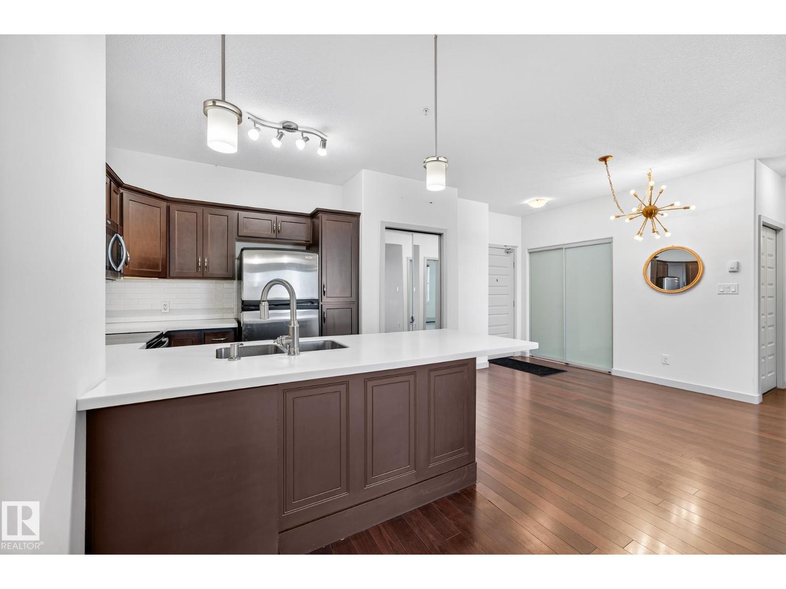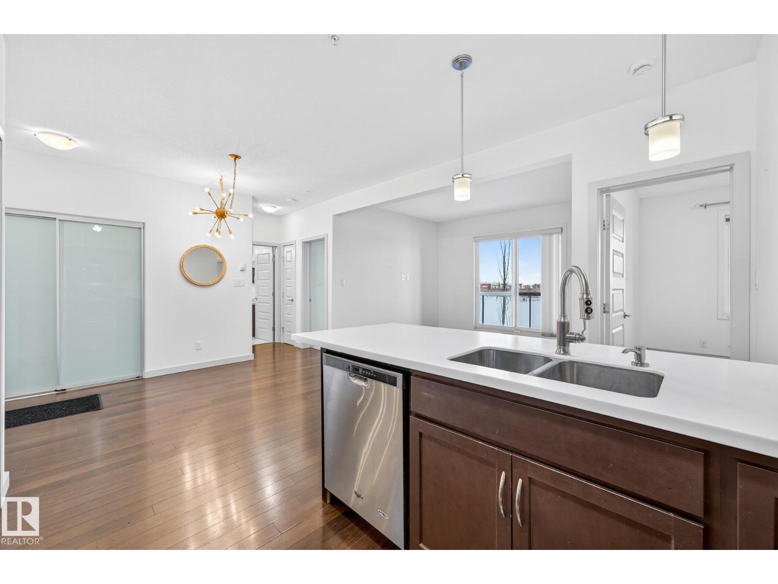 This well-designed third-floor condo is located in the desirable Ambleside community and offers a functional, open-concept layout. Upon entry, you are welcomed by a spacious foyer that flows seamlessly into the kitchen, dining, and living areas, creating a bright and connected main living space. The kitchen features ample cabinetry and counter space and overlooks the dining area, while the adjacent living room provides a comfortable place to relax or host guests. The primary bedroom is thoughtfully positioned for privacy and includes a walk-in closet and a private ensuite. A second bedroom is located on the opposite side of the unit, conveniently situated near the main bathroom, making it ideal for guests, a home office, or shared living. Additional highlights include a den, in-suite laundry, heated underground parking and a dedicated storage room within the unit. Situated in a well-maintained building close to amenities, transit, parks, and walking trails. (id:51989)
