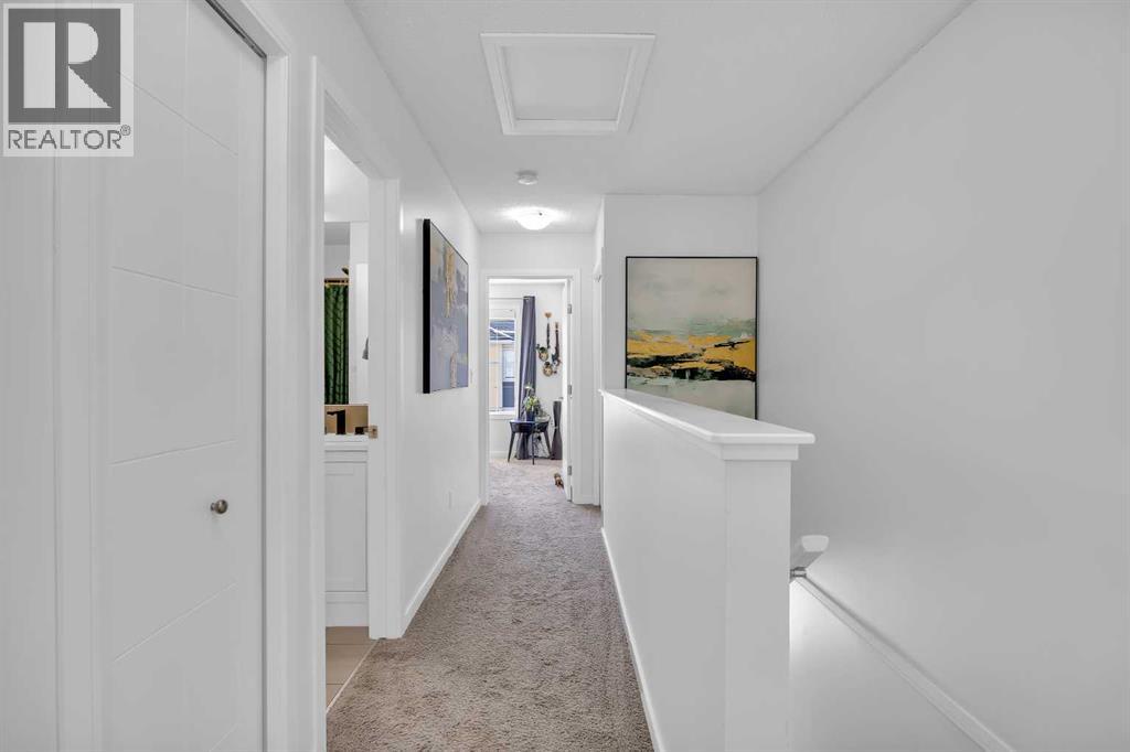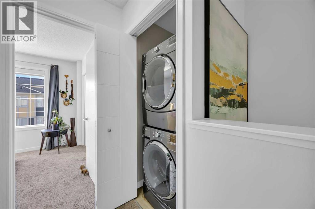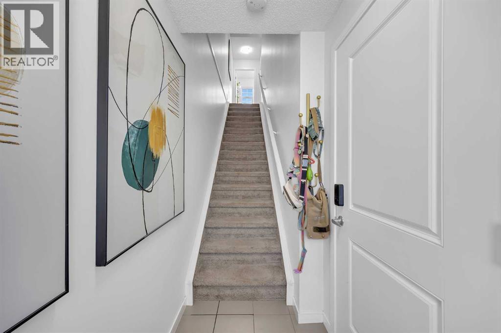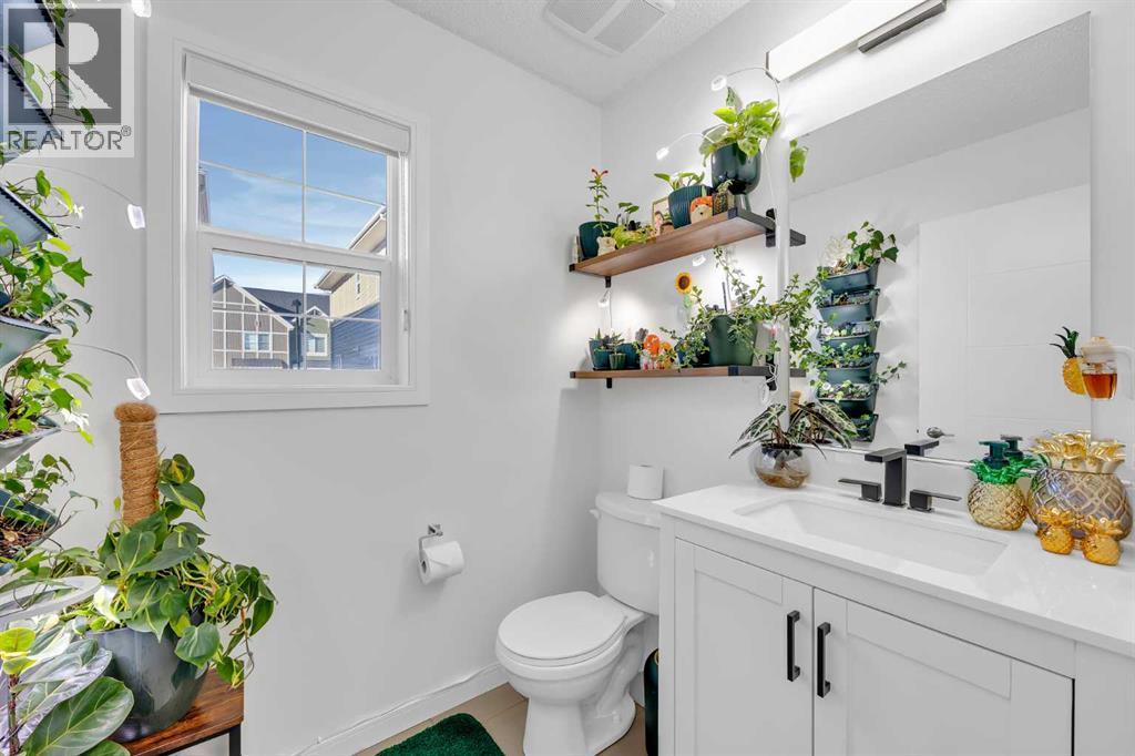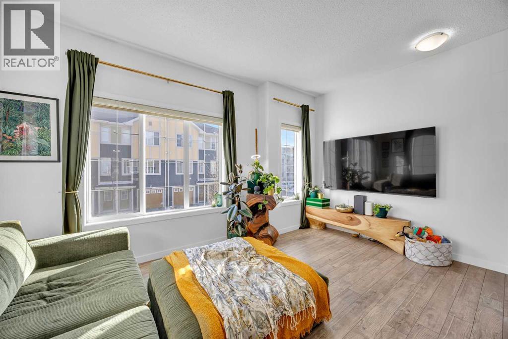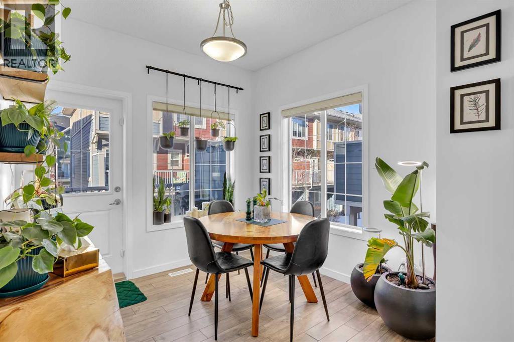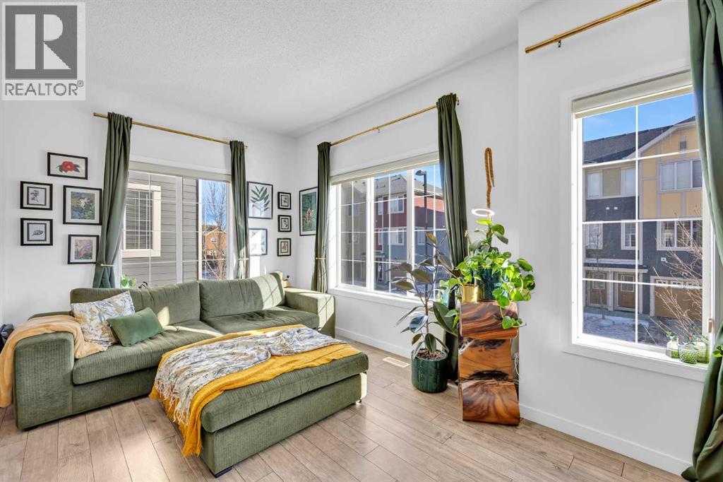 Welcome to this bright and well maintained corner unit townhouse located in the sought after lake community of Mahogany. Offering 3 bedrooms, 2.5 bathrooms, central air conditioning, and over 1,200 sq ft of living space, this home combines a functional layout with excellent natural light thanks to its end unit location.The main floor features an open concept design with a spacious living room, dedicated dining area, and a modern kitchen complete with quartz countertops, stainless steel appliances, mosaic tile backsplash, and a large island with seating. The dining area provides direct access to the balcony, making it easy to enjoy summer BBQs or relax outdoors. A convenient 2 piece bathroom is also located on this level.Upstairs you will find three bedrooms including the primary bedroom with a walk in closet and private 4 piece ensuite. Two additional bedrooms, another full bathroom, and upper level laundry add to the practical layout of the home. Parking is a standout feature with a double tandem attached heated garage plus driveway parking, providing space for multiple vehicles along with extra storage. The home also includes central air conditioning for added comfort during Calgary’s warmer months. Located in Ebony Townhomes, the complex offers visitor parking, landscaped green spaces, and courtyards. Residents also enjoy access to Mahogany’s private lake, along with nearby parks, pathways, schools, shopping, and restaurants.A great opportunity to own a corner unit townhouse in one of Calgary’s most desirable lake communities. (id:51989)