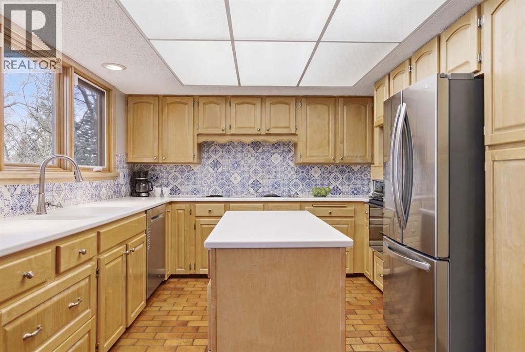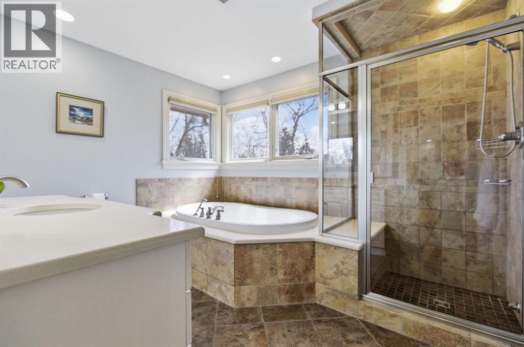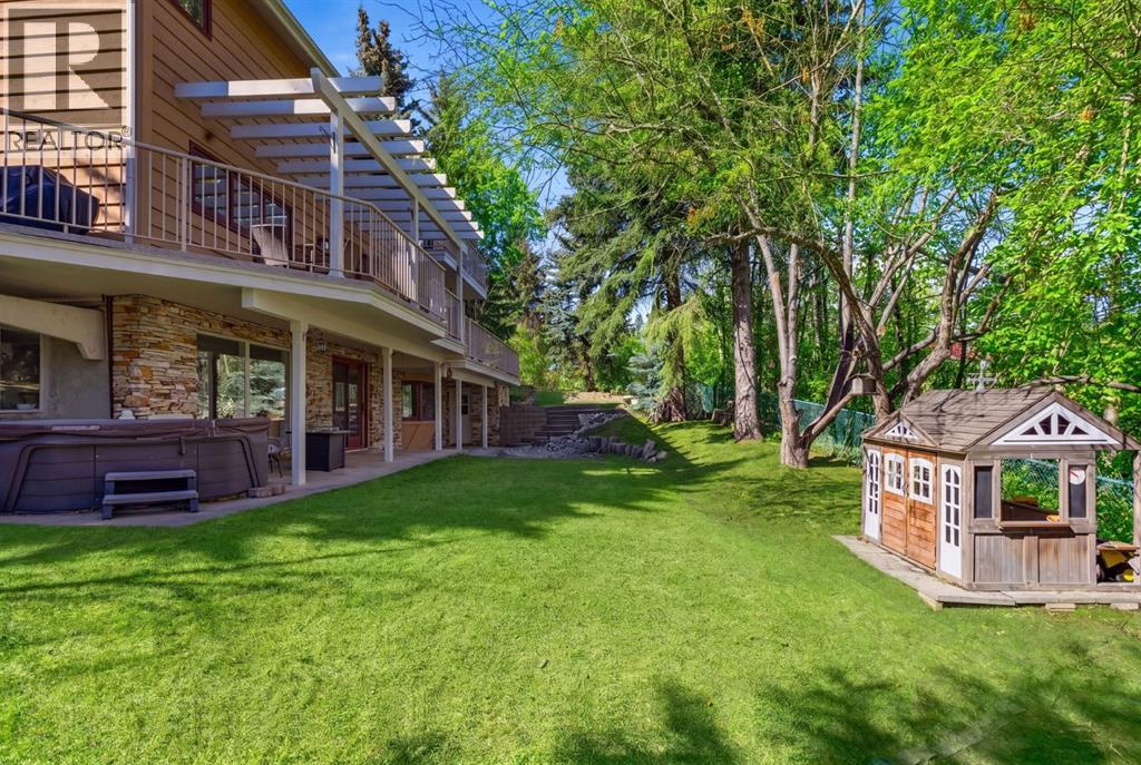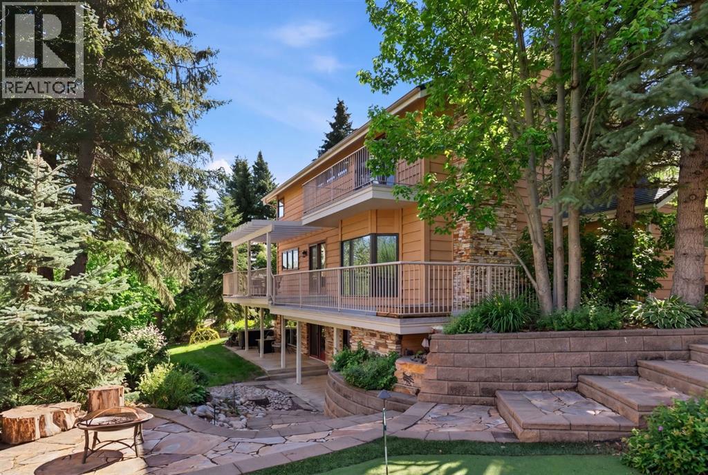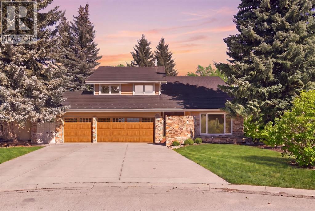 Opportunities like this are exceptionally rare in the prestigious community of Varsity Estates. Beautifully landscaped with mature trees and backing directly onto the Silver Springs Golf Course fairway and a stunning treed ravine area, this exceptional property offers a level of privacy and natural beauty rarely found in the city. The home has been lovingly maintained through the years and offers an amazing chance to secure a stunning location in this elite community Tucked away on a quiet cul-de-sac, creating a peaceful setting that feels worlds away while remaining close to every city convenience.Set on an expansive pie-shaped lot that offers over 10,000 sq ft with an impressive 150-foot wide rear yard, this property delivers both space and seclusion. Stunning stone work and mature landscaping surrounds the home, while the private backyard offers multiple areas to relax, entertain, and enjoy the space, including your very own putting green. It is a setting that is incredibly hard to replicate in Calgary.Inside, the spacious two story home delights with over 2500 sq ft of above grade sq ftg and a bright and functional layout designed for family living. Large windows throughout fill the space with natural light and perfectly frame the surrounding greenery. Soaring cathedral ceilings create an airy first impression, while the main rooms provide ample space for everyday living and entertaining alike.The upper level features four bedrooms, an increasingly hard-to-find layout making this an ideal home for growing families. The fully developed walkout basement adds more additional living space with a spacious family room with fireplace and bar area overlooking the outdoor views and a flex room with large windows creating the perfect space for a games room or fitness area. This level offers a 2 pce powder room and sauna to relax and unwind in. There is opportunity for a 5th bedroom with the addition of an egress window. Whether hosting guests, creating a recreation zo ne, or simply enjoying extra room to spread out, this lower level offers exceptional flexibility.The home is completed with a triple attached heated garage, providing outstanding space for vehicles, storage, hobbies, or workshop needs. A 50 year Euroshied roof was installed in 2014, the furnaces were serviced in 2025 and several windows have been replaced over the years. This is an incredible opportunity to move in and enjoy or renovate to suit your family needs in this incredible location. The possibilities are endless. Varsity Estates is one of Calgary’s most established and sought-after communities, close to schools, parks, pathways, Market Mall, the University of Calgary, and major routes. This is a rare chance to secure a premier lot and an exceptional lifestyle. (id:51989)