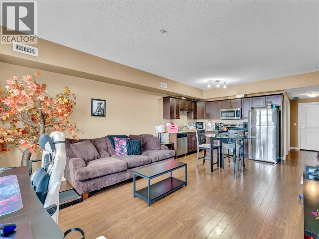 Welcome to easy, maintenance-free living in this well-appointed 3rd floor condo at #317–19 Terrace View NE. Offering 1 bedroom and a den, this functional layout includes a spacious primary suite with a walk-through closet and convenient access to the 4-piece Jack & Jill bathroom. The open concept main living area is bright and inviting, featuring a large living room, a generous dining space, and a well-equipped kitchen complete with maple cabinetry and stainless steel appliances—perfect for both everyday living and entertaining. Additional highlights include in-suite laundry, a private covered deck to enjoy your morning coffee or evening unwind, plus one underground parking stall with a dedicated storage space. This pet-friendly building (with restrictions) has no age restrictions, making it an excellent fit for first-time buyers, downsizers, or investors alike. Condo fees of $315.88/month cover all utilities and maintenance—including electricity, heat, water, sewer, trash, snow removal, groundskeeping, parking, and reserve fund contributions—offering truly worry-free living. A fantastic opportunity to own a comfortable and convenient home in a great location! (id:51989)
