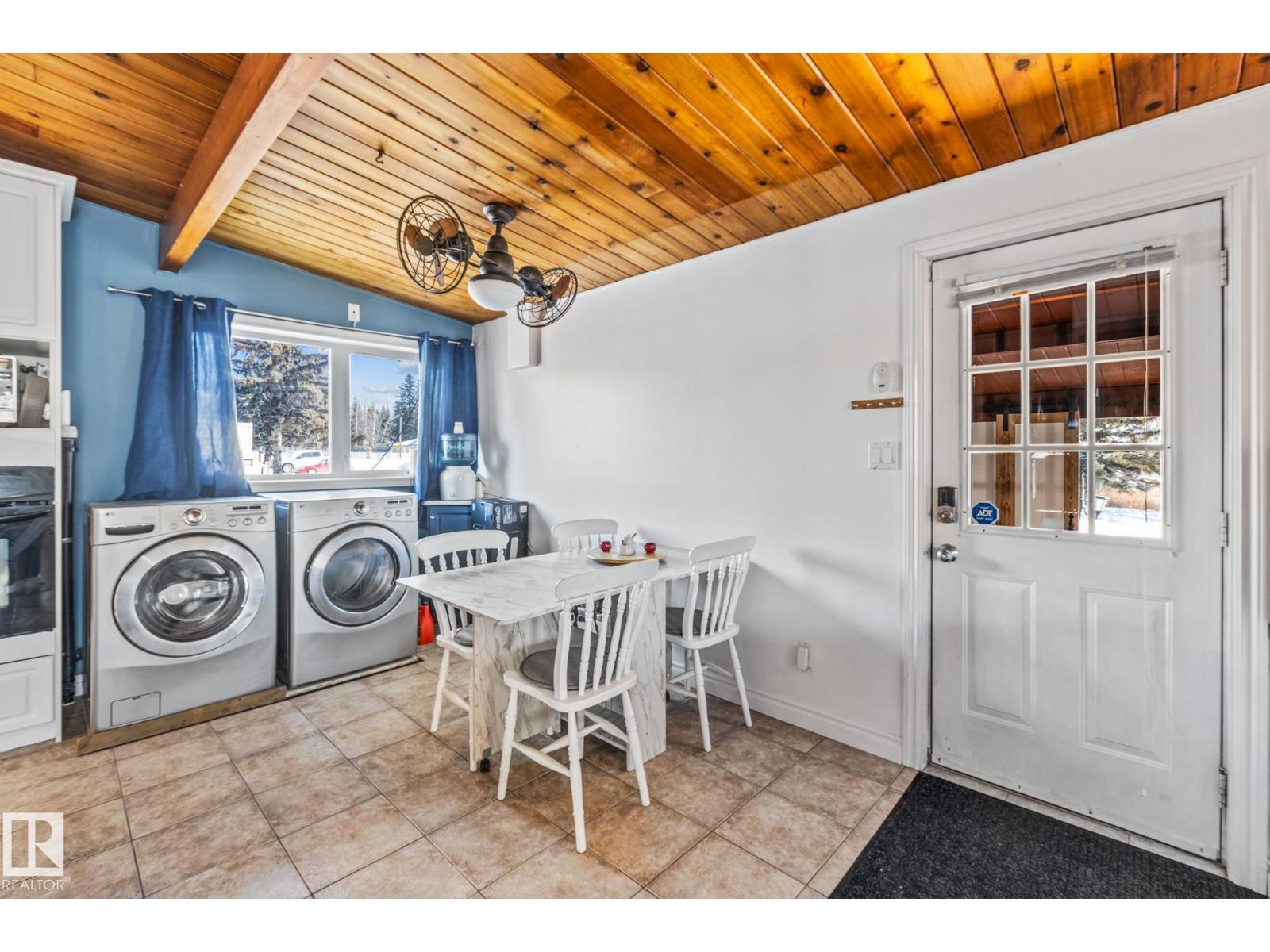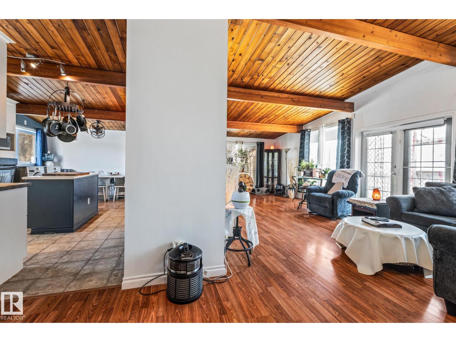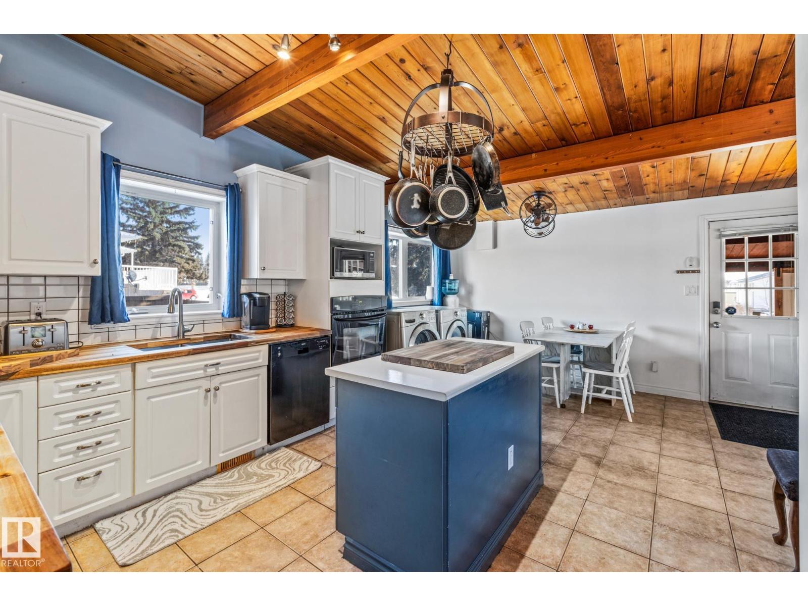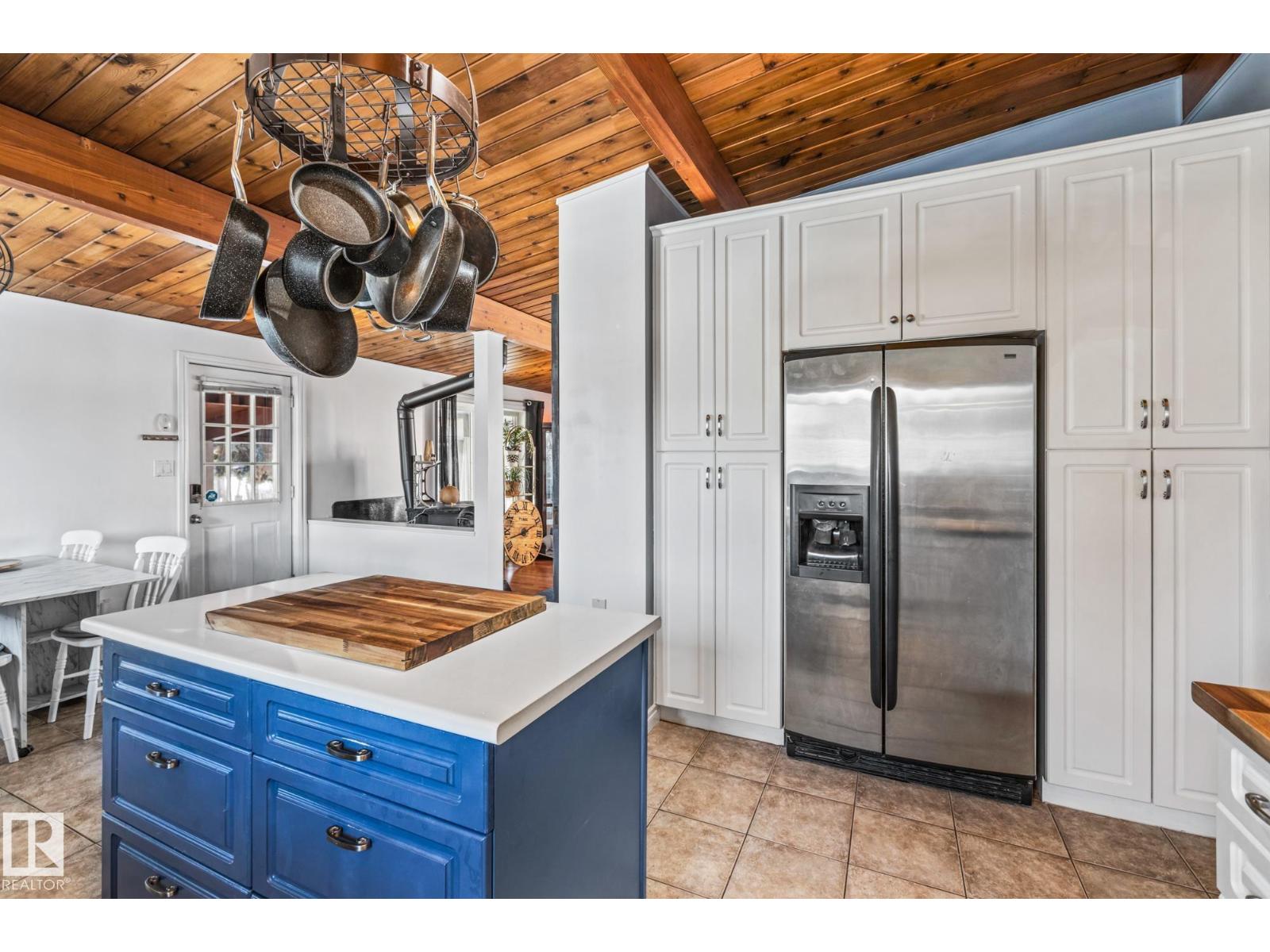 Escape the city and discover peaceful country living in Ferintosh, just 20 minutes from Camrose. Set on a spacious double lot, this beautifully refurbished bungalow was redesigned in 2015 with a new foundation, allowing for large windows and an abundance of natural light throughout. Inside, the vaulted ceiling with open beams creates a warm, inviting feel and adds character to the main living space. Thoughtful upgrades blend comfort, efficiency, and style, while two laundry areas, upstairs and downstairs, add everyday convenience. The fully developed lower level offers flexible space ideal for a home-based business, guests, or additional family living. Outside, enjoy your own private prairie retreat with a lush garden, cozy firepit area, and an incredible outdoor kitchen featuring a commercial gas range, counters, and sink, perfect for entertaining under the open sky. Complete with a durable torched roof and located minutes from Little Beaver Lake for fishing, walking, and weekend adventures. (id:51989)