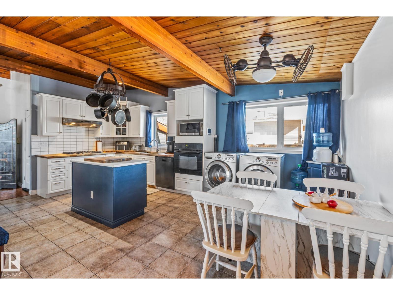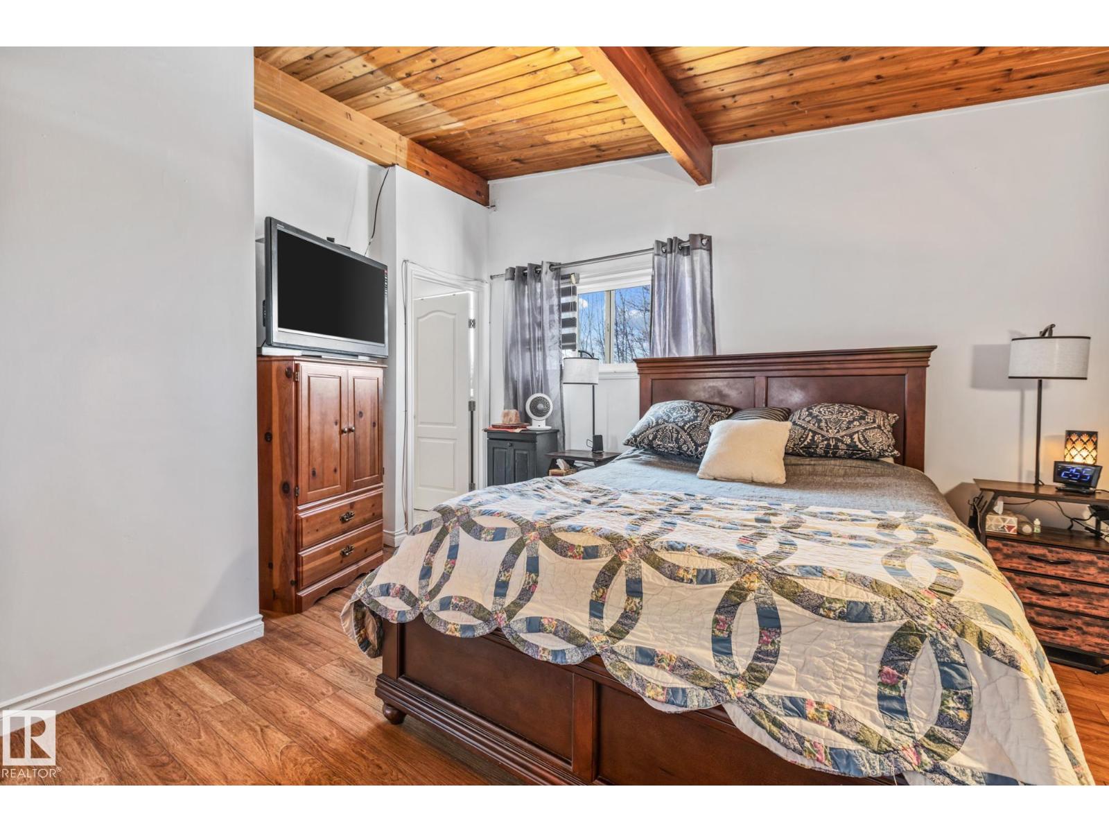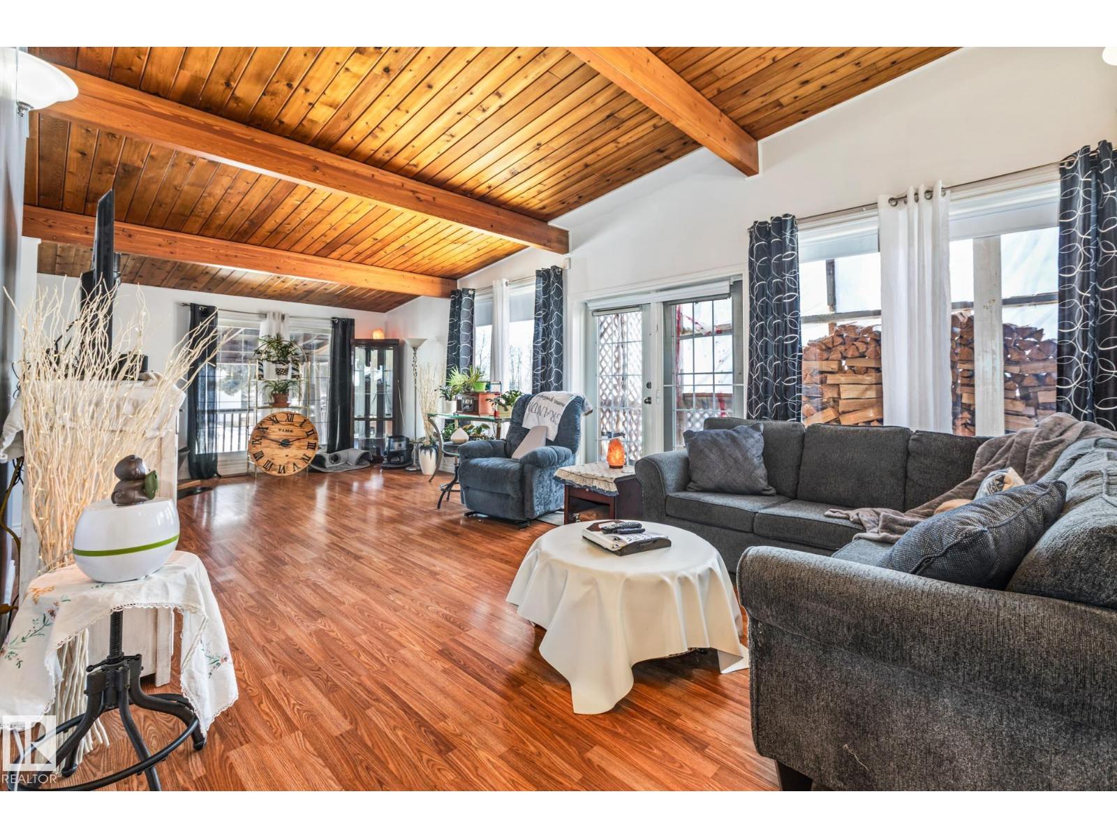Escape the city and discover peaceful country living in Ferintosh, just 20 minutes from Camrose. Set on a spacious double lot, this beautifully refurbished bungalow was redesigned in 2015 with a new foundation, allowing for large windows and an abundance of natural light throughout. Inside, the vaulted ceiling with open beams creates a warm, inviting feel and adds character to the main living space. Thoughtful upgrades blend comfort, efficiency, and style, while two laundry areas, upstairs and downstairs, add everyday convenience. The fully developed lower level offers flexible space ideal for a home-based business, guests, or additional family living. Outside, enjoy your own private prairie retreat with a lush garden, cozy firepit area, and an incredible outdoor kitchen featuring a commercial gas range, counters, and sink, perfect for entertaining under the open sky. Complete with a durable torched roof and located minutes from Little Beaver Lake for fishing, walking, and weekend adventures. (id:51989)