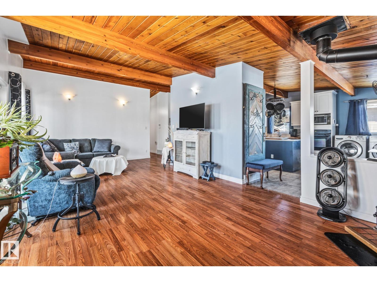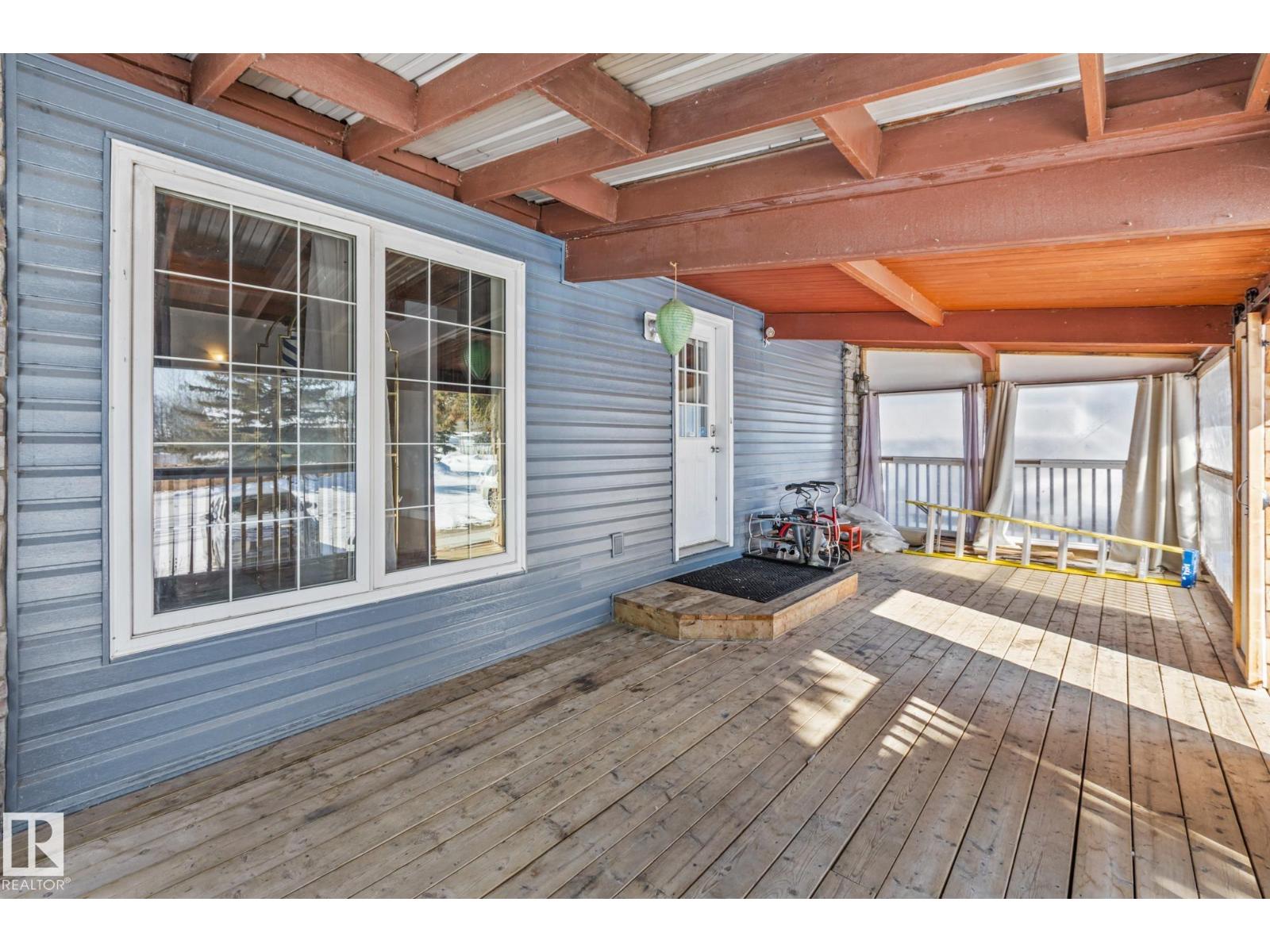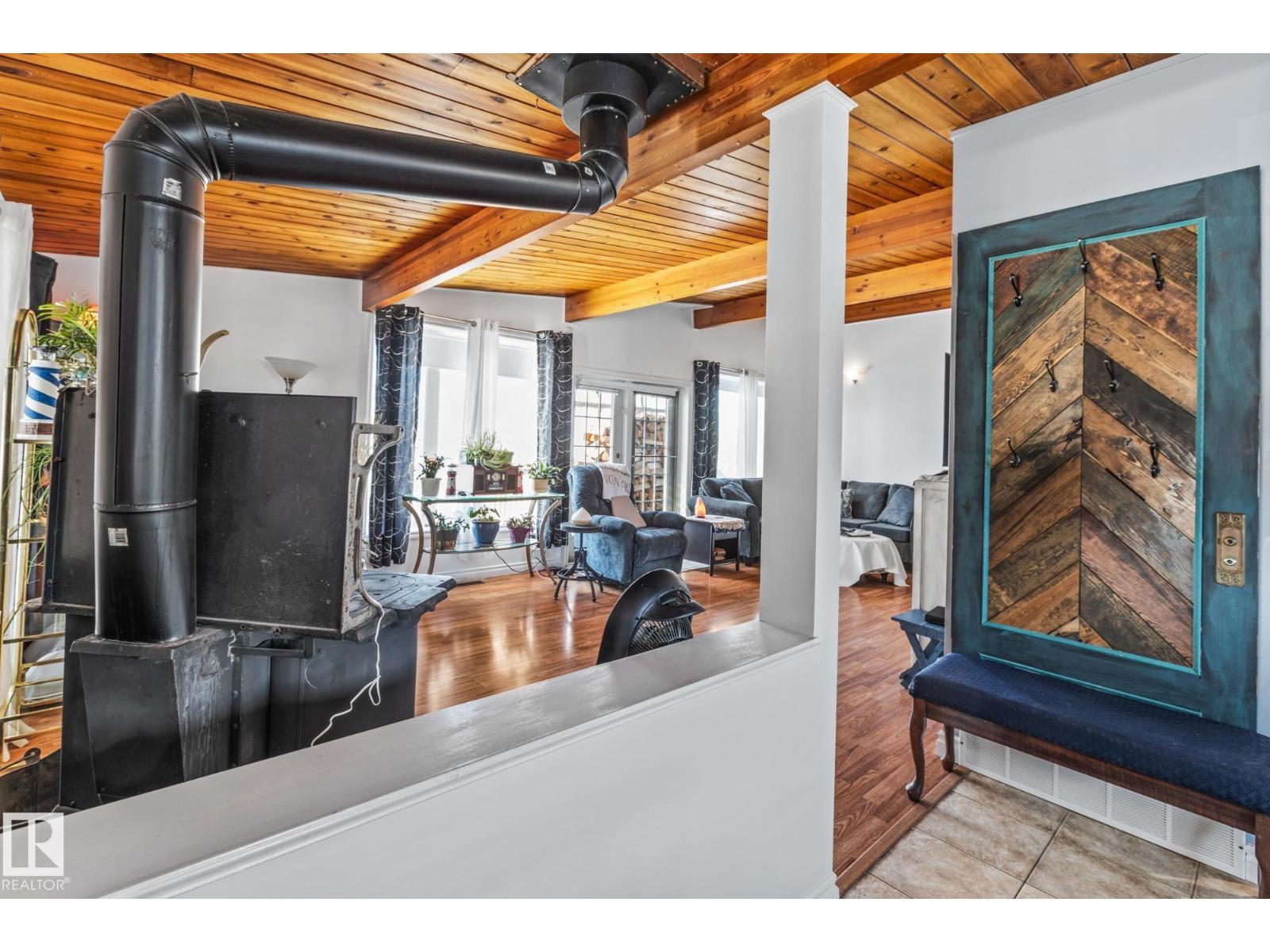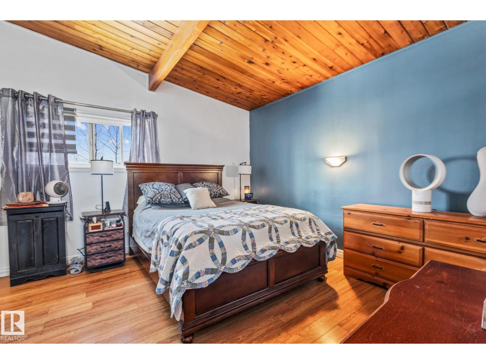 Escape the city and discover peaceful country living in Ferintosh, just 20 minutes from Camrose. Set on a spacious double lot, this beautifully refurbished bungalow was redesigned in 2015 with a new foundation, allowing for large windows and an abundance of natural light throughout. Inside, the vaulted ceiling with open beams creates a warm, inviting feel and adds character to the main living space. Thoughtful upgrades blend comfort, efficiency, and style, while two laundry areas, upstairs and downstairs, add everyday convenience. The fully developed lower level offers flexible space ideal for a home-based business, guests, or additional family living. Outside, enjoy your own private prairie retreat with a lush garden, cozy firepit area, and an incredible outdoor kitchen featuring a commercial gas range, counters, and sink, perfect for entertaining under the open sky. Complete with a durable torched roof and located minutes from Little Beaver Lake for fishing, walking, and weekend adventures. (id:51989)