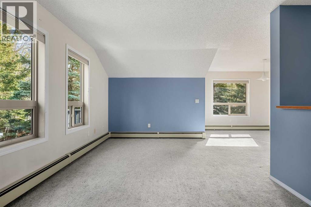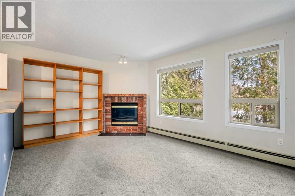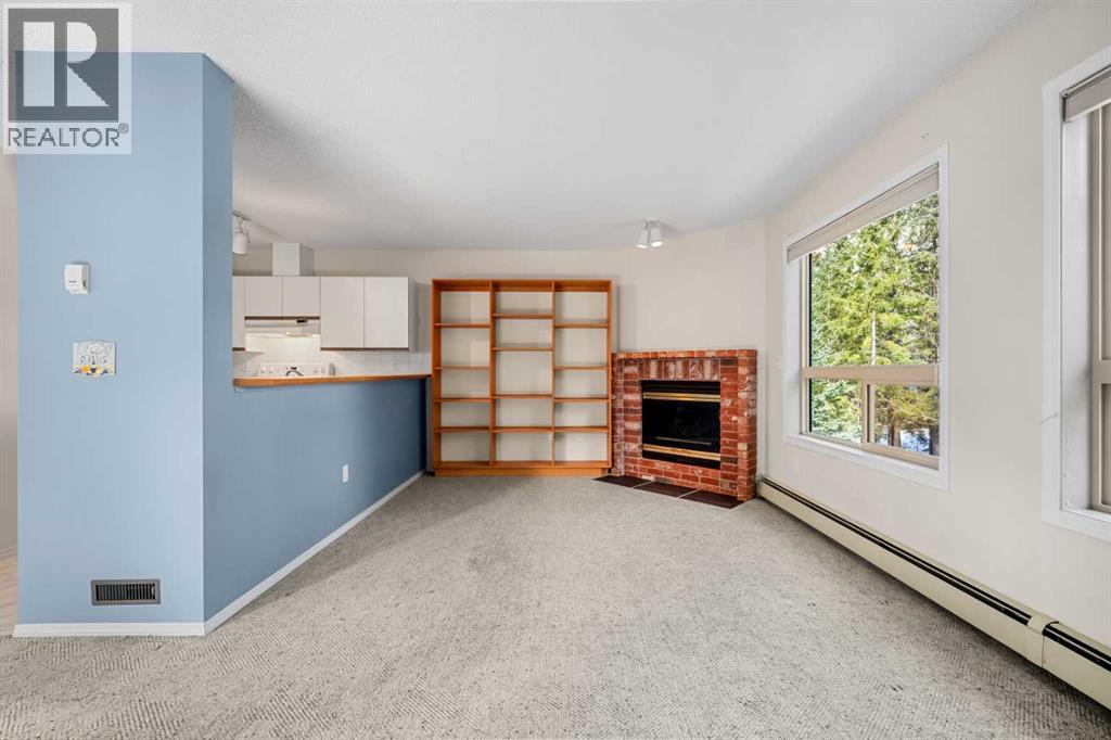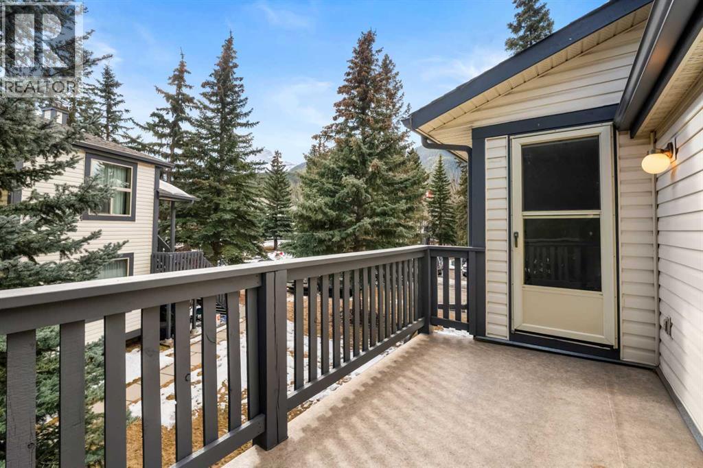 Welcome to this bright top floor condo in the Pigeon Creek complex in Dead Man's Flats. Surrounded by mature trees and mountain views, this home offers a peaceful setting just minutes from Canmore. This second floor unit has no neighbours above and features two bedrooms, one bathroom, a gas fireplace, and a private balcony with a gas BBQ hookup. There is storage area within the building and condo fees conveniently include heat, water, and gas. Located just five minutes from the new Gateway at Three Sisters commercial district, you will soon enjoy easy access to groceries, shops, and everyday amenities without needing to head into town. This is a great opportunity to enter the Bow Valley market. (id:51989)