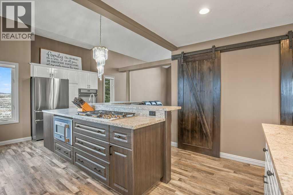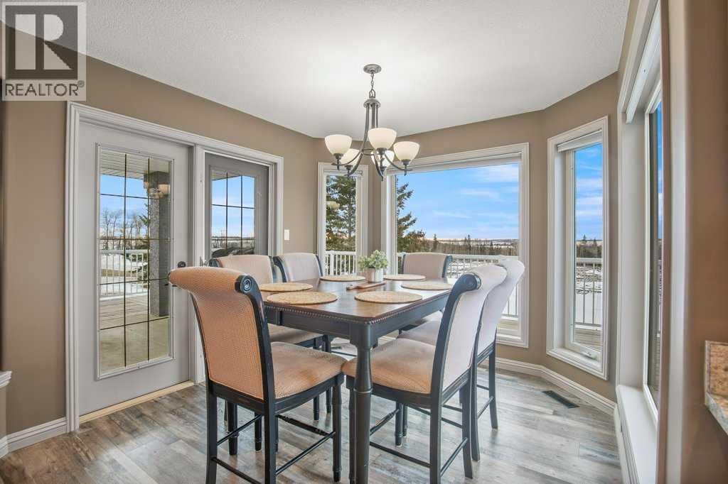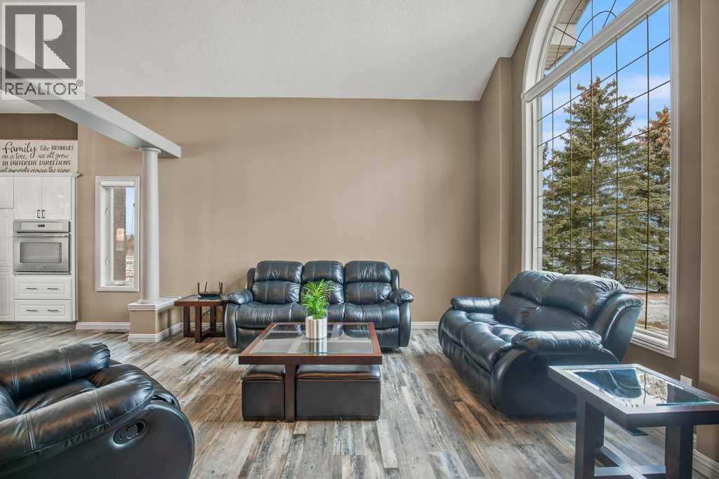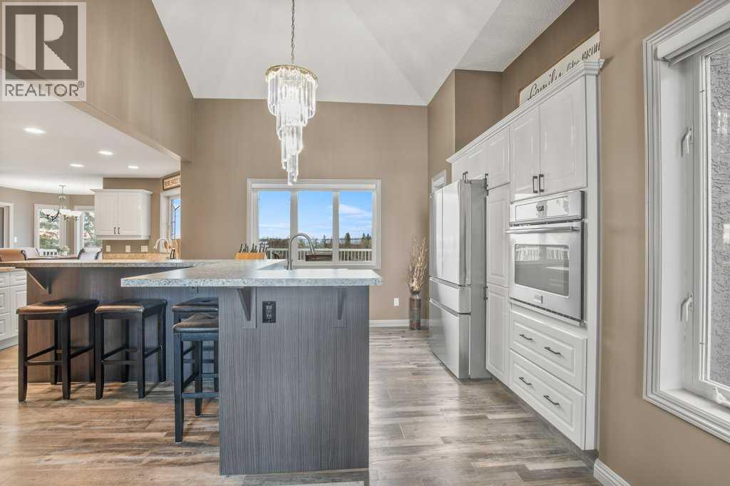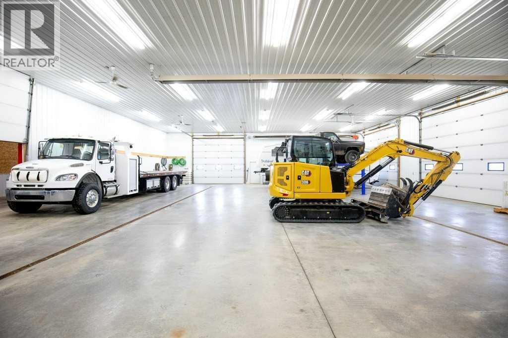 Welcome to this outstanding 80-acre gated agricultural property offering a rare blend of comfortable country living, income potential, and exceptional infrastructure. The land includes approximately 38 acres of farmable land and 15 acres of pasture, with the pasture currently rented to a neighboring farmer. Fully fenced and well-set up for horses, the property features corrals, waterers, hydrants, horse shelters, a tack room, and several outbuildings. Two wells service the property, and there are two oil leases generating ongoing revenue.The well-built two-story home, constructed in 1996, features a walkout basement and an expansive wrap-around deck showcasing breathtaking views. Inside, you’ll find vaulted ceilings, a sunken living room with elegant pillars, a gas fireplace, and a beautifully upgraded kitchen with a large island. The dining area opens directly to the deck, making it ideal for entertaining. Additional highlights include main-floor laundry and a double attached heated garage.Upstairs offers four generously sized bedrooms and an updated four-piece bathroom. The spacious primary retreat features walk-in closets and a stunning renovated ensuite with double vanity, full bathtub, and separate shower. The walkout basement provides even more living space with an additional gas fireplace, large patio wired for a hot tub, ample storage, a cold room, newer furnace, and central air conditioning.This property truly shines with its two impressive shops. The first is a 40’ x 60’ heated shop with radiant in-floor heat, lean-to drains, and two oversized doors—ideal for business operations, storage, or equipment. The second shop measures 76’ x 100’ and is divided into two sections, built on upgraded six-inch concrete. It includes five 14’ x 14’ overhead doors, four radiant heaters, and extensive workspace. A fully finished area—previously operated as a hair salon—offers in-floor heat, soundproofing, double drywall for fire protection, a full four-piece bathroom , washer and dryer, fridge, stove, oven, and could easily function as additional living quarters. Some shop bays are currently rented, with the tenant willing to remain.A rare opportunity to own a versatile, income-generating rural property with exceptional buildings, land, and a beautifully maintained home (id:51989)