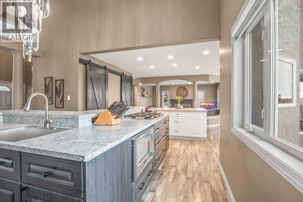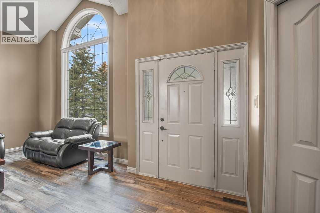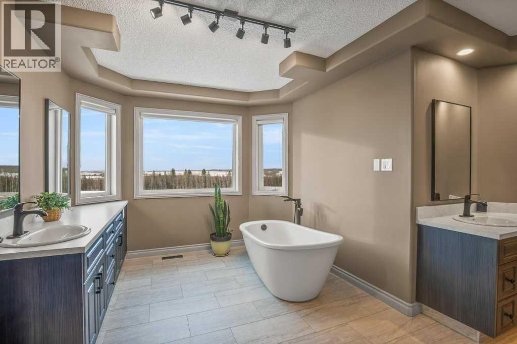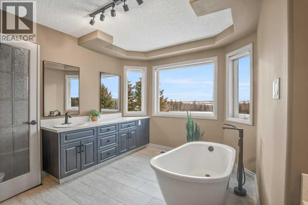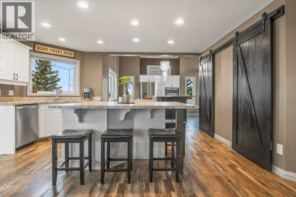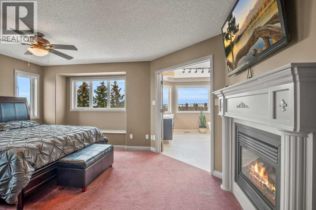 Welcome to this outstanding 80-acre gated agricultural property offering a rare blend of comfortable country living, income potential, and exceptional infrastructure. The land includes approximately 38 acres of farmable land and 15 acres of pasture, with the pasture currently rented to a neighboring farmer. Fully fenced and well-set up for horses, the property features corrals, waterers, hydrants, horse shelters, a tack room, and several outbuildings. Two wells service the property, and there are two oil leases generating ongoing revenue.The well-built two-story home, constructed in 1996, features a walkout basement and an expansive wrap-around deck showcasing breathtaking views. Inside, you’ll find vaulted ceilings, a sunken living room with elegant pillars, a gas fireplace, and a beautifully upgraded kitchen with a large island. The dining area opens directly to the deck, making it ideal for entertaining. Additional highlights include main-floor laundry and a double attached heated garage.Upstairs offers four generously sized bedrooms and an updated four-piece bathroom. The spacious primary retreat features walk-in closets and a stunning renovated ensuite with double vanity, full bathtub, and separate shower. The walkout basement provides even more living space with an additional gas fireplace, large patio wired for a hot tub, ample storage, a cold room, newer furnace, and central air conditioning.This property truly shines with its two impressive shops. The first is a 40’ x 60’ heated shop with radiant in-floor heat, lean-to drains, and two oversized doors—ideal for business operations, storage, or equipment. The second shop measures 76’ x 100’ and is divided into two sections, built on upgraded six-inch concrete. It includes five 14’ x 14’ overhead doors, four radiant heaters, and extensive workspace. A fully finished area—previously operated as a hair salon—offers in-floor heat, soundproofing, double drywall for fire protection, a full four-piece bathroom , washer and dryer, fridge, stove, oven, and could easily function as additional living quarters. Some shop bays are currently rented, with the tenant willing to remain.A rare opportunity to own a versatile, income-generating rural property with exceptional buildings, land, and a beautifully maintained home (id:51989)