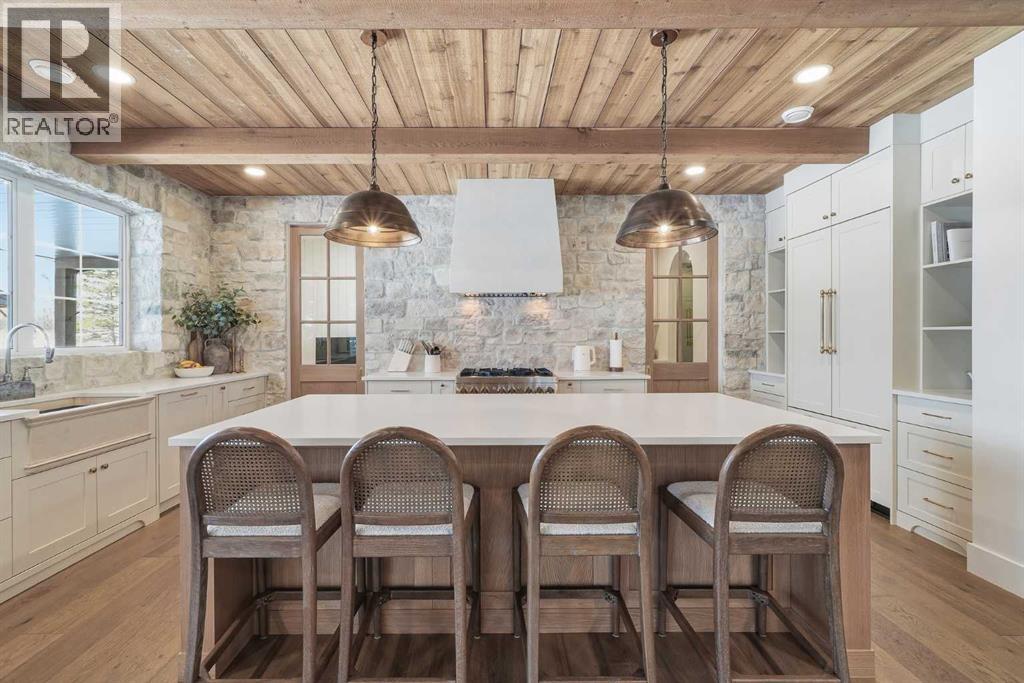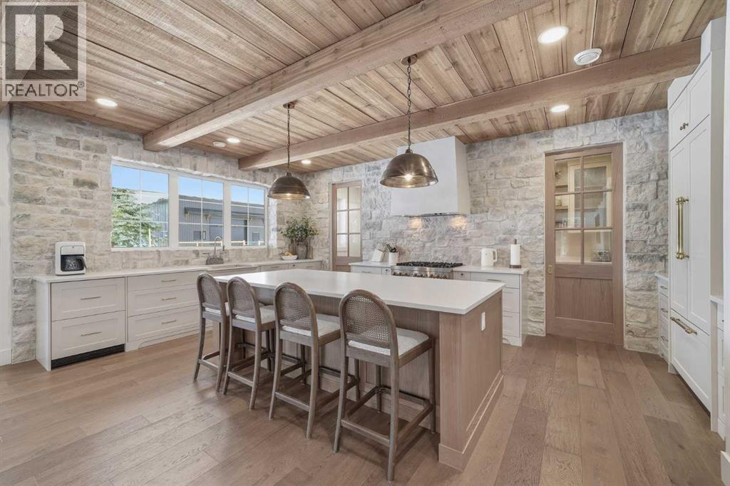 Minutes from Okotoks. Miles from ordinary.Set on 3.85 beautifully landscaped acres, this exceptional 2024-built luxury estate offers a rare blend of refined craftsmanship, resort-style amenities, and private acreage living just minutes from town.The 3590sq ft main residence showcases elevated modern farmhouse design with natural textures, architectural details, and curated finishes throughout. At the heart of the home, a stunning designer kitchen features a white oak island, Consentino suede-finish quartz countertops, JennAir cabinet-front appliances, stone farmhouse sink, dual drawer fridges, and a custom wine room with cedar and shiplap finishes — designed equally for everyday living and entertaining.Thoughtful details continue with custom cabinetry throughout, Emtek French Antique hardware, cedar beams and ceilings, stone accents, and Raintree waterproof engineered hardwood floors. The main living space is anchored by a striking stone wood-burning fireplace, creating warmth and character.The home offers 5 bedrooms and 3.5 bathrooms, including a luxurious primary retreat with spa-inspired ensuite and custom walk-in closet, while every bedroom features walk-in closets with built-ins. A bonus room, second-floor laundry, sauna room, walk-in pantry, and custom mudroom add comfort and functionality.Outside, the property transforms into a private resort-style retreat with a 16x34 heated pool, hot tub, covered exposed concrete patio, pool shed, and a charming all-cedar outdoor bathroom and change room. The fully fenced acreage is professionally landscaped with trees, sod, and mulch, while Gemstone architectural lighting beautifully illuminates the home and shop.A 40x60 shop with lean-to adds incredible versatility, featuring a 600 sq ft finished upper loft with games area, kitchenette, and bathroom, plus a sport court!The property also includes a separate 450 sq ft private suite (built 2025) with its own septic system, bedroom, bathroom, and kitchenette, ideal for guests, multi-generational living, an office or Airbnb potential. (currently runs as a lucrative air bnb)Built for long-term efficiency and durability with metal siding, Euroshield shingles (50+ year warranty), metal roofing, triple-pane windows, spray foam insulation, in-floor heating, and a water filtration system.A truly exceptional Foothills property where luxury, lifestyle, and location come together. (id:51989)