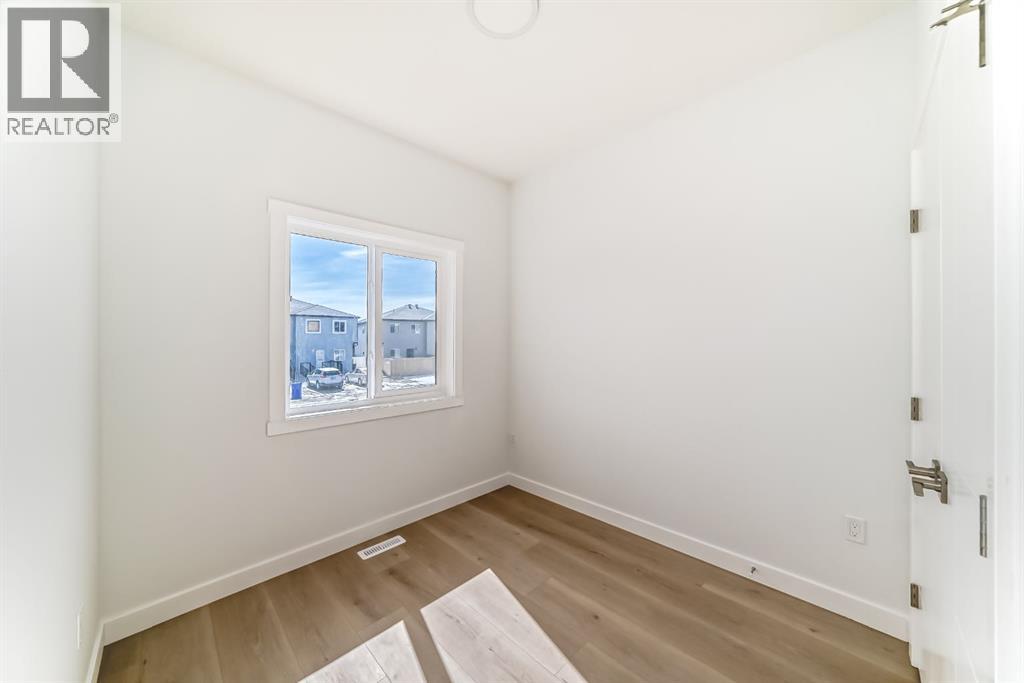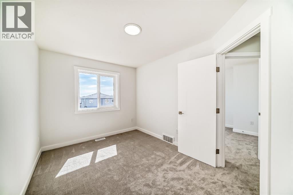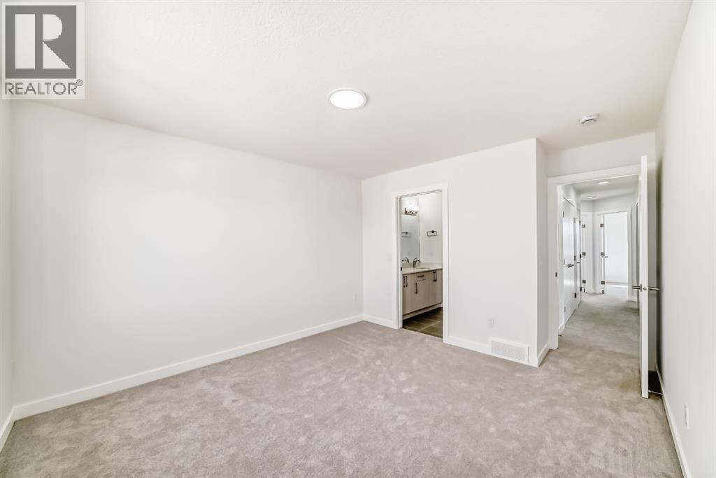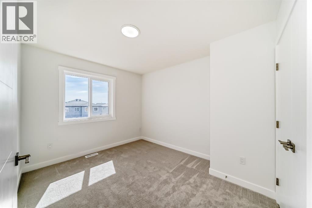 Step into this NEWLY built upgraded semi-detached home, where modern luxury and everyday functionality come together beautifully in the heart of Calgary’s vibrant new Northeast Community. Offering 4 BEDROOM and 3 FULL bathrooms, this home includes a MAIN floor bedroom with a full ensuite, ideal for elderly family members, guests, or multigenerational living. All bathrooms are finished with granite countertops and under mount sinks, reflecting quality craftsmanship throughout. This thoughtfully designed home features an open-concept main floor highlighted by a sleek contemporary kitchen with a gas line to the range, ceiling-height cabinetry offering abundant storage, and a convenient pantry. The cozy living room creating the perfect space for relaxing or entertaining. Upstairs, retreat to the spacious primary bedroom featuring a luxurious 5-piece ensuite, designed for comfort and relaxation. Two additional well-sized bedrooms and a dedicated computer/desk nook provide flexibility for family living or work-from-home needs. The full basement with 9-foot ceilings and a separate side entrance is ready for your creative vision—whether additional living space, a recreation area, or a future legal suite (subject to city approvals). Located in Calgary’s desirable new Northeast community, this home offers quick access to Stoney Trail, major roadways, schools, shopping, and all essential amenities. This vacant home is available for quick possession, allowing you to move in without delay. With meticulous attention to detail and modern finishes throughout, this property truly represents the pinnacle of contemporary living. (id:51989)