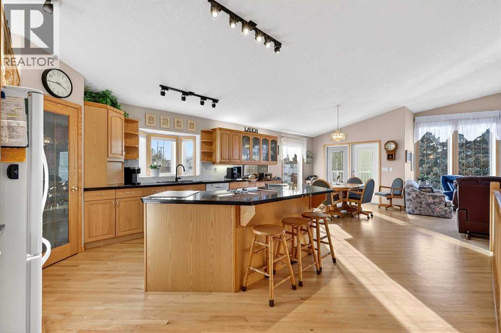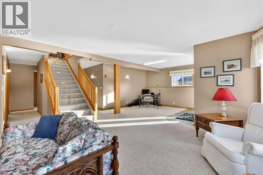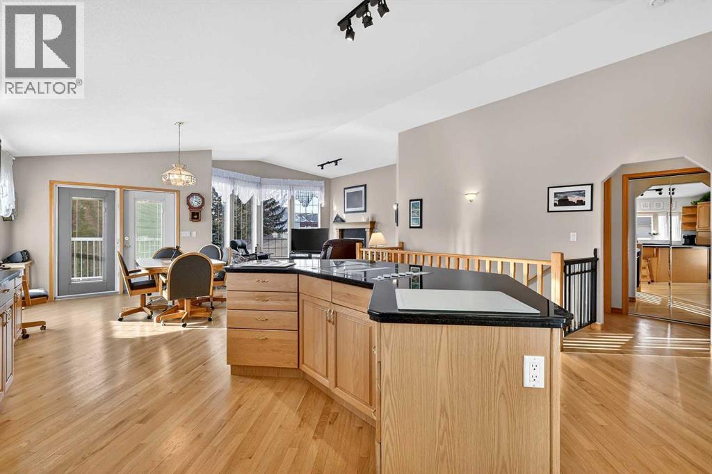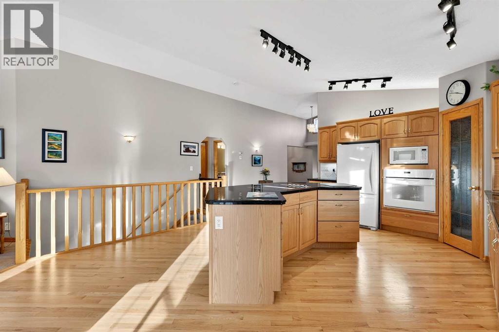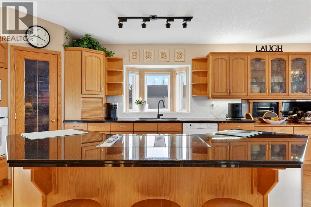 2 GARAGES - FULLY DEVELOPED WALK OUT - RV PARKING! This BUNGALOW is a contractor built personal residence that is thoughtfully designed, solidly constructed, and meticulously maintained. It is perfectly situated on large CORNER LOT in a desirable, mature neighborhood offering a total of 2983.7 sq ft of above & below grade developed living space, 2 GARAGES, RV PARKING, VAULTED CEILINGS, CENTRAL A/C, multi-zoned IN-FLOOR BOILER HEAT SYSTEM, loads of NATURAL LIGHT, abundant STORAGE, CENTRAL VACUUM, and WALK OUT basement! From the moment you step into the heated tile entrance, you are invited into a bright, open-concept floor plan characterized by soaring vaulted ceilings and an abundance of natural light. You seamlessly transition onto hardwood floors and into the gorgeous open living area that serves as the heart of the home. Here in the kitchen, you’ll find a massive granite top island with built-in cooktop, ample cabinetry, corner pantry, and full suite of appliances which then flows into the dining area designed for large family gatherings. Step out garden doors onto the tiled balcony, the perfect perch for morning coffee, evening cocktail and a GAS BBQ for summer grilling. The carpeted living room boasts floor-to-ceiling windows equipped with REMOTE-CONTROLLED BLIND SYSTEM and a GAS FIREPLACE creating the perfect spot for a cozy evening. Set to the side, the main primary retreat is equally as impressive, offering space for king-sized furniture, huge WALK-IN CLOSET, and well-appointed FOUR-PIECE ENSUITE with relaxing JETTED TUB. Completing the main level is the bright, dedicated Office at front, convenient two-piece guest bath, and main floor laundry room with 1 piece bath. There is direct access from laundry room to the double attached garage, which stays toasty year-round thanks to in-floor heating system. The lower level is a FULLY DEVELOPED WALK-OUT that feels like a natural extension of the bright upper floor. It features a massive rec/family room with custo m wood entertainment center perfect for movie nights and additional space for game table or home gym. Two additional large bedrooms and a three-piece bathroom provide plenty of space for family or guests, while another versatile room offers the potential for a fourth bedroom, hobby or office space. Storage is never an issue here, with a dedicated room featuring built-in shelving and a chest freezer, with yet another storage room tucked beneath the stairs. The exterior of the property is just as impressive as you step out through garden doors onto the covered patio out to a landscaped yard, complete with mature trees and flower beds, and an underground sprinkler system to keep the grounds lush. Car enthusiasts, hobbyists, or tradesmen will be thrilled by the additional detached heated single garage with alley access, complimented by paved RV parking pad eliminating additional storage fees. MOVE-IN READY with QUICK POSSESSION available! Note: owner has the only neighboring vacant lot for sale as well. (id:51989)