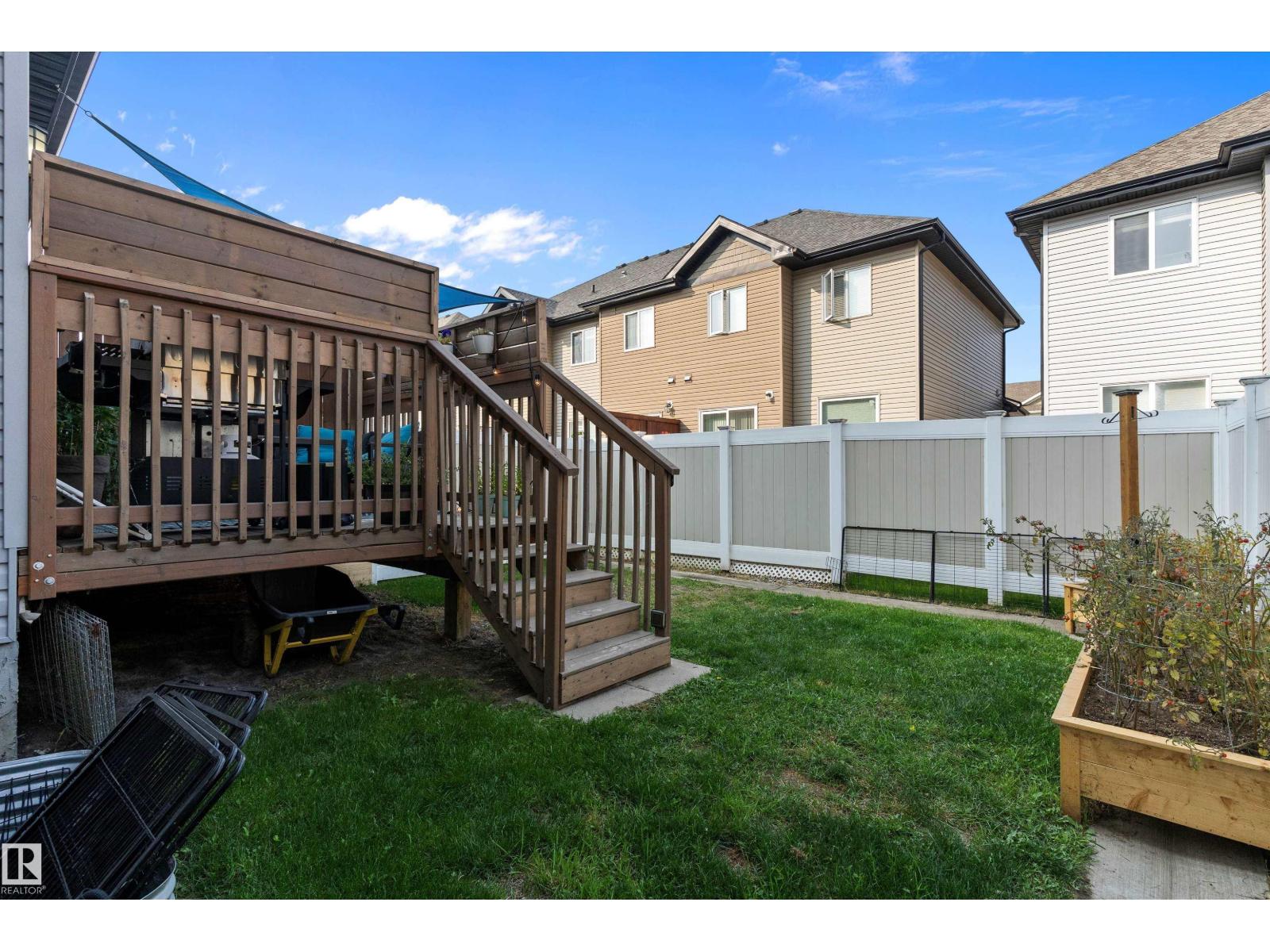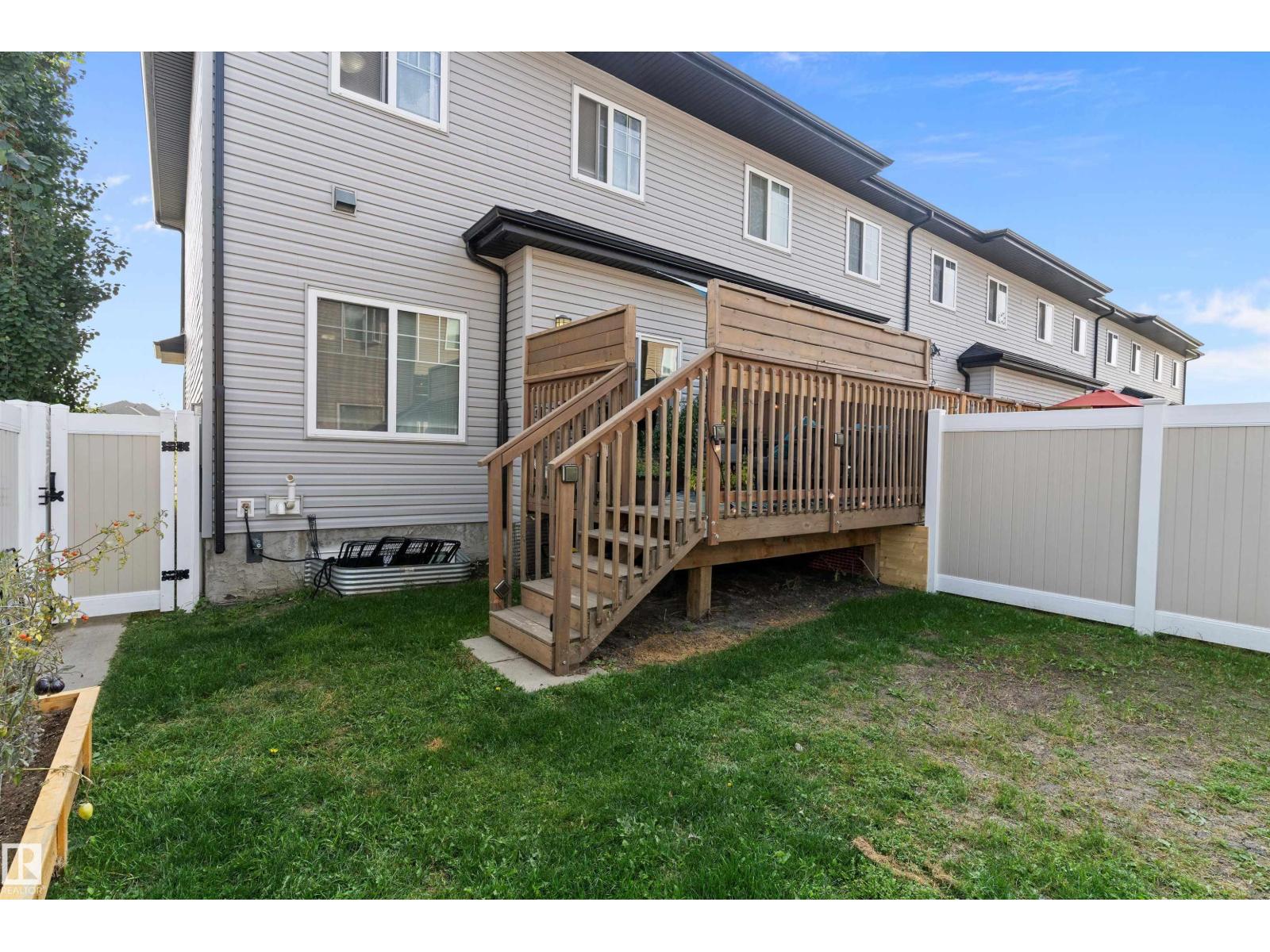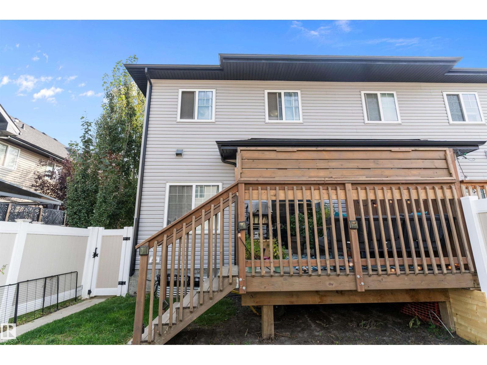 Beaumont GEM AWAITS! Experience the height of modern elegance in Montrose Estates. Built in 2018, this stunning townhome overlooks a serene green space and park, offering rare privacy and nature views. Inside, the heart of the home is a bright, airy white kitchen featuring sleek quartz countertops and premium stainless steel appliances. The open-concept layout is elevated by contemporary finishings, leading seamlessly to a west-facing backyard—fully landscaped with a private deck, it’s the ultimate stage for sunset views. Upstairs, discover 3 spacious bedrooms and 2 full baths, complemented by a main-floor powder room. With a single attached garage and a spacious unfinished basement ready for your personal touch, this home perfectly balances style and potential. Walking distance to playground, walking trails and shopping. (id:51989)