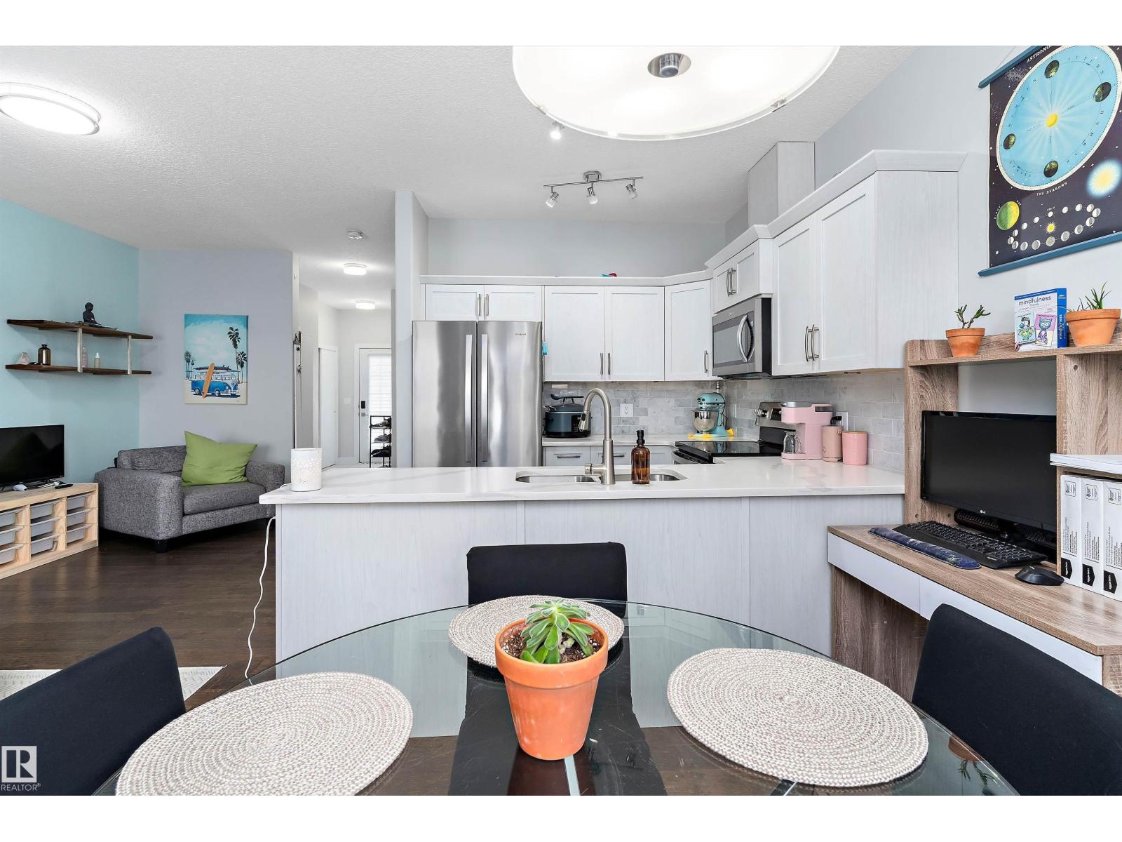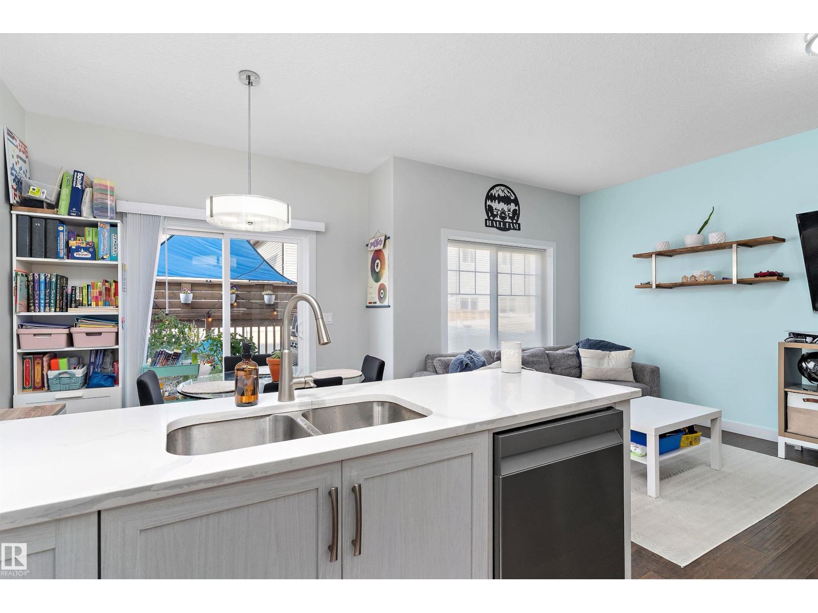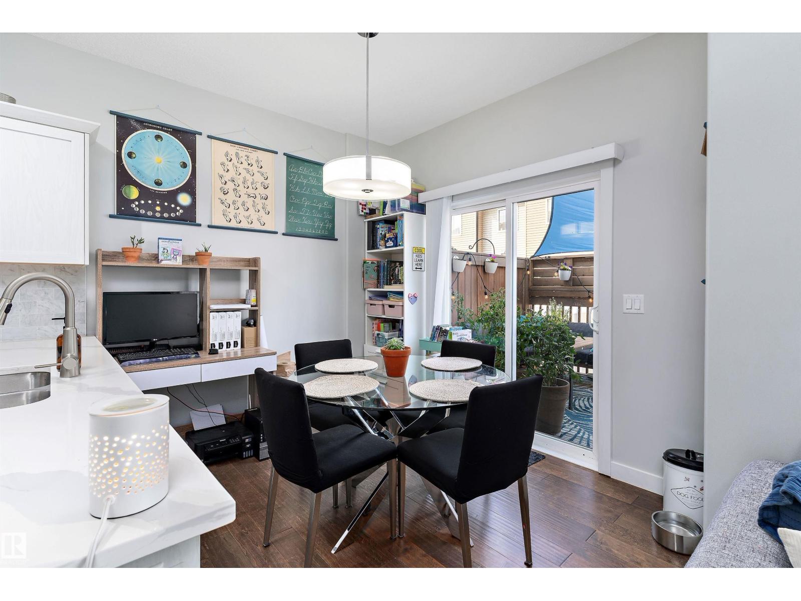 Beaumont GEM AWAITS! Experience the height of modern elegance in Montrose Estates. Built in 2018, this stunning townhome overlooks a serene green space and park, offering rare privacy and nature views. Inside, the heart of the home is a bright, airy white kitchen featuring sleek quartz countertops and premium stainless steel appliances. The open-concept layout is elevated by contemporary finishings, leading seamlessly to a west-facing backyard—fully landscaped with a private deck, it’s the ultimate stage for sunset views. Upstairs, discover 3 spacious bedrooms and 2 full baths, complemented by a main-floor powder room. With a single attached garage and a spacious unfinished basement ready for your personal touch, this home perfectly balances style and potential. Walking distance to playground, walking trails and shopping. (id:51989)
