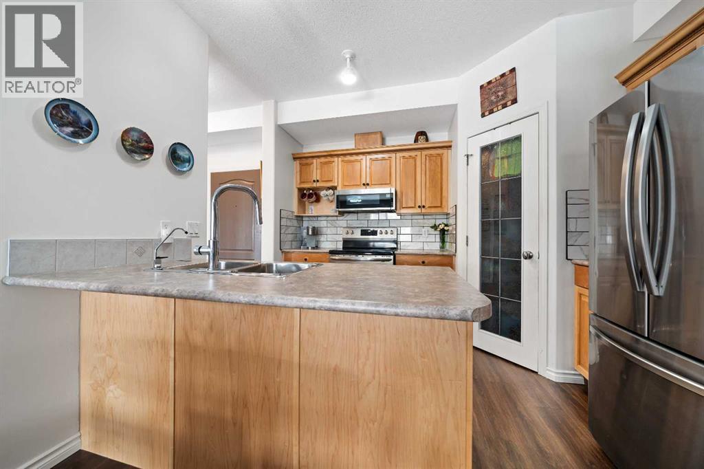Welcome to easy, carefree living in River Ridge Estates. This beautifully updated two-bedroom, two-bathroom adult living condo offers comfort, convenience and stunning views overlooking the landscaped courtyard with glimpses of the river. Inside, you'll appreciate the new flooring, newer appliances, and updated window coverings - creating a fresh, modern feel throughout. The spacious primary bedroom features a walk through closet leading to a private four-piece ensuite while the second bedroom offers its own attached walk-in-closet, making this layout ideal for guests or additional living space. A second full four piece bathroom and laundry room adds extra comfort and functionality. Step outside to the covered deck, the perfect place to relax and enjoy your surroundings. River Ridge Estates is known for its exceptional amenities, including an indoor pool, hot tub, fitness area, games room, movie room, family/meeting room and a beautiful outdoor patio complete with fire pit. Added conveniences include heated underground parking with storage, a workshop and a carwash bay. Enjoy a vibrant adult living lifestyle in one of the cities most sought after 55+, pet friendly condo communities - where comfort, community and convenience come together beautifully. Book your private viewing today, you don't want to miss out on this one! (id:51989)