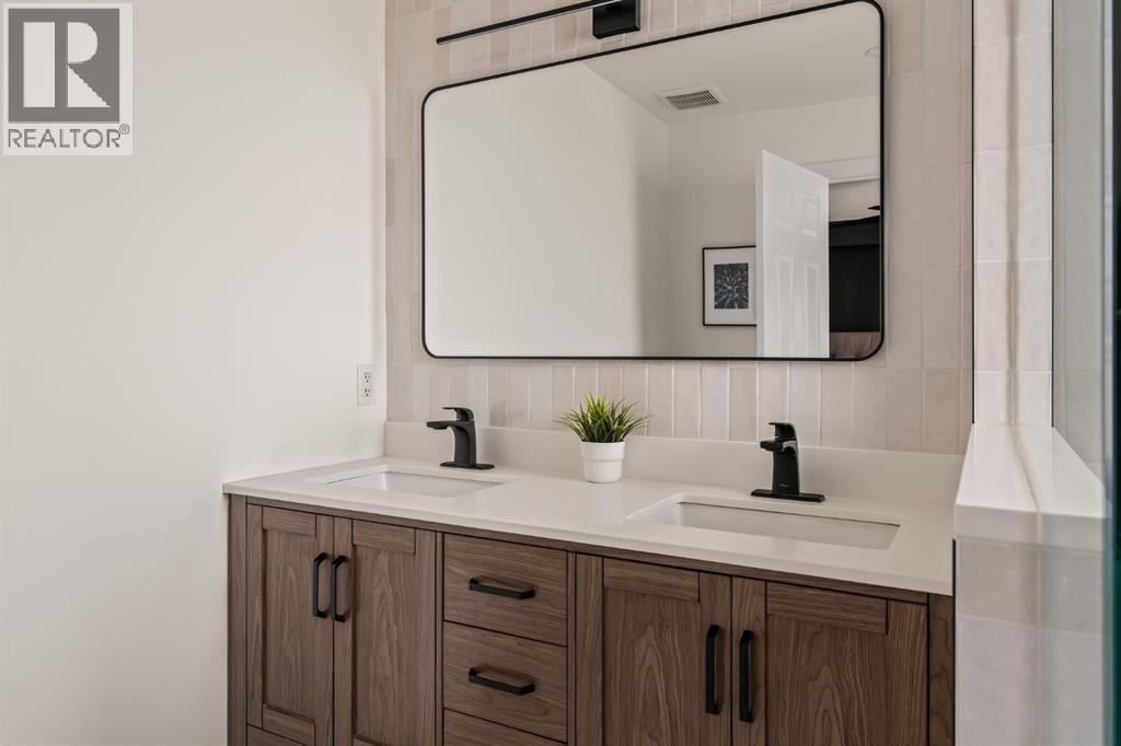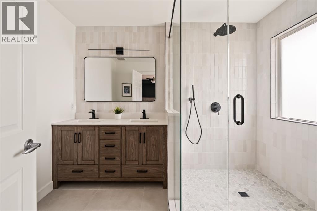 **OPEN HOUSE SATURDAY APRIL 25 12-2pm.** Tired of seeing the same infill over and over again? This might be the one for you! Offering nearly 2,400 square feet of thoughtfully designed living space across three levels, this 4-bedroom, 3.5-bathroom home blends charm with modern upgrades that make it truly move-in ready. Step through the welcoming covered front entry and into a bright, open main floor where freshly refinished hardwood floors are the standout feature. The heart of the home is an open-concept kitchen, dining, and living area flooded with natural light and a 3 sided fireplace dividing the dining and living area. The kitchen features white cabinetry, dark quartz countertops, subway tile backsplash, an extended counter area with breakfast bar seating, stainless steel appliances and a good size corner pantry. The adjacent dining area easily accommodates a large family table, while the spacious living room offers glass block windows for added natural light without sacrificing privacy, and room for everyone to gather. The main floor also features a powder room and laundry area with a newer washer/dryer (2024). Upstairs, the primary suite is a true retreat with french doors, a bold designer accent wall, generous walk in closet space, and a private ensuite that was completely renovated in May 2025 with a double vanity and a glass-enclosed shower and new window. Two additional well-sized bedrooms both with ample closet space, large windows and a shared 4 piece bath complete the upper level. The fully finished basement doesn’t feel like a basement with large windows looking out to the backyard. The basement adds valuable living space with a fourth bedroom and an additional full bathroom, perfect for guests, teenagers, or a home office setup. There is additional storage in the utility room and under the stairs. Outside, enjoy a private, fully fenced east facing backyard with low maintenance turf (August 2020), a newer composite deck with modern black railing (Octob er 2020), ideal for summer entertaining. The deck is accessible directly from the main floor and offers views of the neighbourhood. Fresh paint throughout the home, refinished hardwood floors, and a welcoming curb appeal with a charming covered front porch and upper balcony make this infill stand out amongst the rest. All of this in Glenbrook, one of Calgary's most family-friendly inner-west communities. Just minutes to the Glenbrook Community Association, 20 minute walk to the c-train, and close proximity to schools, parks, Westbrook Mall, and with quick access to downtown and the mountains this home is not to be missed! (id:51989)