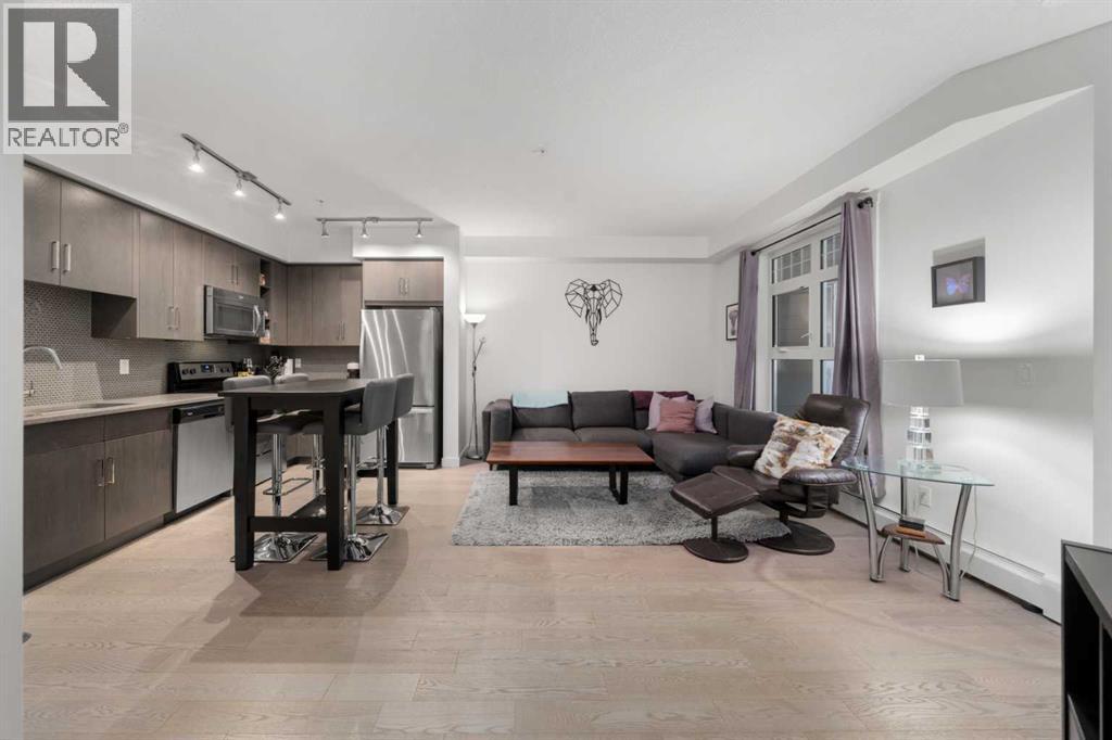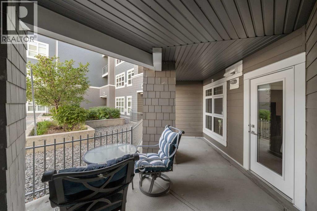 Quietly positioned, thoughtfully designed, and built for everyday living—this ground-floor unit in the Canoe building stands out for all the right reasons.Offering 723 sq ft of well-designed living space, this unit is positioned near the end of the hall, creating a quiet, low-traffic setting that feels more private than most.The layout is smart and efficient, making the most of every square foot and living larger than its size. The kitchen features quartz countertops, stainless steel appliances, and vinyl plank flooring, opening into a bright living area with large windows and direct access to a private covered patio. A walk-through closet from the primary bedroom to the bathroom adds everyday functionality, while the second room offers flexibility for a home office, guest space, or extra storage.This unit includes a titled underground parking stall close to the entry and a secure storage locker. For guests, visitor parking is located in a central courtyard just steps from the unit, making it simple and convenient when friends come by.Living in Auburn Bay means access to year-round lake amenities, from summer paddle boarding and beach days to winter skating and fire pits. The community is known for its walking paths, parks, and strong neighbourhood feel, offering a lifestyle that goes beyond the unit itself.Everything you need is within reach—groceries, restaurants, an off-leash dog park, and a playground are all within walking distance, making day-to-day living easy and connected. (id:51989)