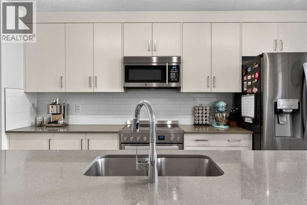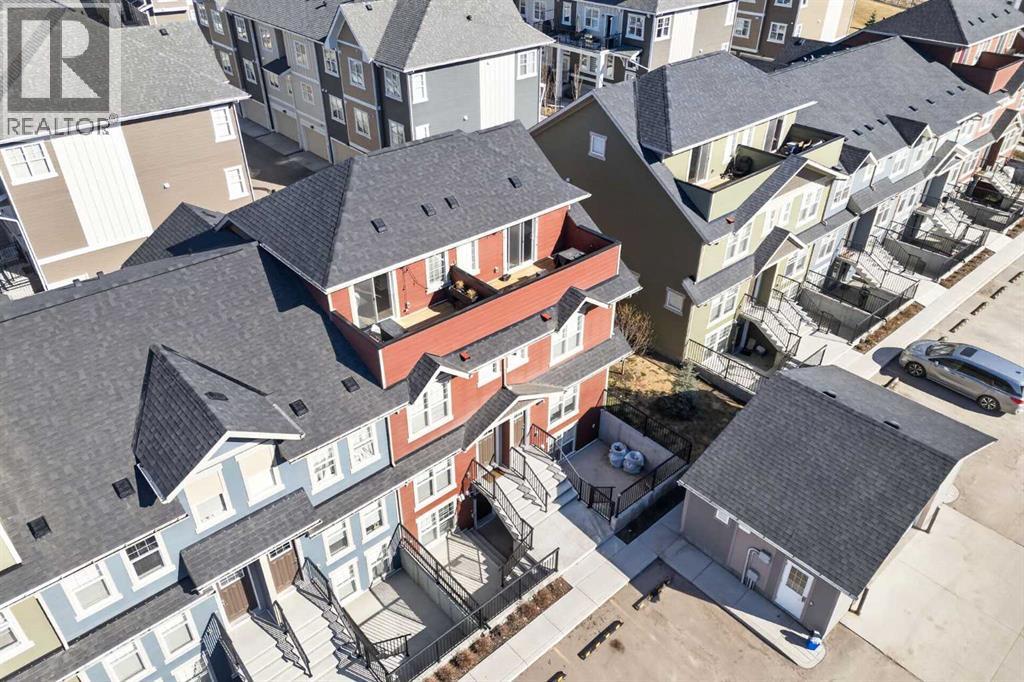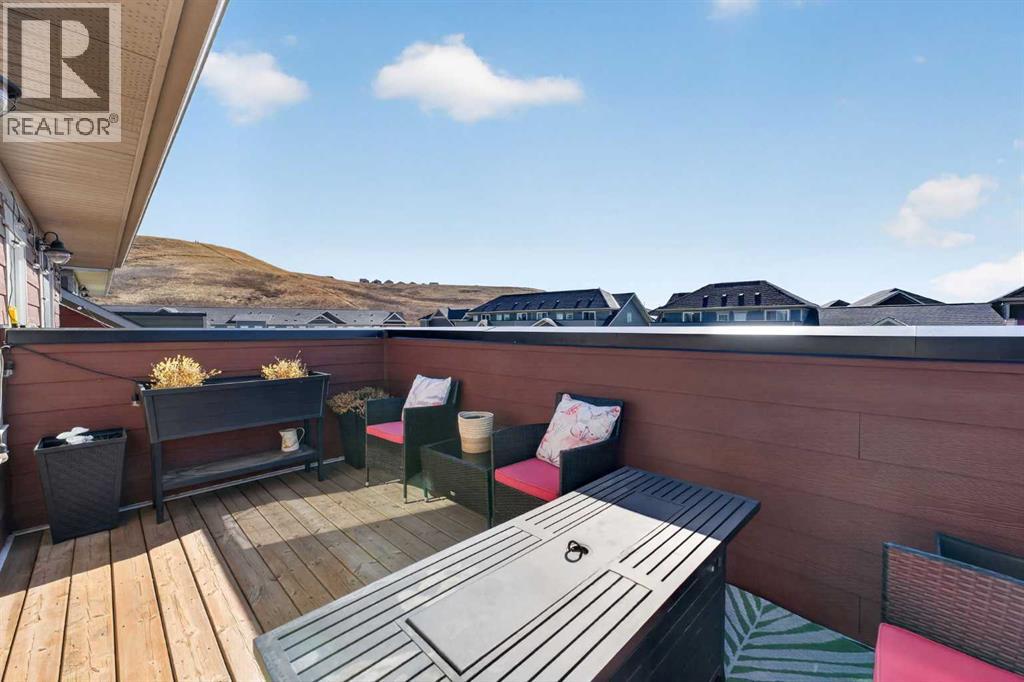 **Open House Sunday April 24th 12-3PM** Welcome to Riverstone in Cranston, where nature, lifestyle, and thoughtful design come together in one of Calgary’s most beautiful and sought-after communities. This stunning three-storey executive townhome offers 1,500+ sq. ft. of stylish living space & stands out with features that are truly hard to find in townhome living, including a separate fenced yard, low condo fees, and an exceptional third-level bonus room with rooftop deck. Located in the highly desirable lower portion of Cranston, just moments from the Bow River, scenic walking paths, parks, and playgrounds, this is a home that offers so much more than just great square footage, it offers a lifestyle. Riverstone is beloved for its peaceful setting, easy access to nature, and incredible outdoor amenities, making it a perfect fit for buyers who want both convenience and connection to the outdoors. Inside, the main floor is bright, open, and welcoming, designed for both everyday living and entertaining. The spacious living and dining areas flow seamlessly into the beautifully appointed kitchen, where a massive quartz island with breakfast bar becomes the natural gathering place for family and guests alike. Timeless white cabinetry, classic subway tile, stainless steel appliances, and direct access out to your own private backyard make this kitchen as functional as it is attractive—perfect for everything from daily routines to summer BBQs and easy indoor-outdoor living. Upstairs on the second level, you’ll find two generous bedrooms, including a spacious primary retreat that easily fits a king-sized bed and features its own private 3-piece ensuite. The second bedroom is equally well-sized and filled with natural morning light, while a full 4-piece bathroom located just outside the bedroom adds comfort and convenience for family members or guests. What truly sets this home apart, however, is the incredible third-floor bonus room—a rare and versatile space seldom found i n townhomes. Whether you envision a home office, media room, fitness area, guest retreat, playroom, or creative studio, this upper-level flex space offers endless possibilities. Even better, it opens onto your private rooftop deck, creating the perfect spot to enjoy morning coffee, unwind in the evening, or soak in the fresh air above it all. This combination of bonus room plus rooftop outdoor space is an absolute standout. Another rare feature is the separate fenced yard—ideal for a dog owner, young family, or anyone who appreciates having a private outdoor area for BBQs, relaxing in the sun, or enjoying a bit of extra space that many townhomes simply do not offer. With sunny west exposure, this yard is a true extension of the home. Also included is a designated parking stall conveniently located just steps from the front door. You’ll also enjoy access to Century Hall and all of Cranston’s exceptional amenities, including skating, hockey, tennis courts, a splash park, skate park, gymnasium, and more. (id:51989)