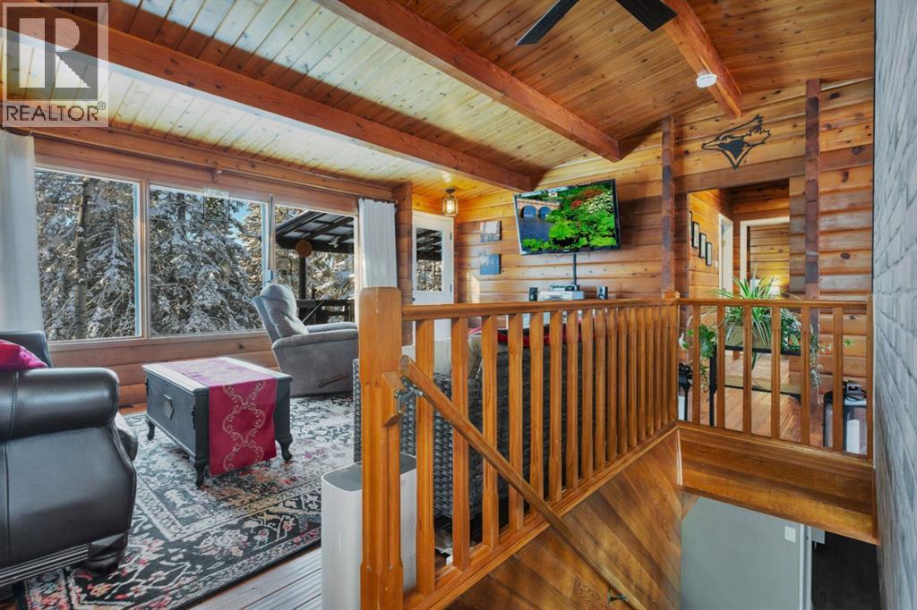 If you’re looking to call the West Country home, you won’t want to miss this private and beautifully treed 5.5 acre property located just 10 km west of Rocky. The main level features cedar log construction with vaulted ceilings, the kitchen flows into the dining area and the cozy living room offers beautiful views to the back yard. Three bedrooms, a fully renovated bathroom complete with a spacious custom tile shower and newly added main floor laundry. The walkout basement offers a versatile family living space, flex room for guests, crafts, home office or hobbies, optional downstairs laundry, a 3-piece bathroom, and ample storage/workshop space. A large, partially covered wrap-around deck is the perfect place to enjoy your morning coffee, watch the wildlife and relax while soaking in the peaceful surroundings. Recent upgrades ensure effortless living, including new shingles, furnace, central air, exterior and interior doors, basement windows, and a new septic tank and lines. The 24' x 26' double detached garage is fully finished and heated, and there is also an RV site further down the driveway. The beautifully landscaped yard features mature trees and trails. Fibre high-speed internet has been installed, making it easy to work from home while enjoying the peaceful country setting. (id:51989)