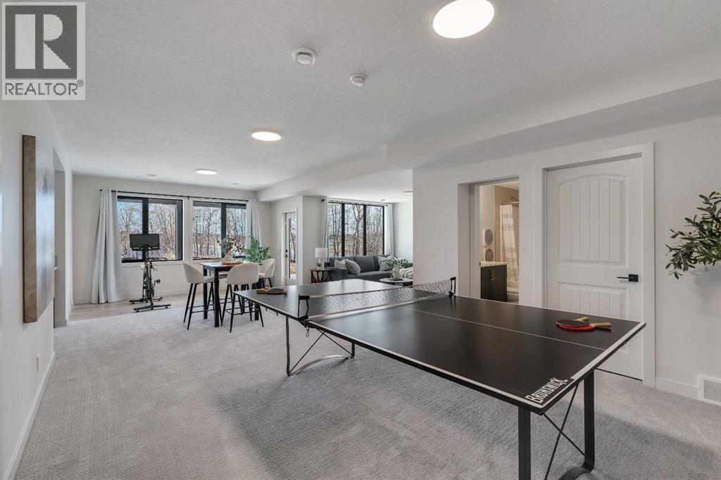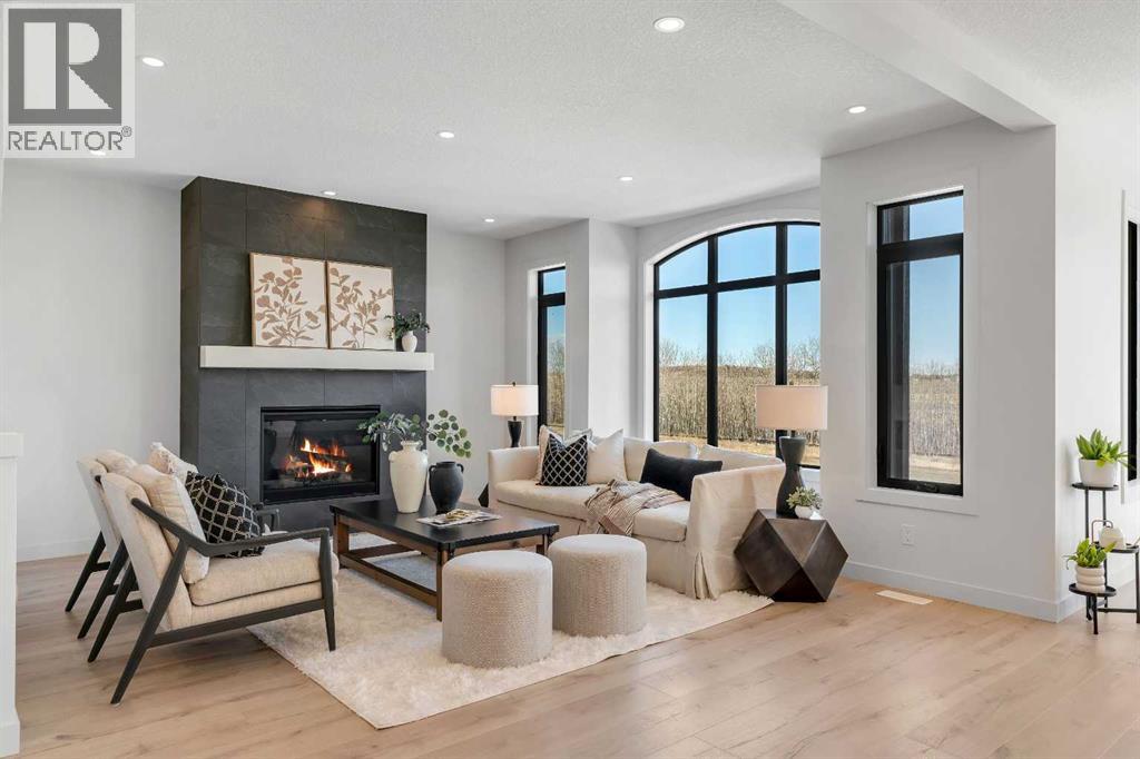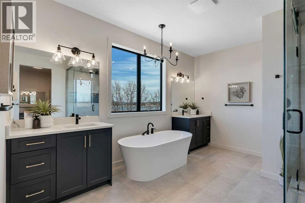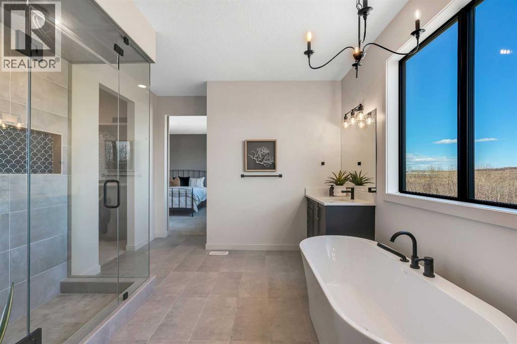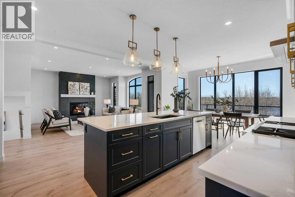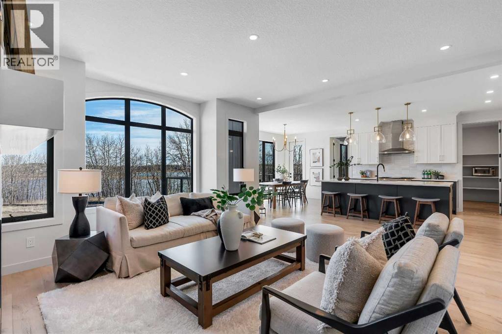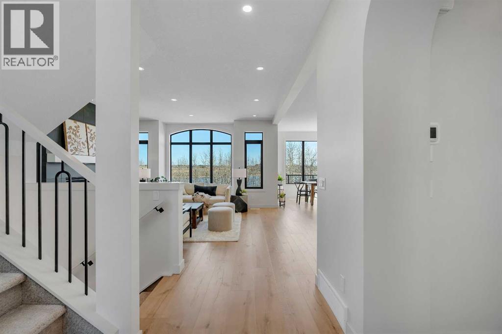 Please watch YouTube Video for Full Tour | BACKING ONTO PRIVATE LAKE | HEATED QUAD GARAGE | DEVELOPED WALKOUT | MOUNTAIN VIEWS | 3700 SQFT OF DEVELOPED SPACE | Situated in arguably one of the best locations in Monterra, backing directly onto one of the two private lakes in the community with no walking paths behind the home for an unparalleled level of privacy on a quiet cul de sac. This immaculate Aspen Creek Custom home is the epitome of luxury semi-rural living and offers every feature the discerning buyer is looking for, with a focus on design and function throughout. As you enter the main level you are taken in by the sightlines directly out to the lake and surrounding environmental reserve, with large windows perfectly placed to showcase the incredible views. The designer kitchen features a 36 inch Wolf range, Bosch appliances, a custom tile backsplash, and a large island with quartz counters, all brought together by full height custom white cabinets and contrasting dark lowers, creating an ideal layout for both families and entertaining guests. Just off the kitchen you will find direct access to the walkthrough butler pantry connecting to a spacious mudroom and access to the attached garage. This level also features a sizable dining area surrounded by 3 walls of windows overlooking the lake, along with a large living room centred around a gas fireplace, creating a perfect space for family time. You will also find a main floor office or den with additional views to the east, a 2 pc powder room, and direct access to the large deck with gas line overlooking the lake, an ideal place to enjoy your morning coffee while watching the sunrise or hosting friends throughout the summer. The upper level features a massive primary suite with a large walk in closet with laundry chute and a 5 pc spa inspired ensuite complete with heated floors, a custom tiled steam shower, and a freestanding tub with views of the lake. This level also includes 2 more generously sized bedroom s, a 4 pc bathroom, a large bonus area, and a full size laundry room. The fully developed walkout basement is an ideal family space, complete with a massive bedroom overlooking the lake, a 4 pc bathroom, a large family room, and a perfect area for a home gym with more incredible views and direct access to the backyard. Additional features that cannot be overlooked include the large pie lot with no lake lots left in the community, over 300K in upgrades including more than 100K in landscaping with a fully automated irrigation system controlled from your phone, a high end water softening system, full radon ventilation system completed, and a top level HRV unit. This phase allows for an RV pad on the west side of the home, with ample space already left to complete this in the future, along with electrical service run to the hot tub pad in the backyard. The quad garage is a hobbyist’s dream, complete with a 75,000 BTU Reznor gas heater, hot and cold water lines and 240V power for EV charging. (id:51989)