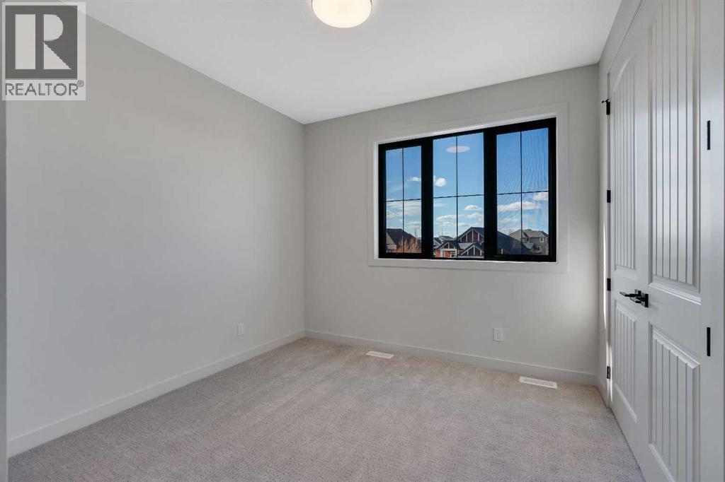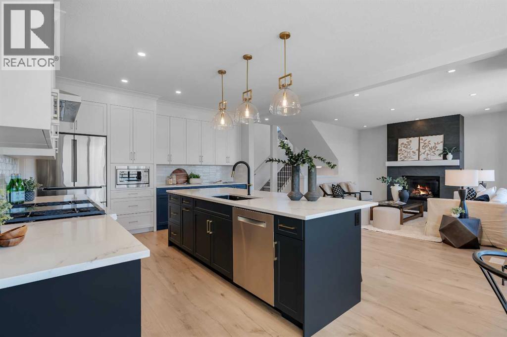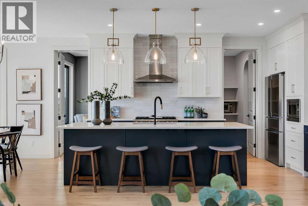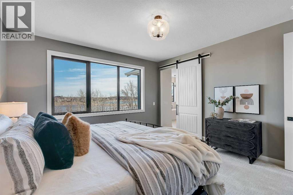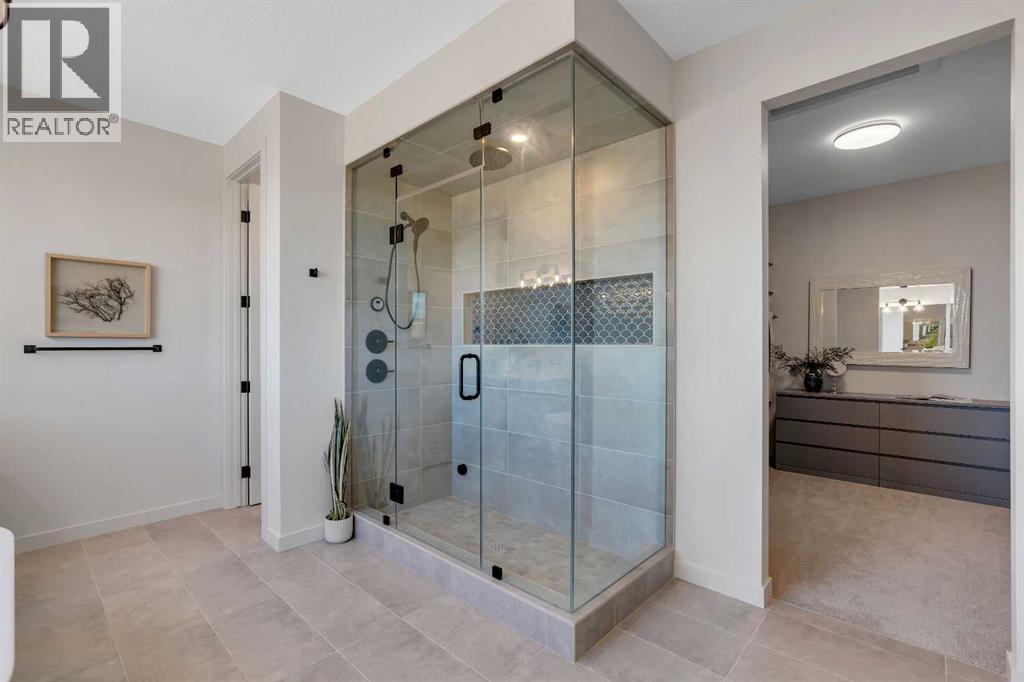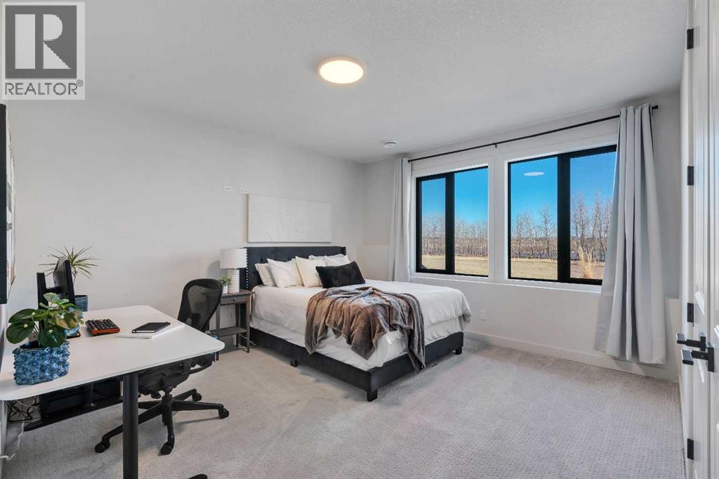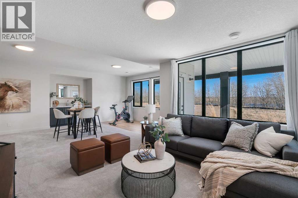 Please watch YouTube Video for Full Tour | BACKING ONTO PRIVATE LAKE | HEATED QUAD GARAGE | DEVELOPED WALKOUT | MOUNTAIN VIEWS | 3700 SQFT OF DEVELOPED SPACE | Situated in arguably one of the best locations in Monterra, backing directly onto one of the two private lakes in the community with no walking paths behind the home for an unparalleled level of privacy on a quiet cul de sac. This immaculate Aspen Creek Custom home is the epitome of luxury semi-rural living and offers every feature the discerning buyer is looking for, with a focus on design and function throughout. As you enter the main level you are taken in by the sightlines directly out to the lake and surrounding environmental reserve, with large windows perfectly placed to showcase the incredible views. The designer kitchen features a 36 inch Wolf range, Bosch appliances, a custom tile backsplash, and a large island with quartz counters, all brought together by full height custom white cabinets and contrasting dark lowers, creating an ideal layout for both families and entertaining guests. Just off the kitchen you will find direct access to the walkthrough butler pantry connecting to a spacious mudroom and access to the attached garage. This level also features a sizable dining area surrounded by 3 walls of windows overlooking the lake, along with a large living room centred around a gas fireplace, creating a perfect space for family time. You will also find a main floor office or den with additional views to the east, a 2 pc powder room, and direct access to the large deck with gas line overlooking the lake, an ideal place to enjoy your morning coffee while watching the sunrise or hosting friends throughout the summer. The upper level features a massive primary suite with a large walk in closet with laundry chute and a 5 pc spa inspired ensuite complete with heated floors, a custom tiled steam shower, and a freestanding tub with views of the lake. This level also includes 2 more generously sized bedroom s, a 4 pc bathroom, a large bonus area, and a full size laundry room. The fully developed walkout basement is an ideal family space, complete with a massive bedroom overlooking the lake, a 4 pc bathroom, a large family room, and a perfect area for a home gym with more incredible views and direct access to the backyard. Additional features that cannot be overlooked include the large pie lot with no lake lots left in the community, over 300K in upgrades including more than 100K in landscaping with a fully automated irrigation system controlled from your phone, a high end water softening system, full radon ventilation system completed, and a top level HRV unit. This phase allows for an RV pad on the west side of the home, with ample space already left to complete this in the future, along with electrical service run to the hot tub pad in the backyard. The quad garage is a hobbyist’s dream, complete with a 75,000 BTU Reznor gas heater, hot and cold water lines and 240V power for EV charging. (id:51989)