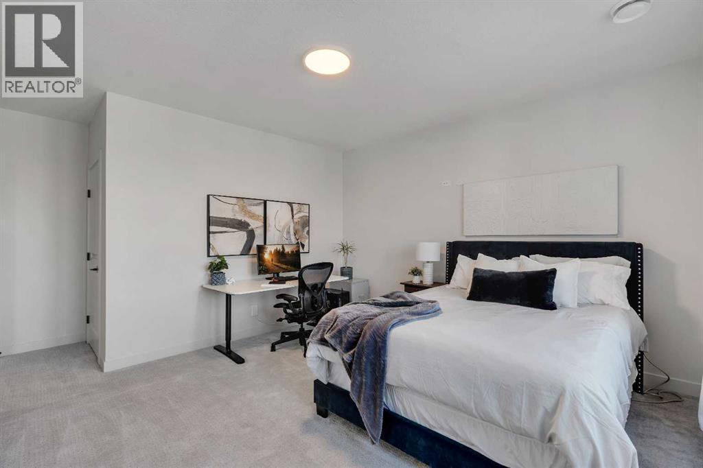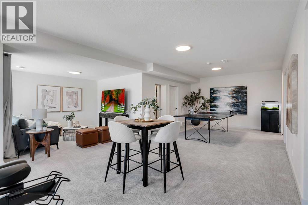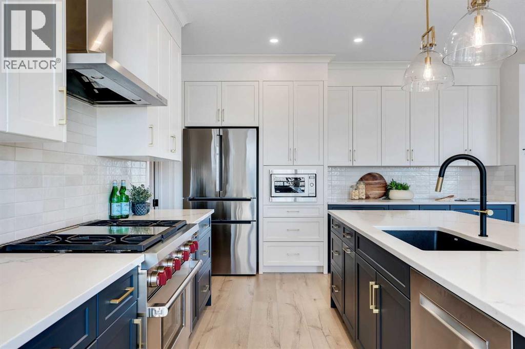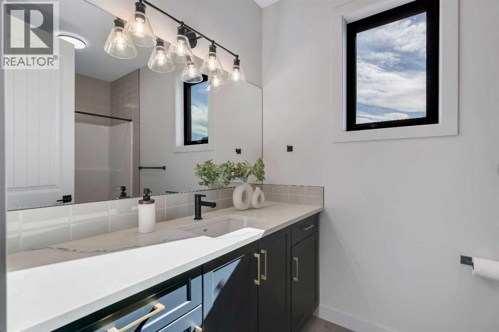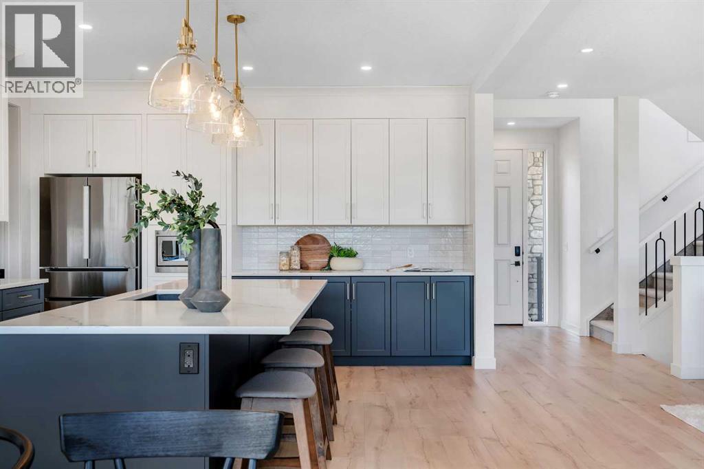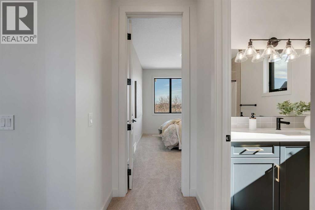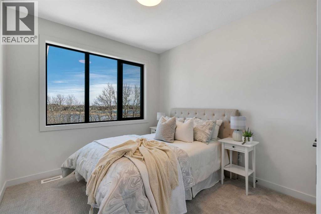 Please watch YouTube Video for Full Tour | BACKING ONTO PRIVATE LAKE | HEATED QUAD GARAGE | DEVELOPED WALKOUT | MOUNTAIN VIEWS | 3700 SQFT OF DEVELOPED SPACE | Situated in arguably one of the best locations in Monterra, backing directly onto one of the two private lakes in the community with no walking paths behind the home for an unparalleled level of privacy on a quiet cul de sac. This immaculate Aspen Creek Custom home is the epitome of luxury semi-rural living and offers every feature the discerning buyer is looking for, with a focus on design and function throughout. As you enter the main level you are taken in by the sightlines directly out to the lake and surrounding environmental reserve, with large windows perfectly placed to showcase the incredible views. The designer kitchen features a 36 inch Wolf range, Bosch appliances, a custom tile backsplash, and a large island with quartz counters, all brought together by full height custom white cabinets and contrasting dark lowers, creating an ideal layout for both families and entertaining guests. Just off the kitchen you will find direct access to the walkthrough butler pantry connecting to a spacious mudroom and access to the attached garage. This level also features a sizable dining area surrounded by 3 walls of windows overlooking the lake, along with a large living room centred around a gas fireplace, creating a perfect space for family time. You will also find a main floor office or den with additional views to the east, a 2 pc powder room, and direct access to the large deck with gas line overlooking the lake, an ideal place to enjoy your morning coffee while watching the sunrise or hosting friends throughout the summer. The upper level features a massive primary suite with a large walk in closet with laundry chute and a 5 pc spa inspired ensuite complete with heated floors, a custom tiled steam shower, and a freestanding tub with views of the lake. This level also includes 2 more generously sized bedroom s, a 4 pc bathroom, a large bonus area, and a full size laundry room. The fully developed walkout basement is an ideal family space, complete with a massive bedroom overlooking the lake, a 4 pc bathroom, a large family room, and a perfect area for a home gym with more incredible views and direct access to the backyard. Additional features that cannot be overlooked include the large pie lot with no lake lots left in the community, over 300K in upgrades including more than 100K in landscaping with a fully automated irrigation system controlled from your phone, a high end water softening system, full radon ventilation system completed, and a top level HRV unit. This phase allows for an RV pad on the west side of the home, with ample space already left to complete this in the future, along with electrical service run to the hot tub pad in the backyard. The quad garage is a hobbyist’s dream, complete with a 75,000 BTU Reznor gas heater, hot and cold water lines and 240V power for EV charging. (id:51989)